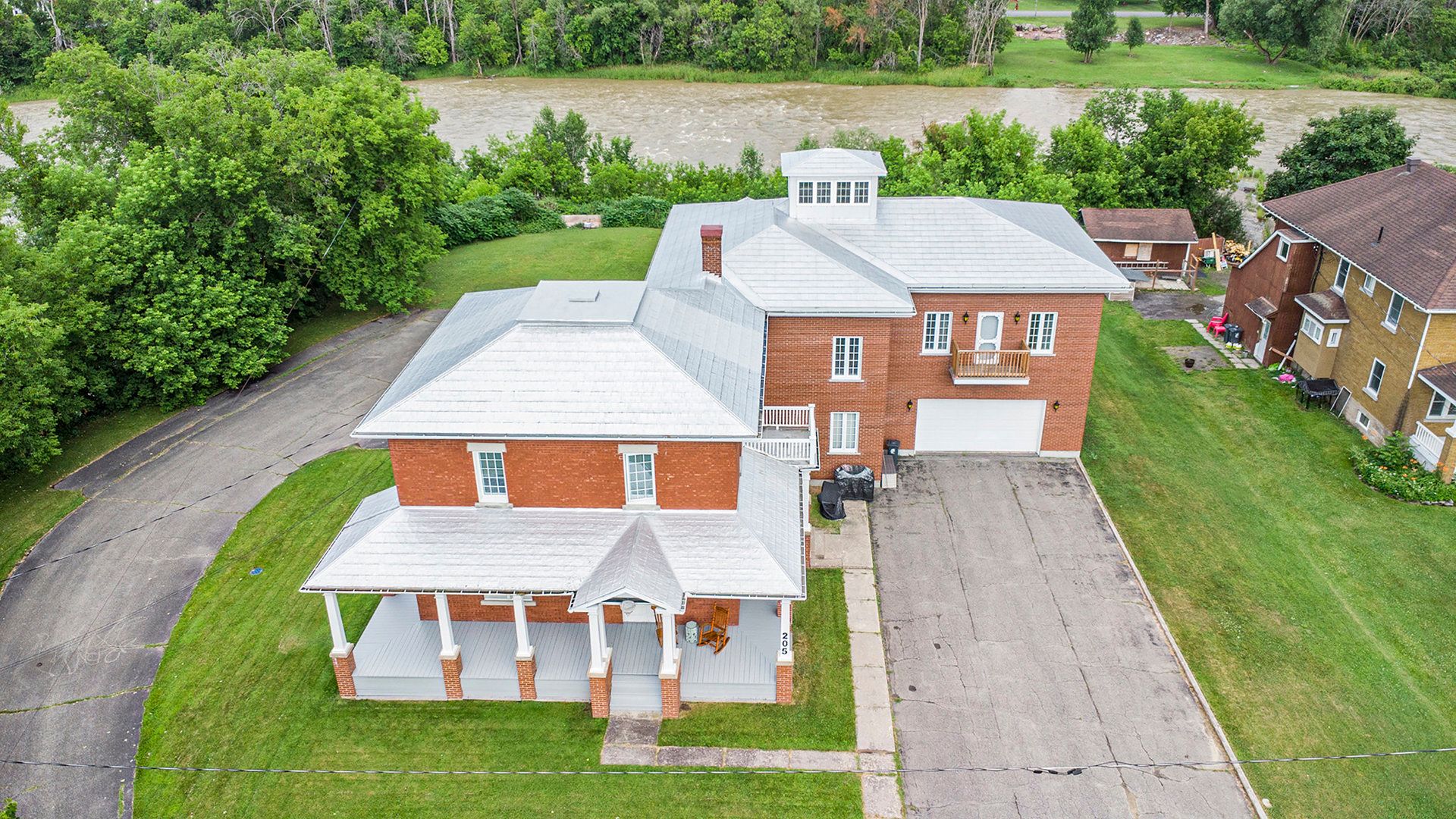 This beautifully updated century home sits on a prime riverfront lot along the scenic nation river. Enjoy stunning views from the rooftop tower and relax on the wraparound veranda. The main floor boasts a bright living room, formal dining room, and a welcoming foyer that can easily double as a home office. Upstairs, you'll find a spacious layout with 4 bedrooms, including a generous primary suite featuring exposed beams, a private office area, a luxurious ensuite bath, and a cozy whirlpool nook. Soaring ceilings, oversized 6' windows, and elegant crown and base moldings add timeless character throughout. A large addition completed in 1990 includes a massive attached garage (approx. 49' x 36' with 12' ceilings), complete with a lavatory and urinal ideal for rv storage, multiple vehicles, or your dream workshop. A detached shed also offers great space for storage or hosting family gatherings. Upgrades include a durable metal roof and most windows replaced between 20102019. An ultra-efficient boiler and water heater help keep utility costs low. Flooring throughout features rich hardwood and sleek ceramic tile. This one-of-a-kind home offers history, charm, and endless potential all set in a breathtaking riverfront setting!