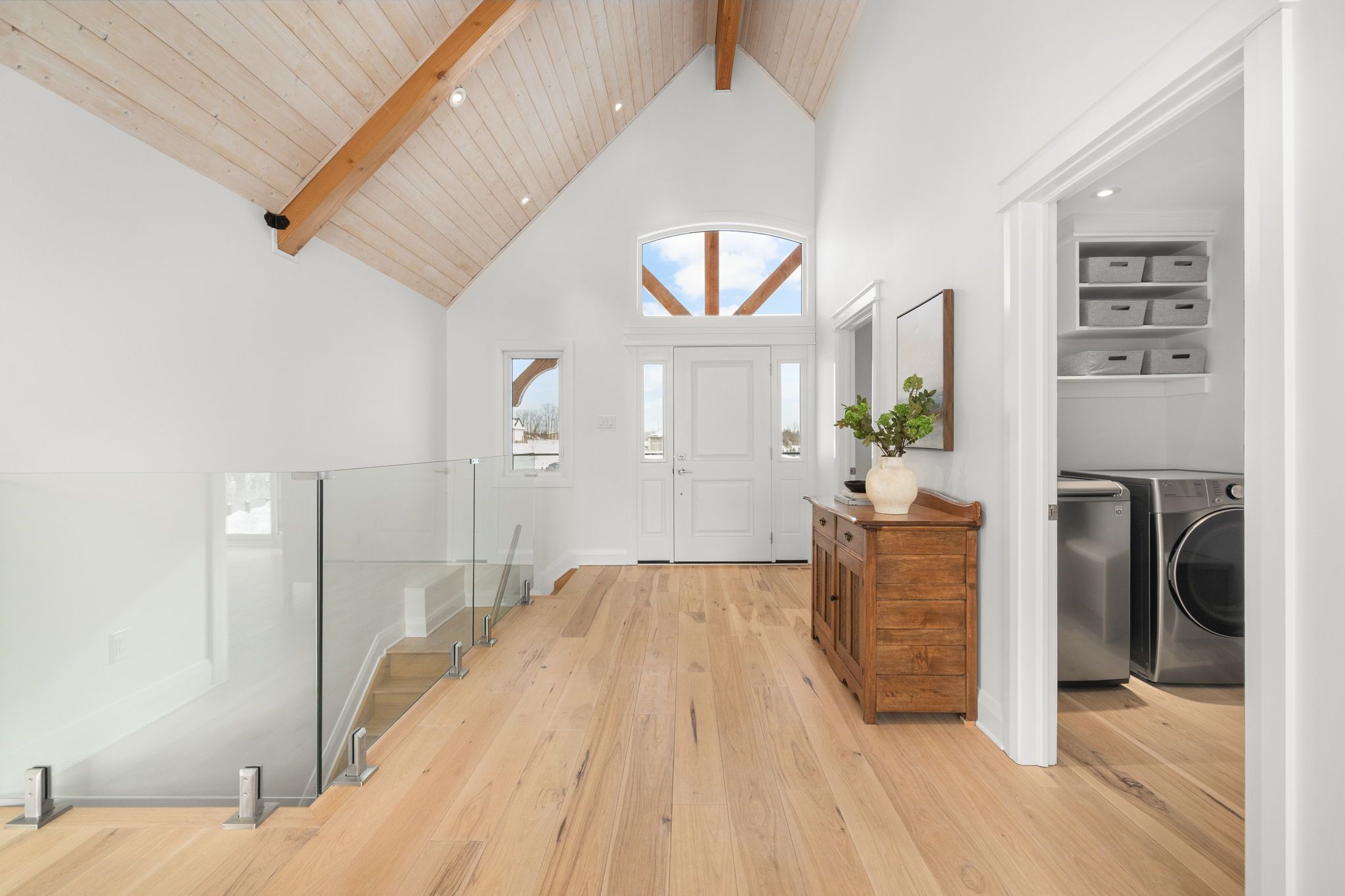 • Dramatic entrance with 16-foot vaulted ceilings and rich hardwood flooring.
