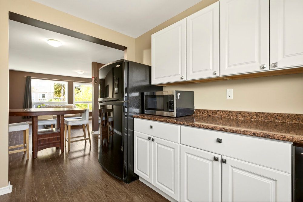 • Upgraded kitchen with ample cupboard and counter space for cooking.