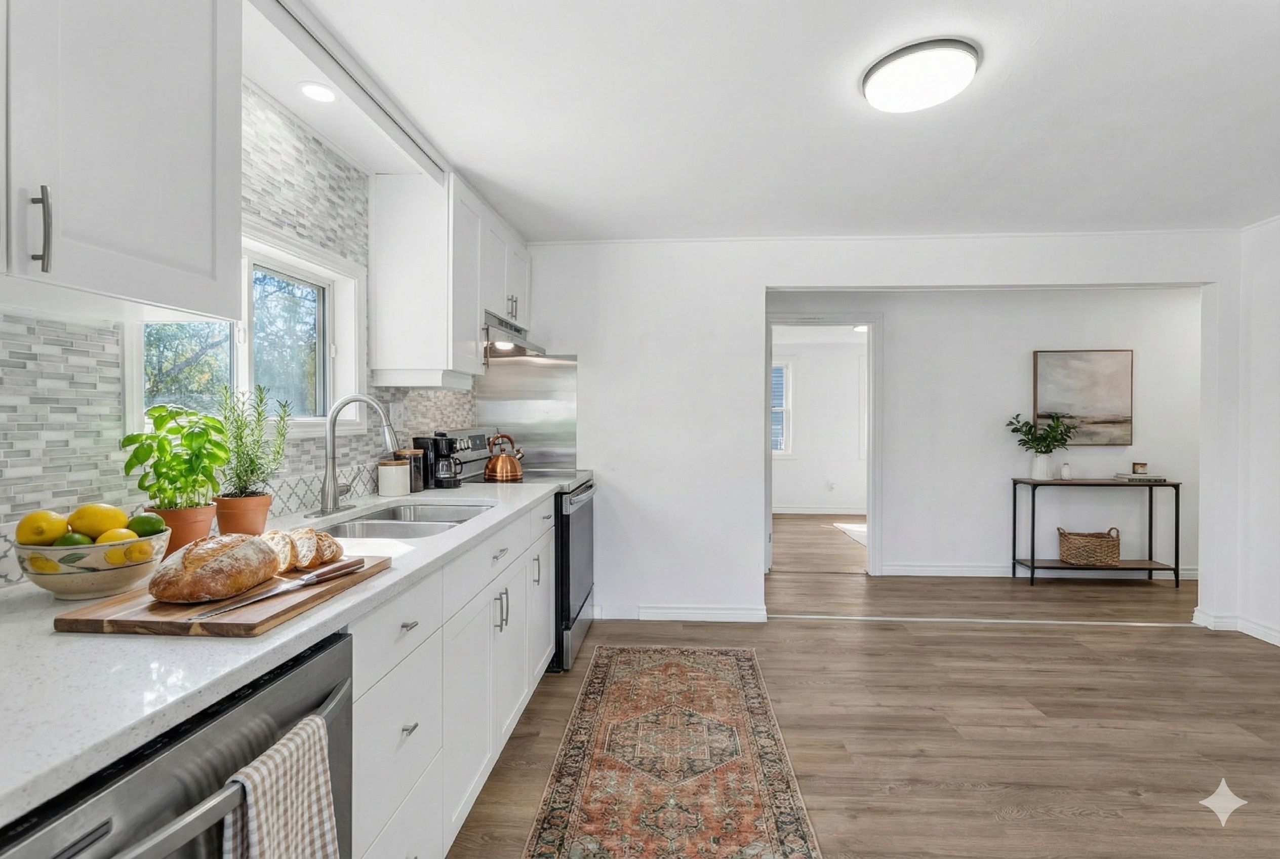 • Bright layout with new flooring and modern feel for comfortable living.