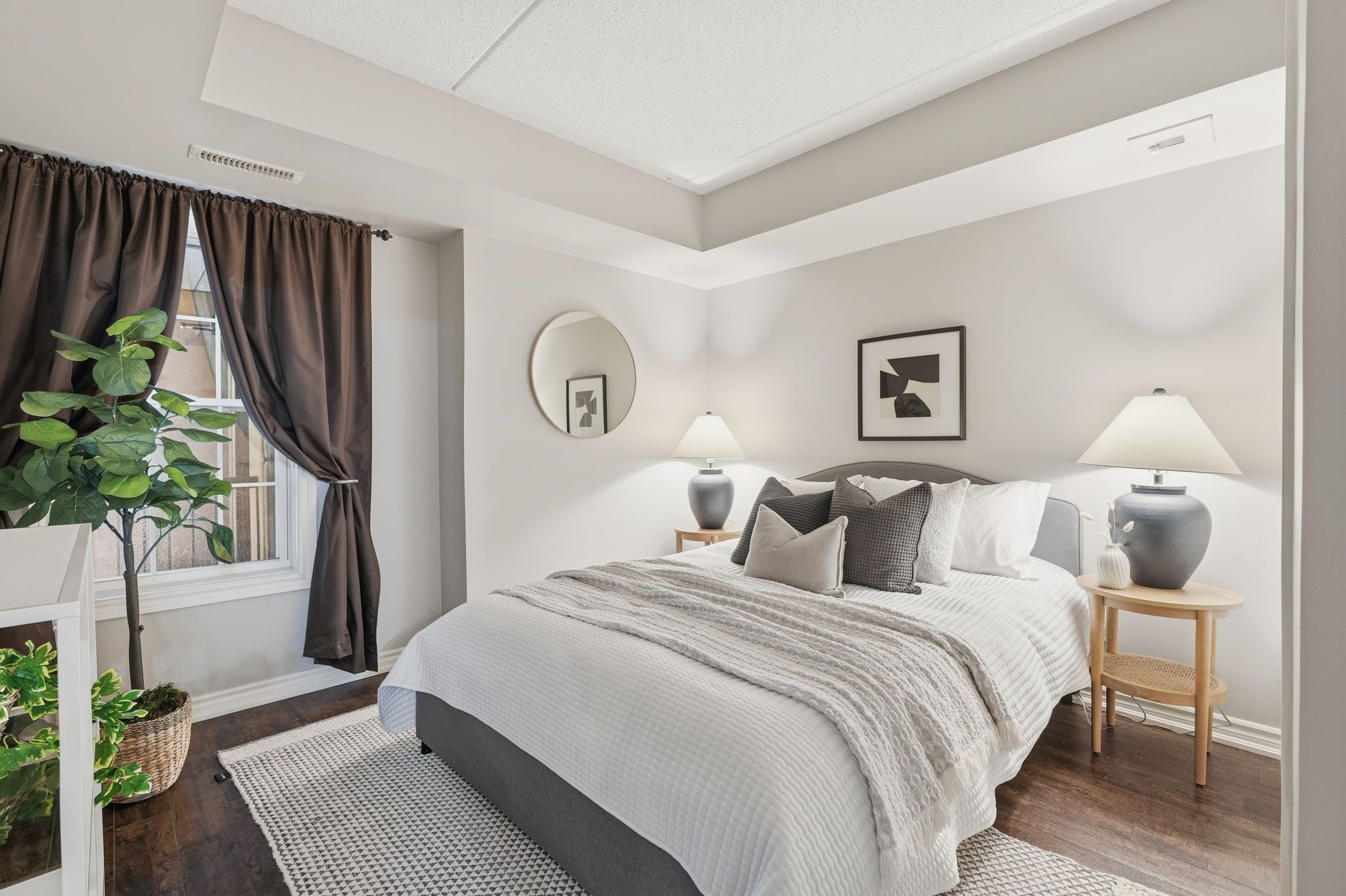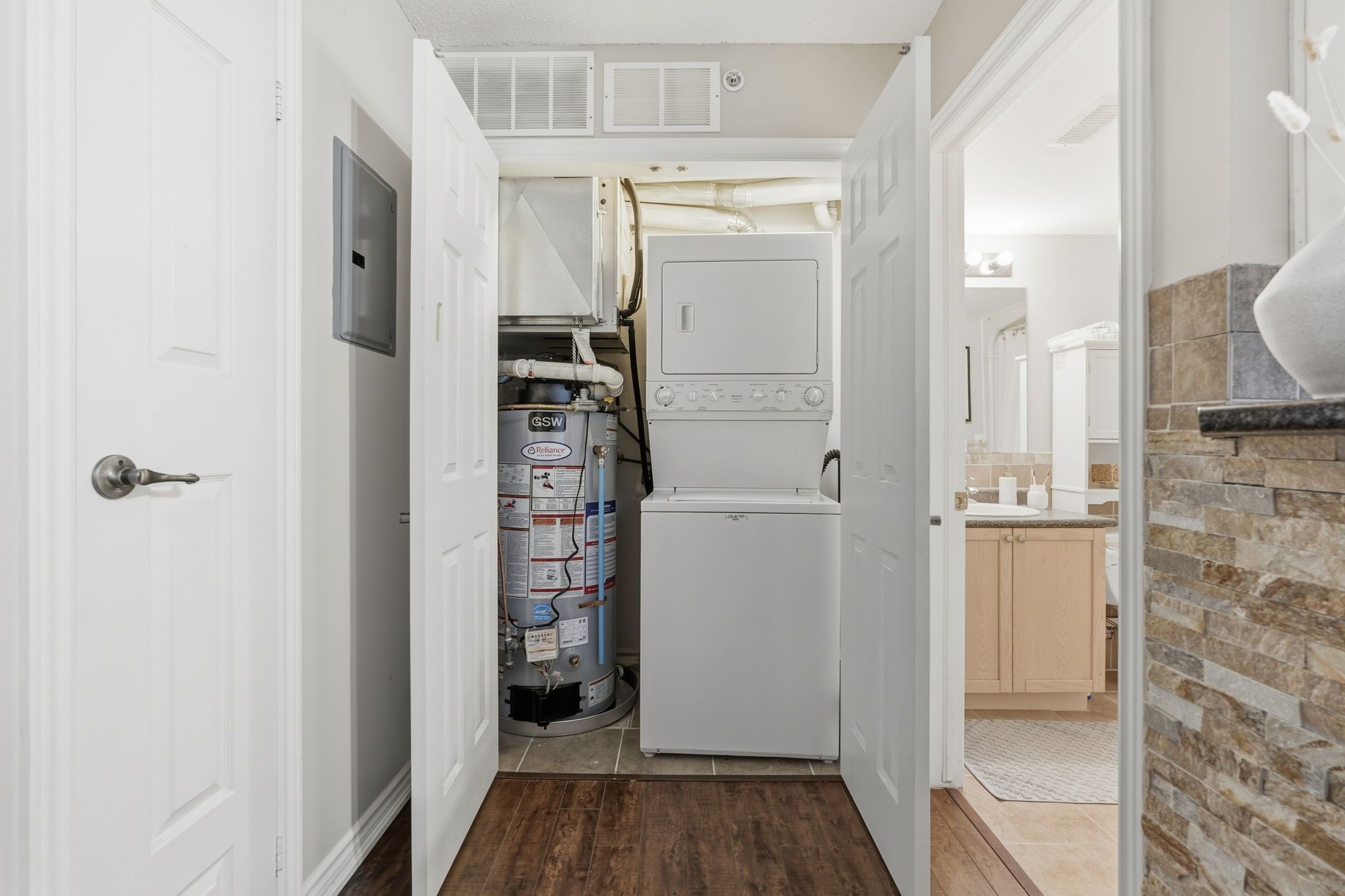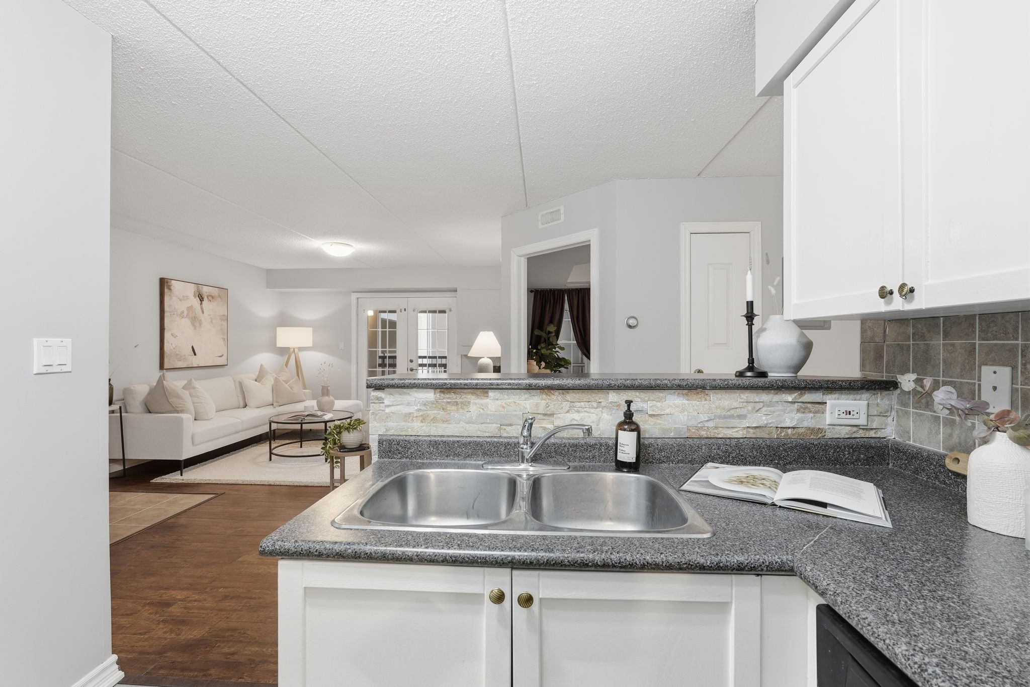 Stylish, low-maintenance living in the heart of burlington! This modern 1 bedroom plus den, 1 bathroom unit is the perfect fit for young professionals looking to own their first home or retirees seeking comfort, convenience, and lifestyle. Located just minutes from the qew and hwy 407, commuting is a breeze while being steps to restaurants, cafes, and all the shopping you need means keeping your time spent in the car to a minimum. Bright kitchen cabinetry and sleek laminate flooring throughout the main living space make this space fresh and move in ready. The spacious den provides an ideal work from home space or hobby room. Other conveniences include in-suite laundry, 1 underground parking space, and 1 locker for extra storage. Plus an additional bonus storage room can be found on the balcony for added convenience. Plenty of visitor parking means friends and family can drop by anytime. Residents also enjoy access to a fitness centre and party room, ideal for socializing or staying active without ever leaving home. Whether you're working downtown, hybrid, or remote, this is a smart move in a fantastic location! Don't miss this opportunity to simplify your life without sacrificing style, comfort, or location!