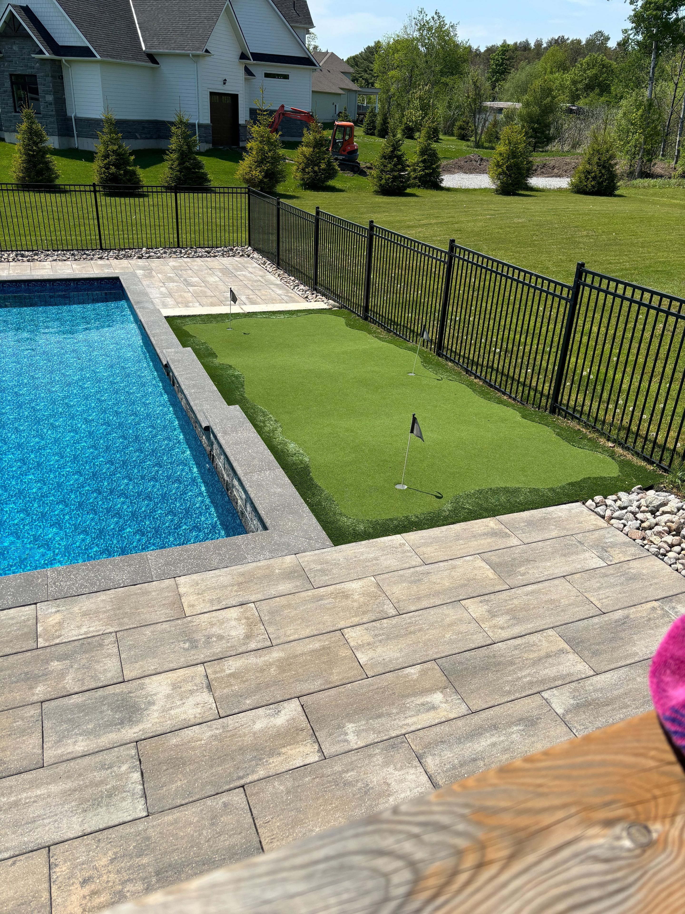 • Professionally landscaped backyard with a saltwater pool and mini putt area.