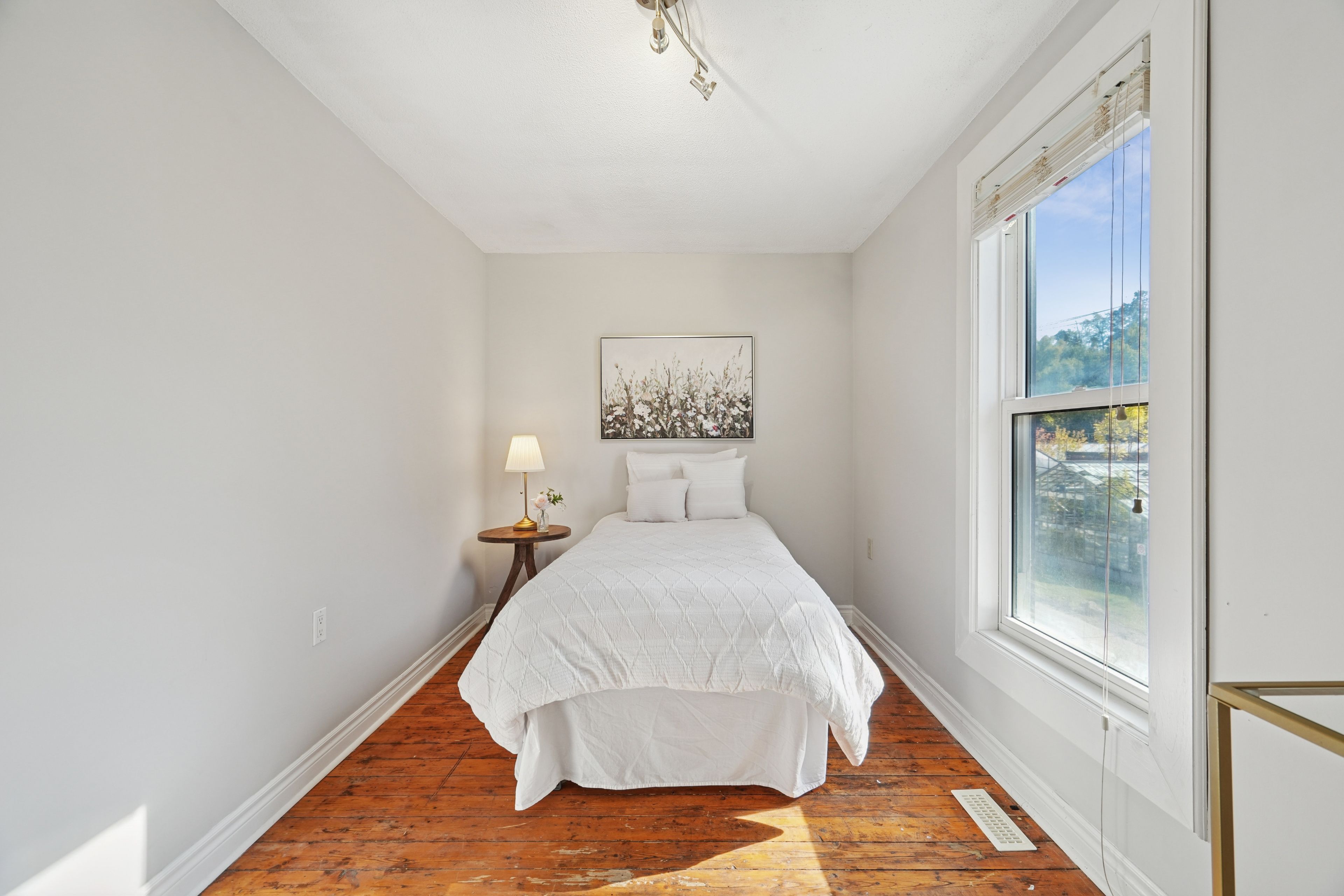 Welcome to 2055 embleton road, brampton - a rare opportunity to own a century home on a lush 25 x 115 ft corner lot in the heart of huttonville. Built in 1906, this lovingly maintained semi-detached home offers vintage character with modern updates, wrapped in a peaceful, almost country-like setting just minutes from all city conveniences. Step inside and feel instantly at home. The bright living room features classic hardwood floors and flows naturally into the updated eat-in kitchen - complete with new countertops, a sleek sink, stainless-steel appliances, and a functional island. The oversized eating area is perfect for everyday living and entertaining. Need a work-from-home space? The adjacent mudroom doubles as a laundry room and home office, with direct access to the private fenced backyard - a green space ideal for morning coffee, gardening, or hosting bbqs. Upstairs, you'll find a peaceful primary bedroom retreat featuring soft carpet underfoot, double closets, and two large windows bathing the space in natural light. The stylish 4-piece bathroom has been recently updated with modern fixtures and finishes. The detached 18' x 22' garage (417 sq ft) is a standout feature - offering private parking plus tons of storage or hobby space. Located just minutes to parks, shops, the credit river, and top-rated huttonville public school, this home is part of a growing and revitalized neighbourhood with planned parks, trails, and community features on the horizon. It's the perfect blend of country vibes and city living - ideal for first-time buyers, professional singles or couples, or anyone looking to downsize without compromise. Move in and feel at home - this gem won't last long!