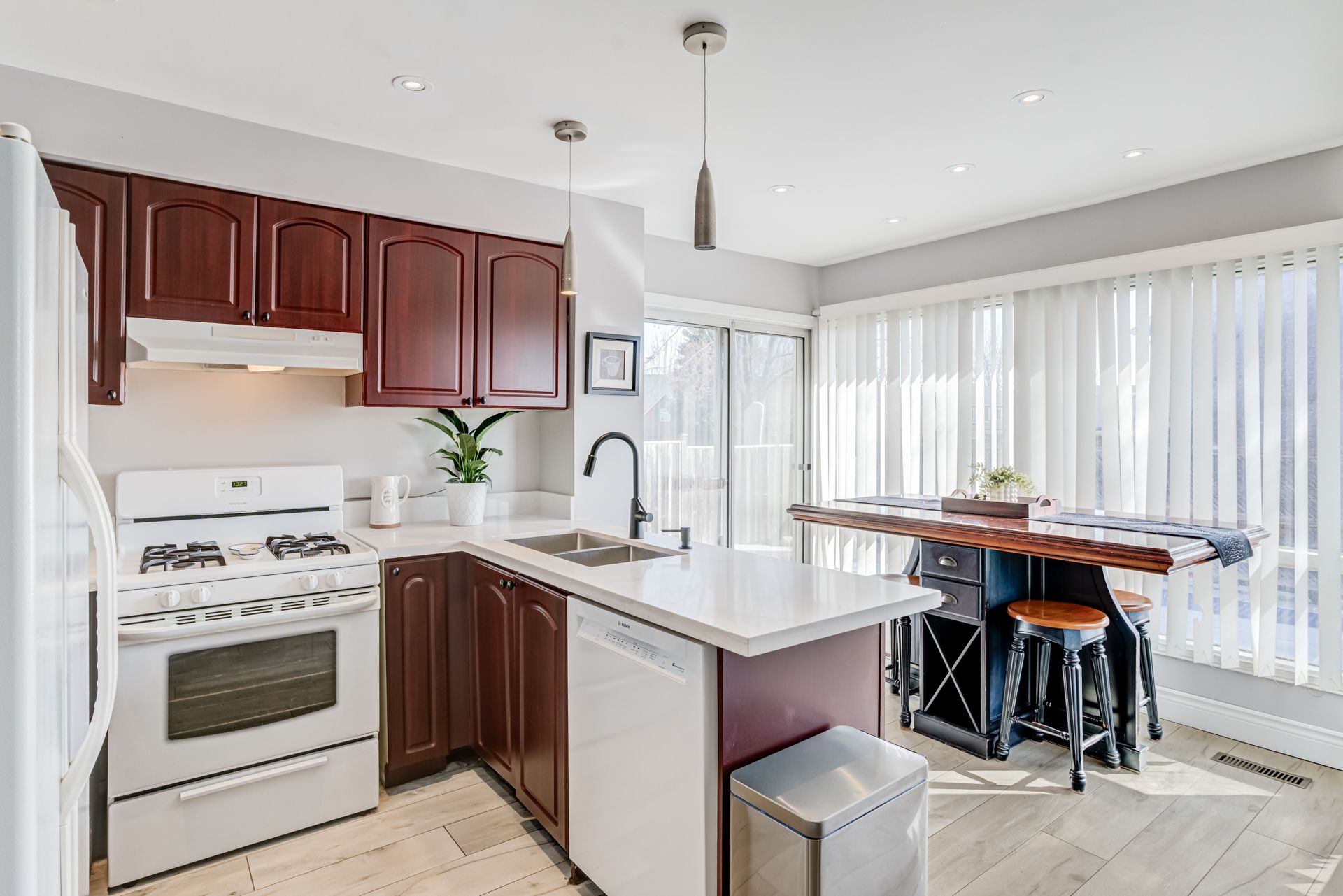 • Bright kitchen with easy access to a heated saltwater pool.