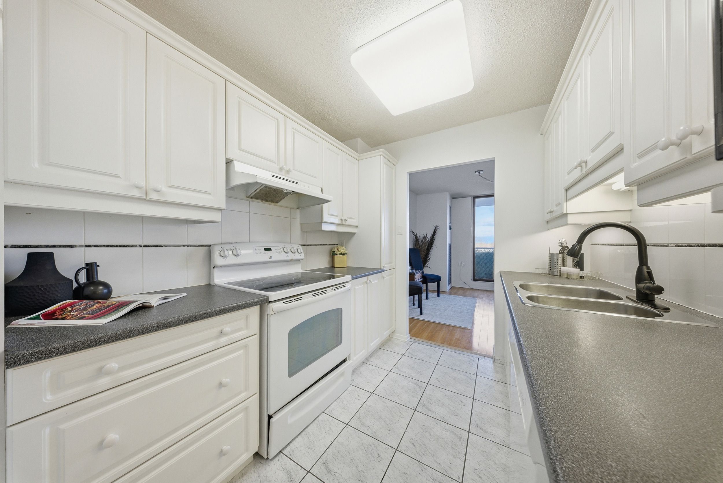 Bright and spacious 3-bedroom, 2-bathroom corner unit offering a highly functional layout and excellent natural light throughout. The open-concept living and dining area features large windows and open views, with a walkout to a large private balcony with beautiful views of the lake and surrounding nature. The kitchen provides lots of cupboard space and there is a large pantry for added storage. All three bedrooms are generously sized and well suited for family living, guests or a home office. The primary bedroom features a walk-in closet and a 4-piece ensuite bathroom. Additional highlights include in-suite laundry and a well-designed floor plan that offers both privacy and flow. Residents enjoy fabulous building amenities including: a gym, tennis court, outdoor pool, library, games room, workshop, craft room, and guest suite. Conveniently located within walking distance to shopping, transit, and everyday amenities, and close to parks and major highways. One parking spot included.