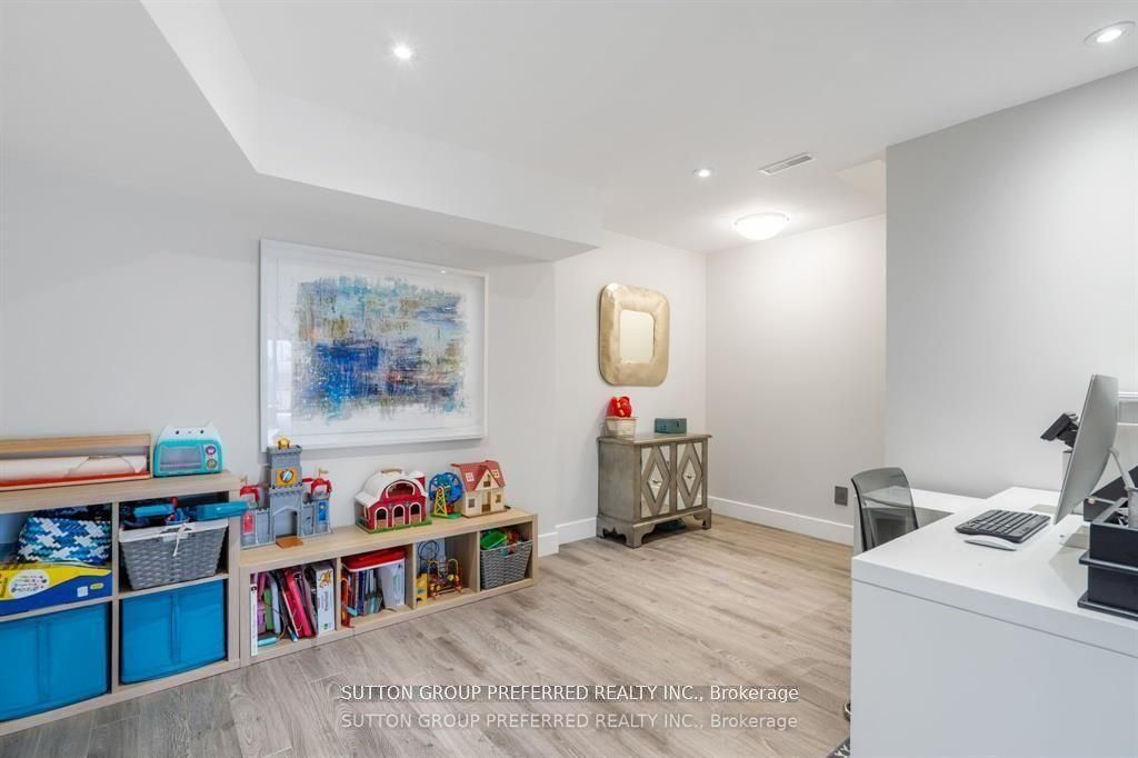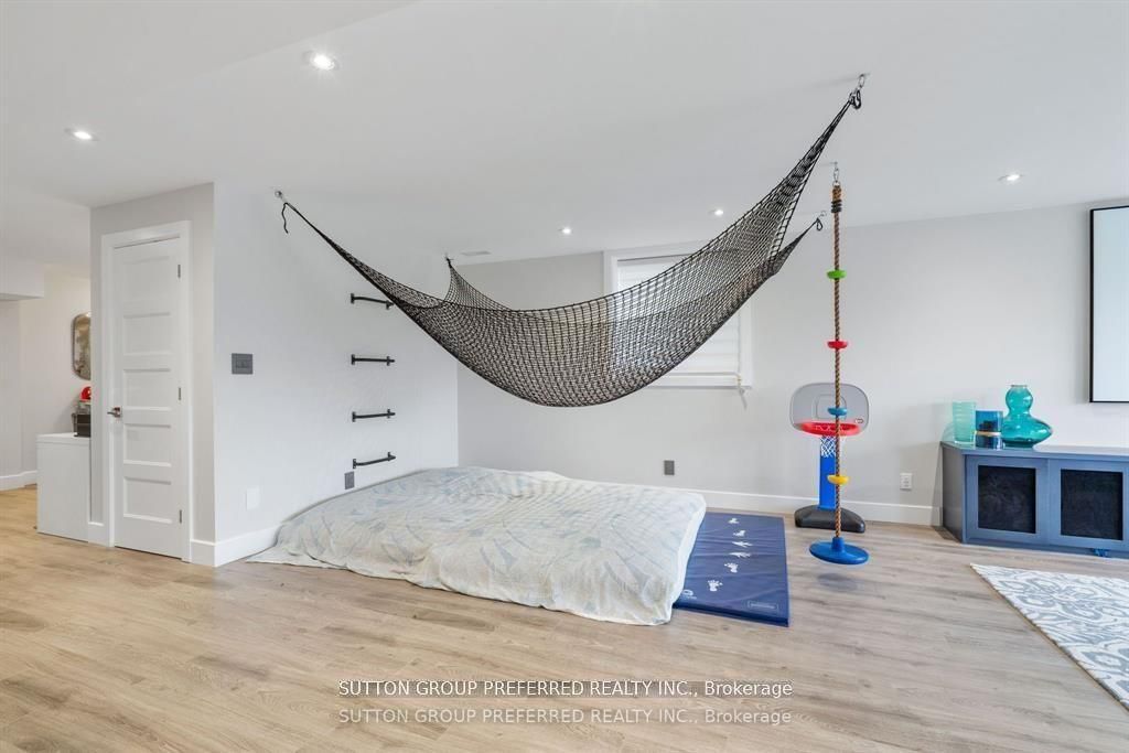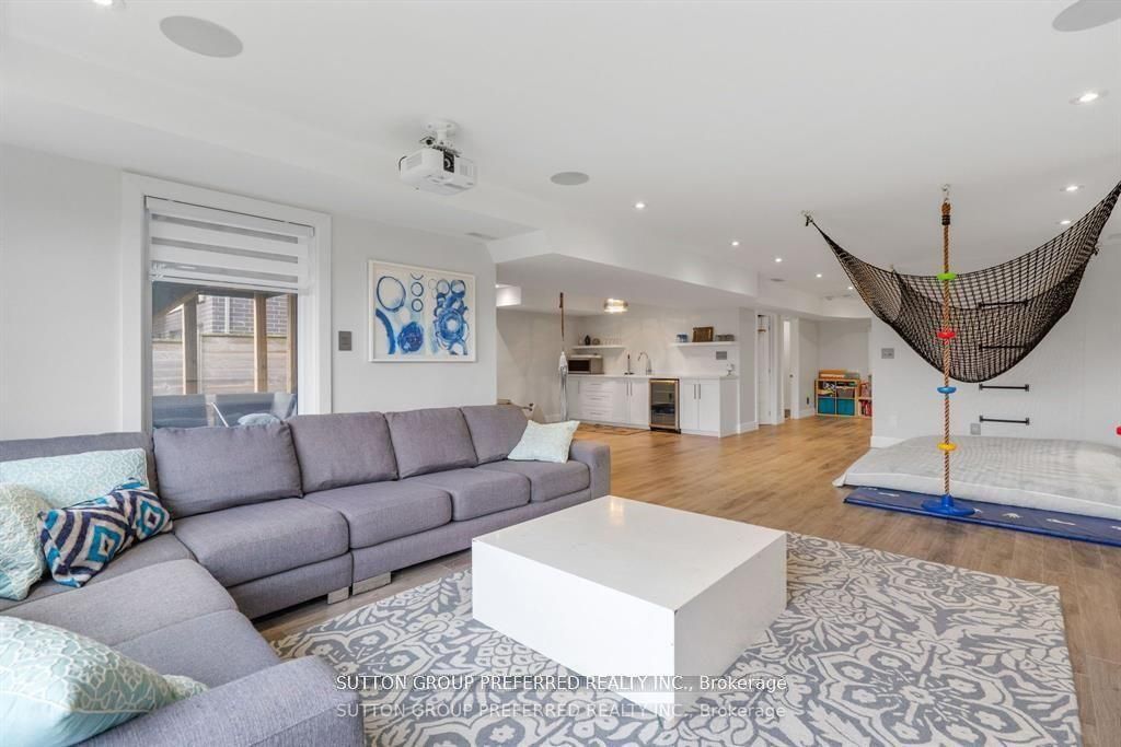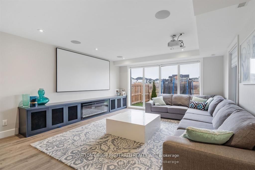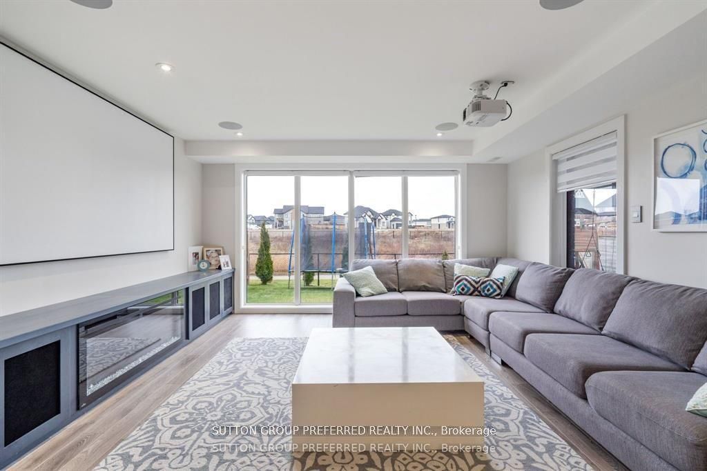• Lower level features a media room, wet bar, and rec area.
