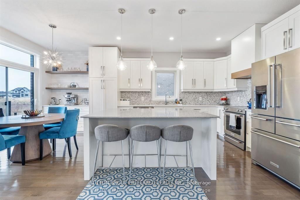 Stunning custom-built home on a premium walkout lot backing onto creek. This fully custom property features everything upgraded, from modern light switches, to faucets, to quartz countertops throughout and a newly redesigned kitchen with high-end appliances and a dedicated coffee station. Large windows fill the home with natural light, complementing the open layout. Enjoy outdoor living on the double composite deck with glass railing overlooking the creek. Inside, you'll find 4 bedrooms, 3. 5 baths, 3 electric fireplaces, a formal dining room along with custom built-ins in the mudroom and basement. The walkout lower level offers a media room, wet bar, spacious rec area, and direct access to the yard. A truly exceptional home showcasing quality, comfort, and beautiful views.