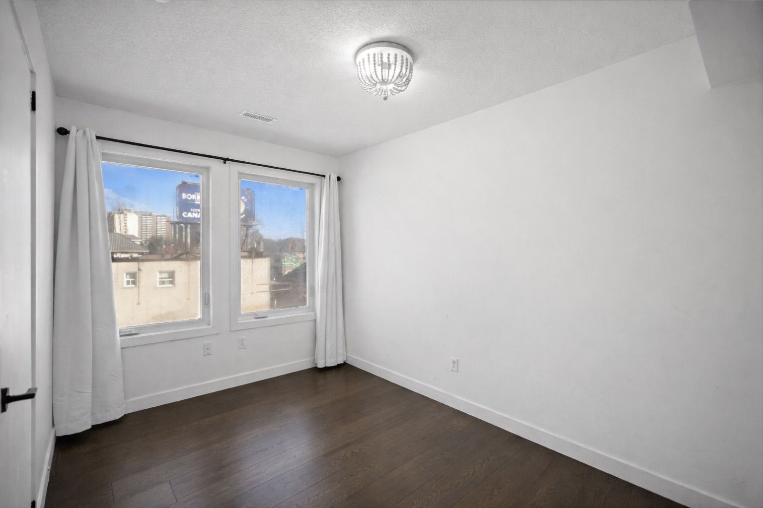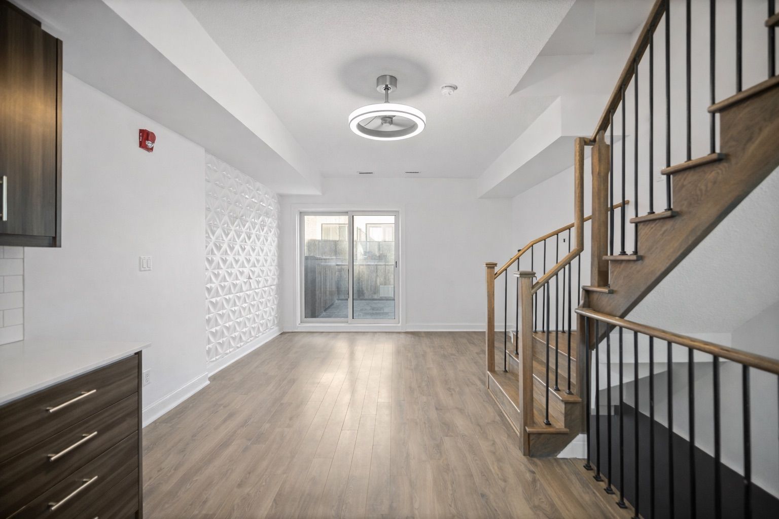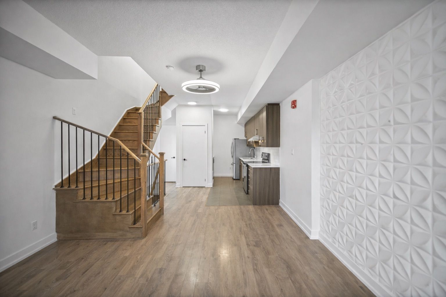 End unit 3-storey townhome offering 3 bedrooms, 3 bathrooms, and 1,334 sq ft of living space. The sun-filled open concept main floor features 9' ceilings and a bright, functional layout. The kitchen includes stainless steel appliances and a convenient nook for additional counter space and storage. The home has been freshly painted and features hardwood floor & tile throughout. The primary bedroom includes a walk-in closet and a fully renovated 4-piece ensuite, while the second and third bedrooms offer flexible space for family, guests, or a home office. Additional features include underground parking, locker and maintenance fees that cover: water, garbage removal, window cleaning, snow removal, and landscaping. Conveniently located near the up express and with quick access to highways 401 and 400.