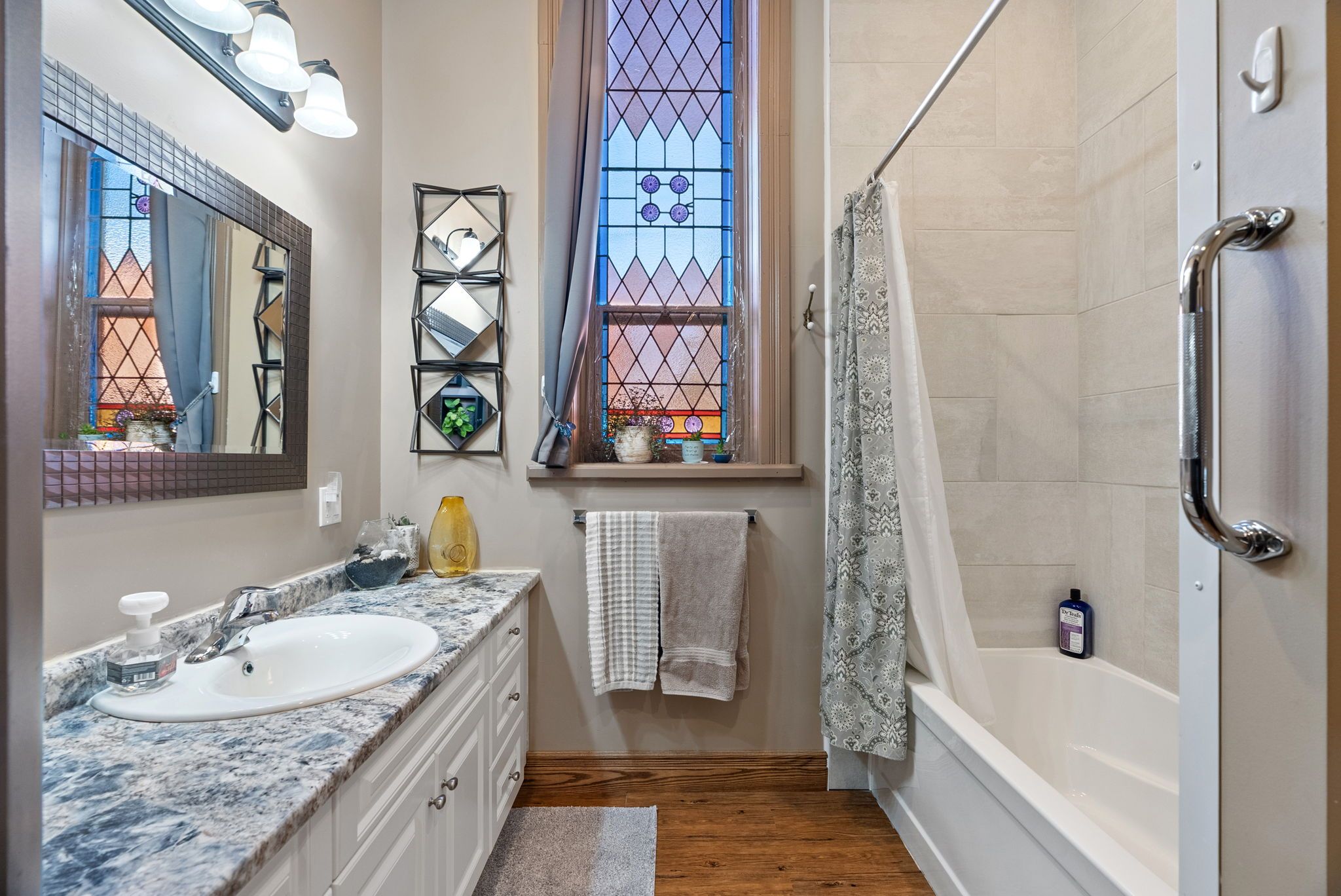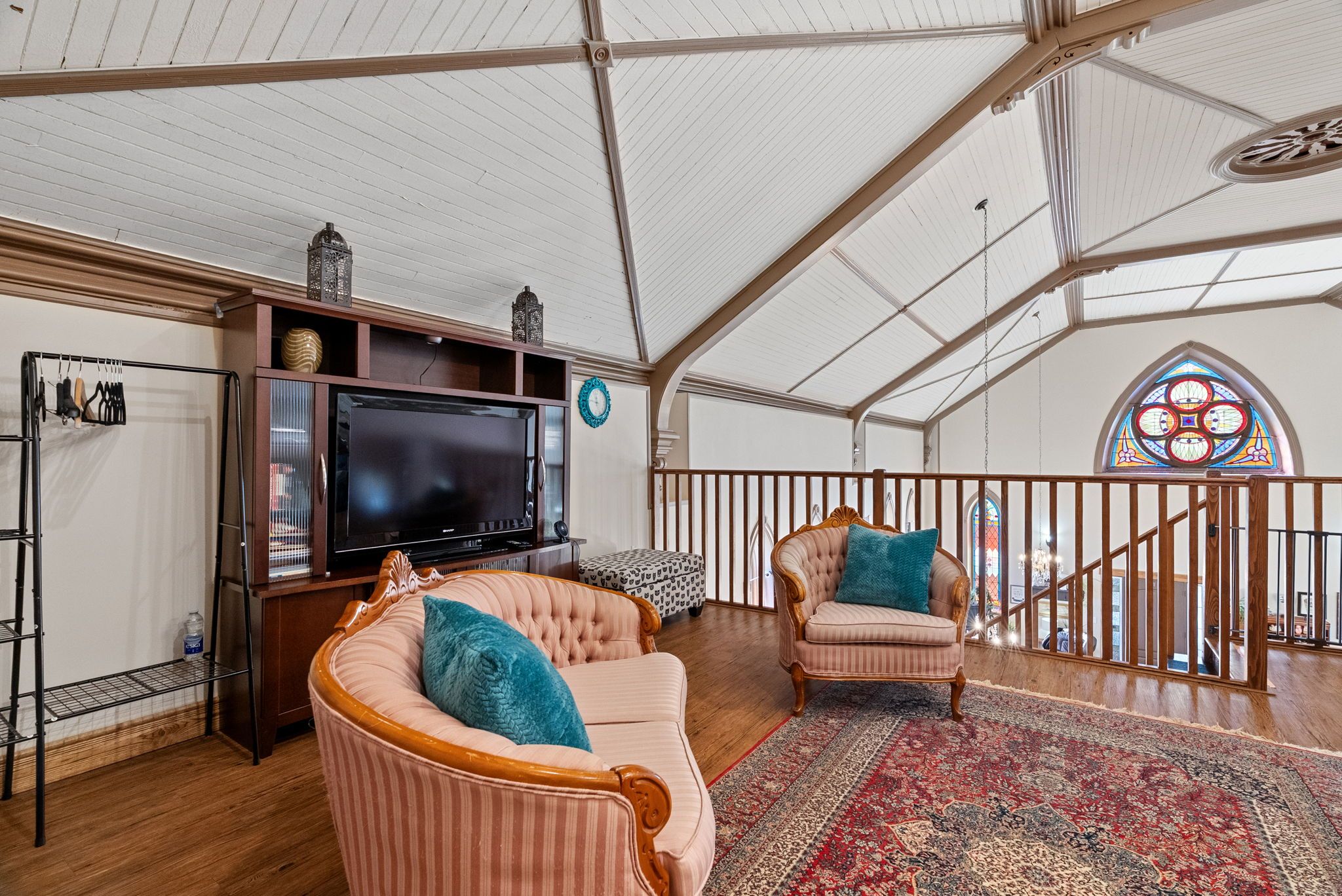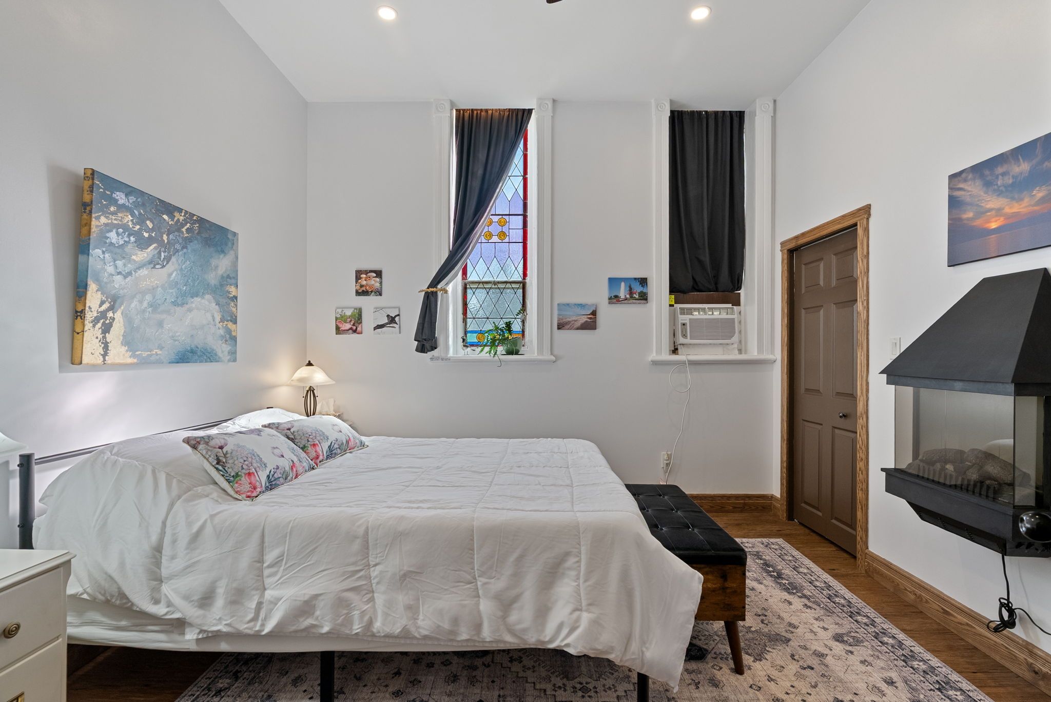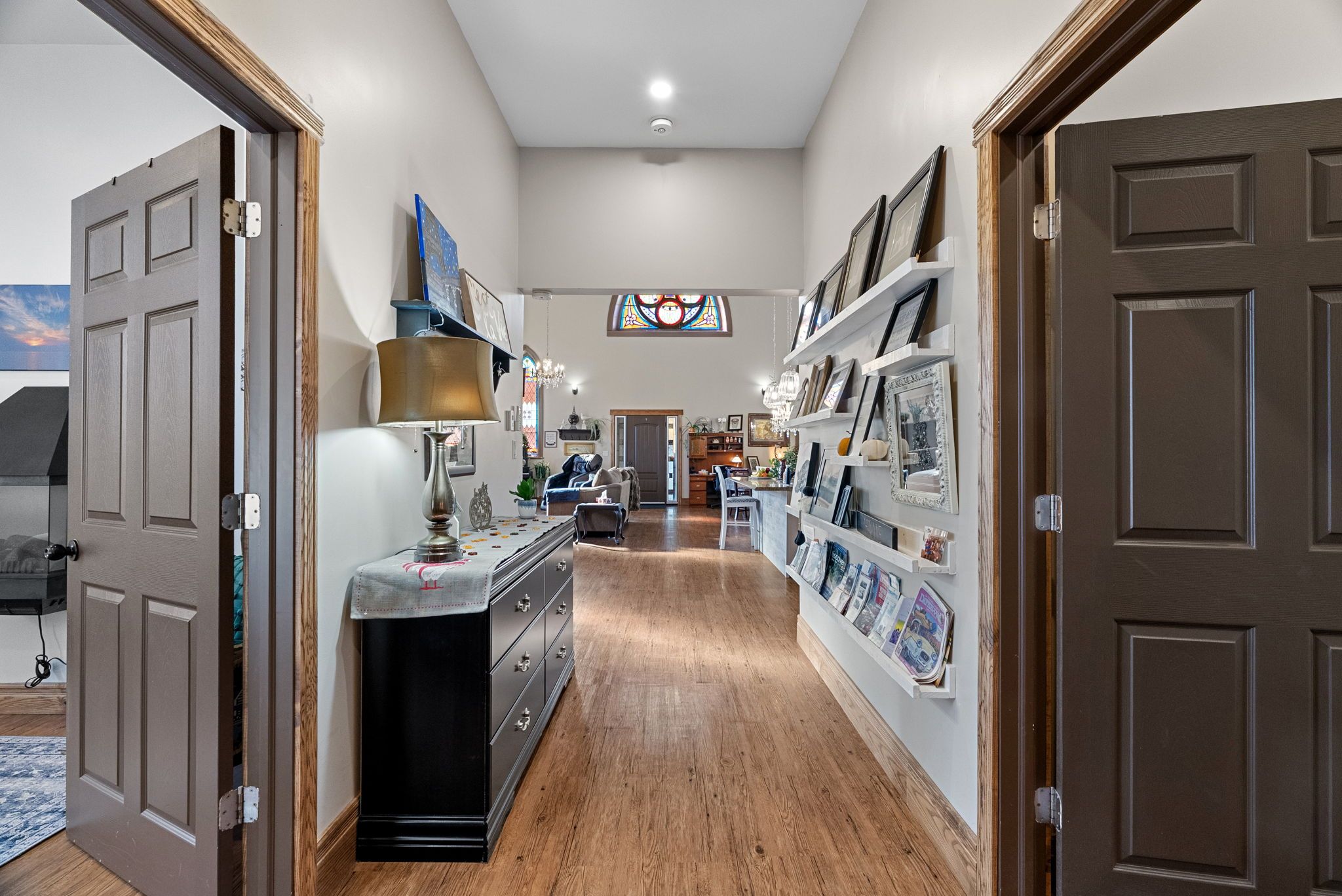 Once a place of worship, now a one of a kind residence, this 1895 brick church has been reimagined into a warm and fully livable home while preserving the character that makes it unforgettable. The moment you enter the great room, the space opens dramatically with soaring ceilings, original stained glass and an open layout designed for gathering. The main floor blends kitchen, dining and living into one impressive space anchored by a large island and framed with historic trim and arches. Also on this level is a bedroom, a 4 piece bath and main floor laundry. Upstairs, the loft style primary bedroom overlooks the main floor and features an ensuite with a double vanity and tiled walk in shower, with space for a generous wardrobe. The basement offers future potential with high ceilings, new windows, drywall started, rough ins for an additional bathroom and bedrooms and a separate entry from the front foyer which is ideal for multi use or future rental potential. Outside, the fenced yard is landscaped and offers a firepit area, storage shed with lean to and parking. The home sits in the hamlet of whitechurch, minutes to lucknow and wingham for amenities and about 20 minutes to the beaches of lake huron. The property has also been operated as an airbnb and has been a well loved stop for travellers and quiet getaways. The seller is open to selling it fully furnished, allowing a new owner to step into a turnkey residence or continue the airbnb use immediately. For someone looking for more than a house, something with history, and long term potential, this converted church is a rare offering.