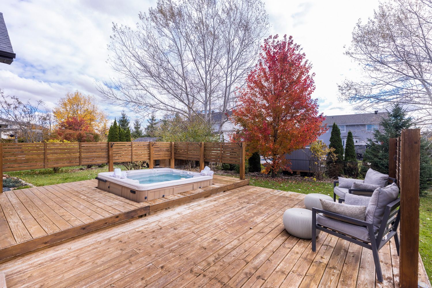 Welcome to this modern executive bungalow by an award winning builder in sought after richmond oaks. Be prepared to be wowed from the moment you enter! Hardwood flooring throughout the main level with stunning windows overlooking the beautifully landscaped backyard with deck and hot tub - offering year round relaxation and entertaining. The open concept main floor features a chef's paradise kitchen with high end ss appliances, generous cabinetry, beautiful quartz counters and a great room with gas fireplace & custom bookshelves. A spacious dining area leads to a screened porch for that relaxing morning coffee. The primary suite is spacious w/ 5 piece spa ensuite, water closet & well appointed walk-in closet. Two additional bedrooms, main bath & laundry complete the main floor. Family living continues on the lower level with a sizeable family room, gym/office area, 4th bedroom & full bath. The 3 car garage (one tandem) has a separate entrance to the lower level with potential for a home business, teen or in-law retreat. Walk to shops and restaurants and immerse yourself in richmond village charm.