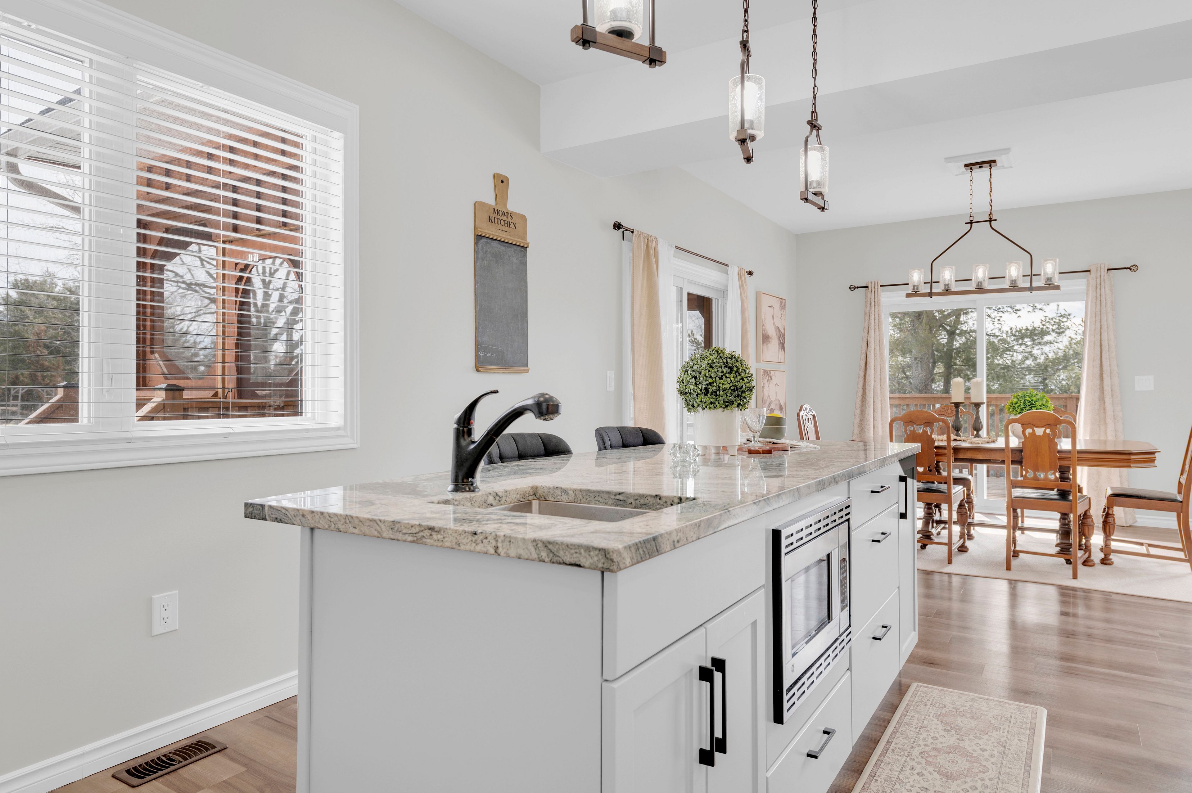 If you're looking for a home that truly has it all, be sure to check out 206 fiddick road. This wonderful property offers space, comfort, and beautiful natural light throughout. The main floor features a stunning living room with floor-to-ceiling windows, fireplace, and patio doors, allowing the southern sunshine to pour in. The well-appointed dining area flows seamlessly into the lovely kitchen, complete with granite countertops, a large island with an additional sink, and a walk-in pantry . Just off the dining area, you'll find a relaxing three-season sunroom, perfect for enjoying family gatherings on warm summer evenings. Also on the main floor is the primary bedroom, featuring a walk-in closet, a stylish 4-piece ensuite, and convenient main-floor laundry. The upper level offers two additional bedrooms, a 4-piece bath, a dedicated office area, and a spacious family room/games room, providing plenty of room for family or guests. The lower level continues to impress with two more bedrooms, another 4-piece bath, a rec room with gas fireplace, a gym area, and a rough in for a kitchenette/bar area. All of this is set on a beautiful 1. 35-acre lot, complete with a 3-car detached garage, offering plenty of space both inside and out.