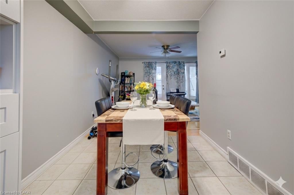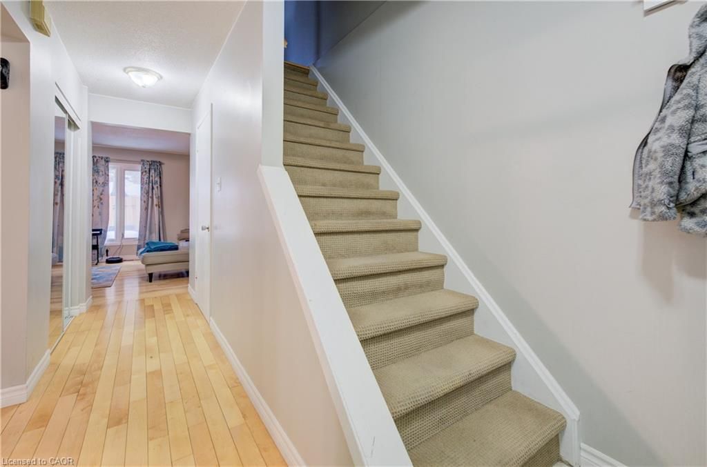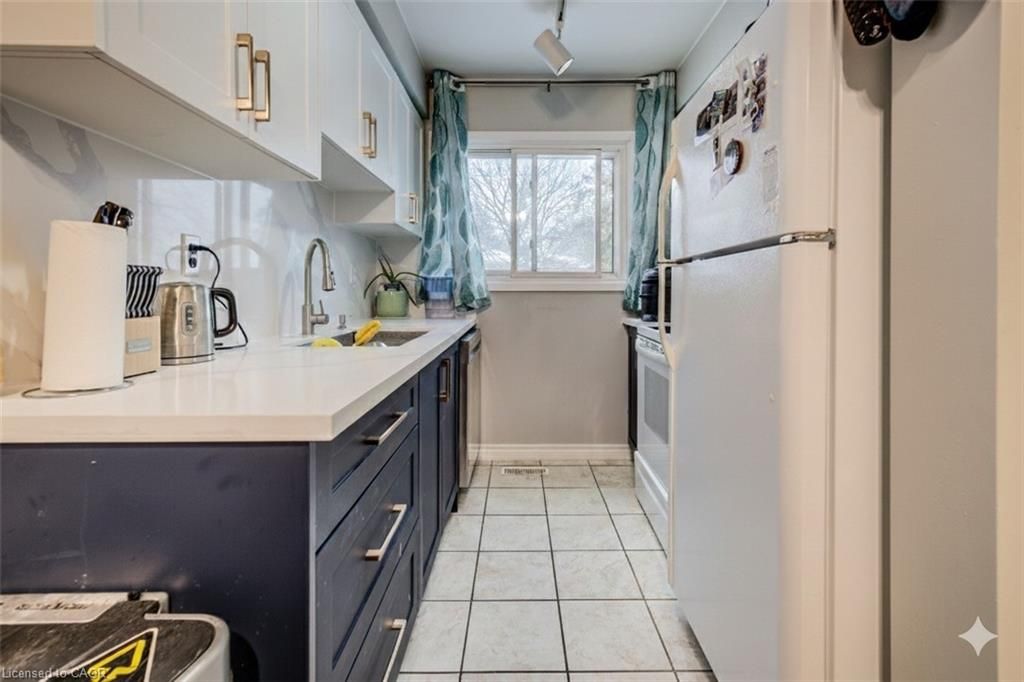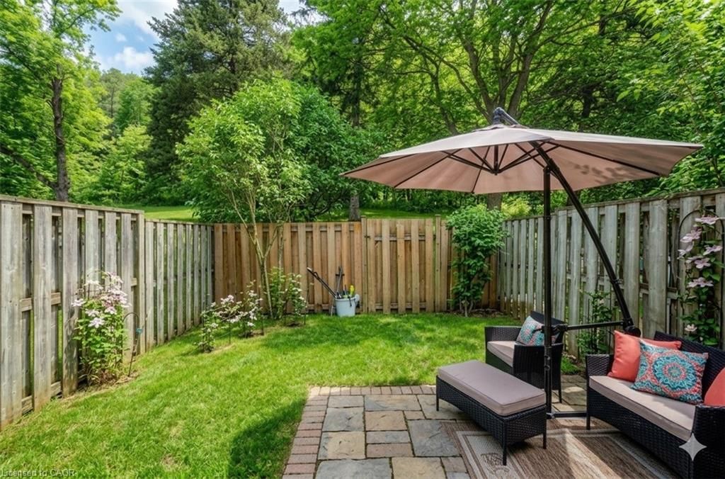 End unit with green space behind. With thoughtful and curated updates this home is sure to please. This condo is anchored with a sophisticated kitchen renovation completed in 2025, featuring premium quartz countertops and new over-the-range microwave and dishwasher. The spacious living room is bathed in natural light with a walk-out to the backyard. The outdoor space is framed by a new fence (2024) providing a quiet and secure backdrop to this beautiful home. This three-bedroom, two-bathroom residence balances its polished interior with essential updates. Move in ready. Conveniently located near highway 401, schools and amenities. Measurements as per iguide.