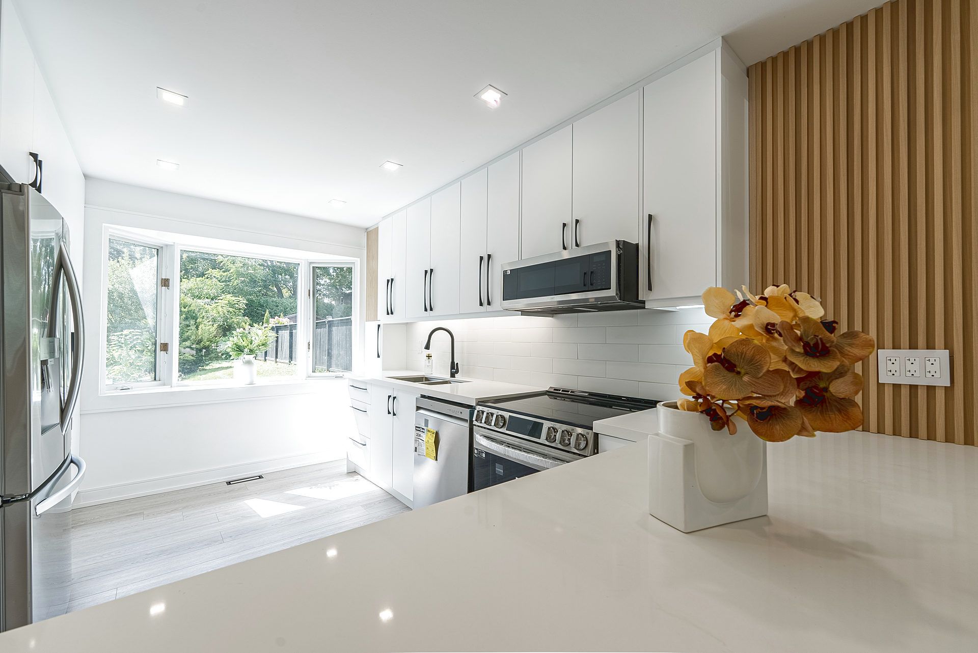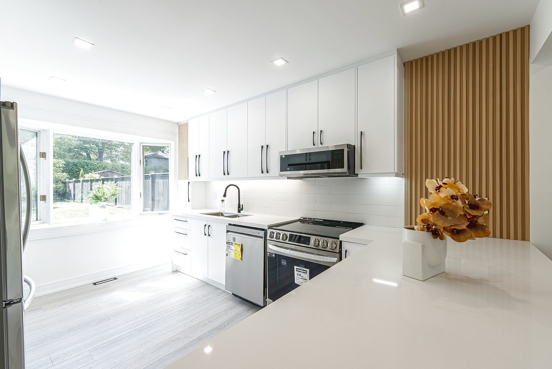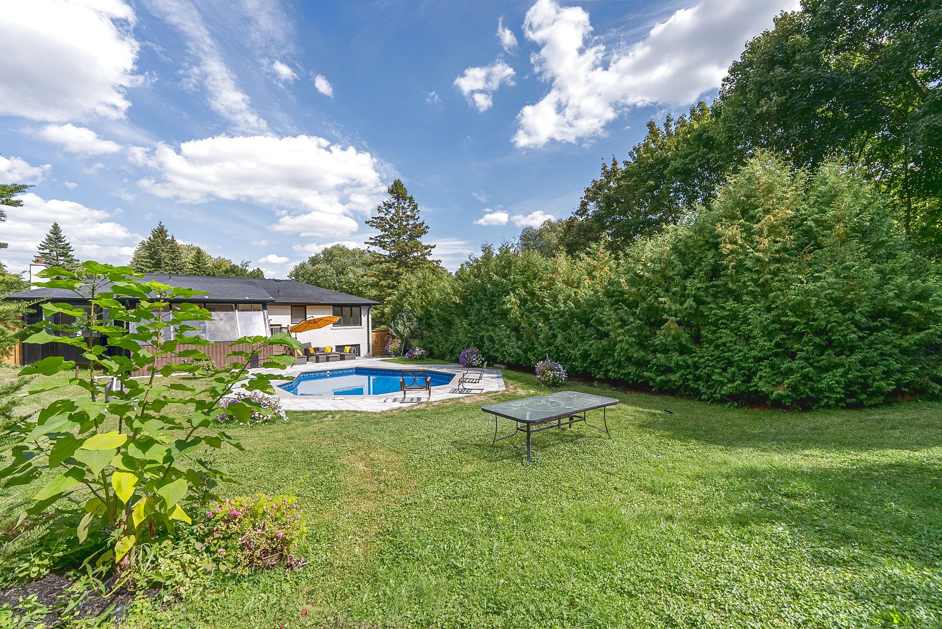 Tastefully renovated with finished basement, large lot with swimming pool, new interlocking around the pool, lots of parking on the interlocked drive way, epoxy garage floor, custom kitchen on the main floor and basement, fully renovated bathrooms, brand new flooring across the main floor and the basement, new stairs from the drive way to the main entrance, close to transportation, must see.