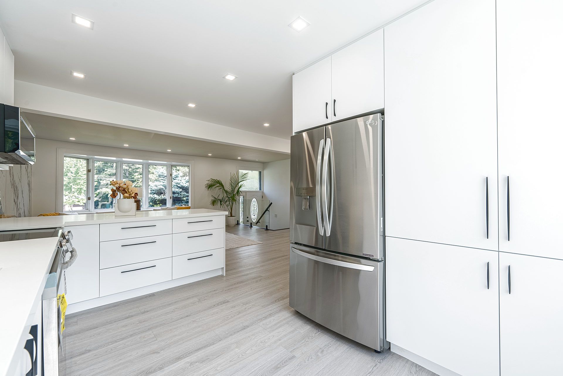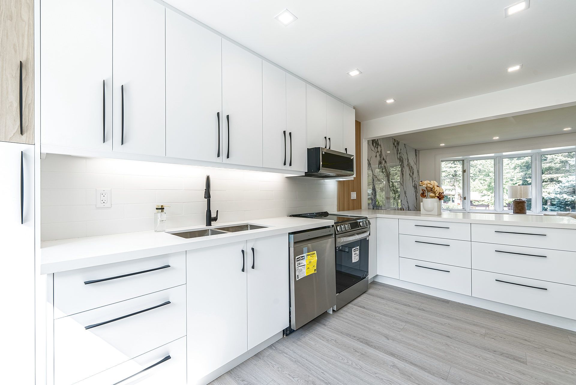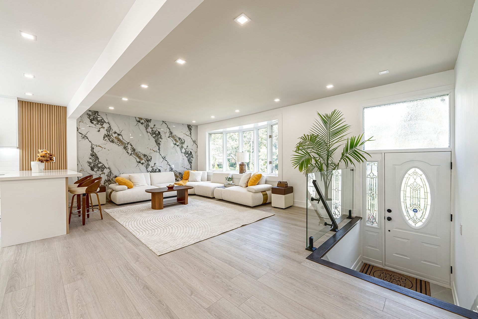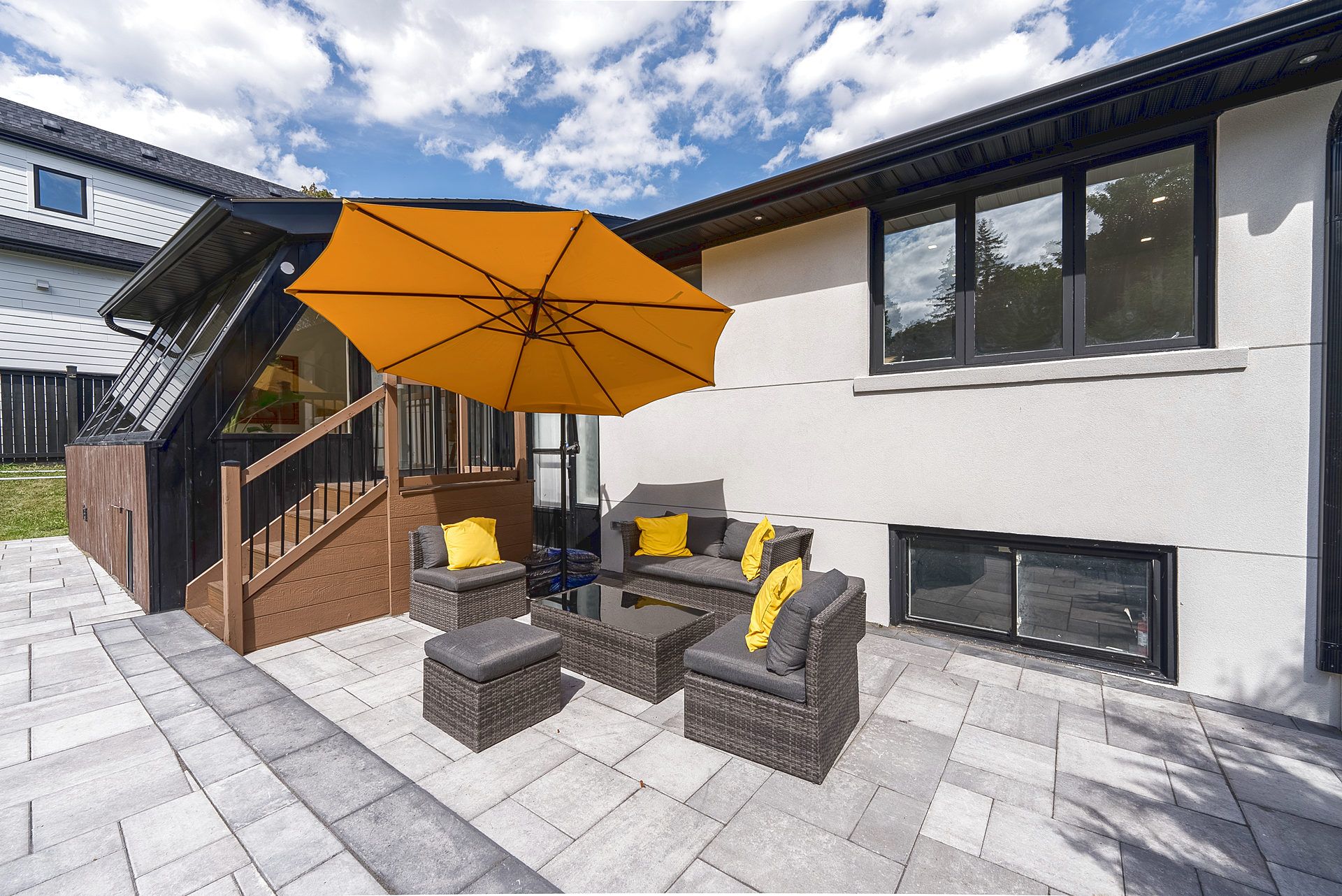 Tastefully renovated with finished basement, large lot with swimming pool, new interlocking around the pool, lots of parking on the interlocked drive way, epoxy garage floor, custom kitchen on the main floor and basement, fully renovated bathrooms, brand new flooring across the main floor and the basement, new stairs from the drive way to the main entrance, close to transportation, must see.