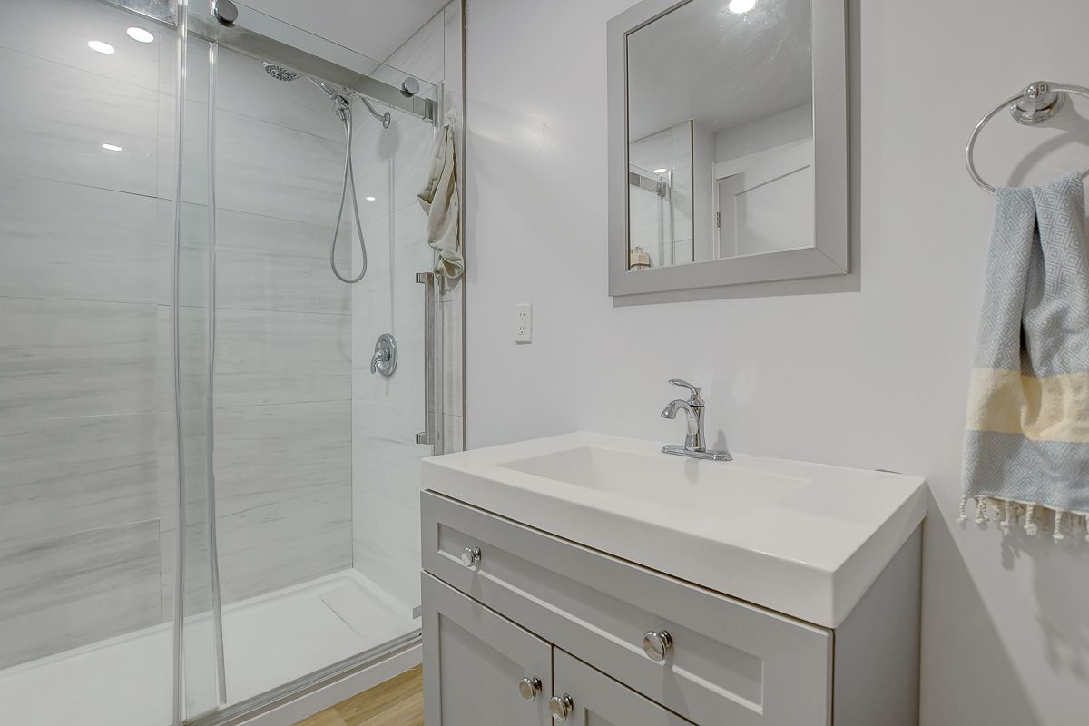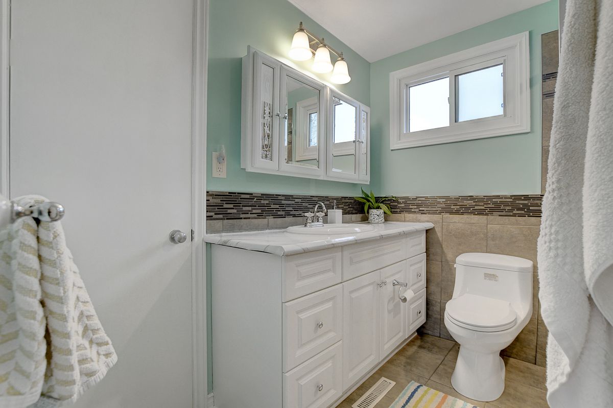 • Spacious second level with upgraded flooring and modern full bathroom.