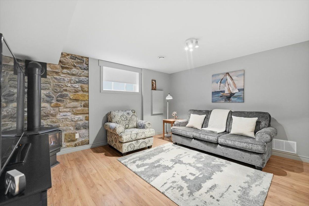 Welcome to 206 trillium circle in the welcoming community of wendover! This carpet-free 2 bedroom, 2 bathroom semi-detached home with no direct rear neighbours shows true pride of ownership and is sure to impress. Step inside the inviting foyer with convenient garage access and get your first glimpse of the cathedral ceilings, adding an airy and elegant feel to the open-concept main level. The spacious living room flows seamlessly into the entertainer-sized dining area, highlighted by a striking accent wall. The kitchen is both stylish and highly functional, featuring light cabinetry, stainless steel appliances, a beverage refrigerator, ample cabinet and counter space, pot lights, and french doors leading to the fully fenced backyard. Step outside to enjoy the beautifully landscaped outdoor space complete with a two-tier deck (8'x10' and 12'x12') with built-in storage, perfect for relaxing or hosting family and friends. The generous primary bedroom offers two large closets and a convenient cheater door to the 4-piece bathroom featuring a glass shower and separate soaker tub. A well-proportioned secondary bedroom completes the main floor layout. The fully finished basement provides fantastic additional living space with a versatile family room warmed by a cozy napoleon gas stove, a large storage room, a dedicated laundry room with utility sink and plenty of space for drying clothes, and a stylish barn door leading to the second full bathroom. Great location on a quiet street, steps to coffee shop, pharmacy, convenience store, wendover boat launch and a minute away from the 174 for easy commute! Impeccably maintained and move-in ready - this is a home you won't want to miss. Come see it for yourself!