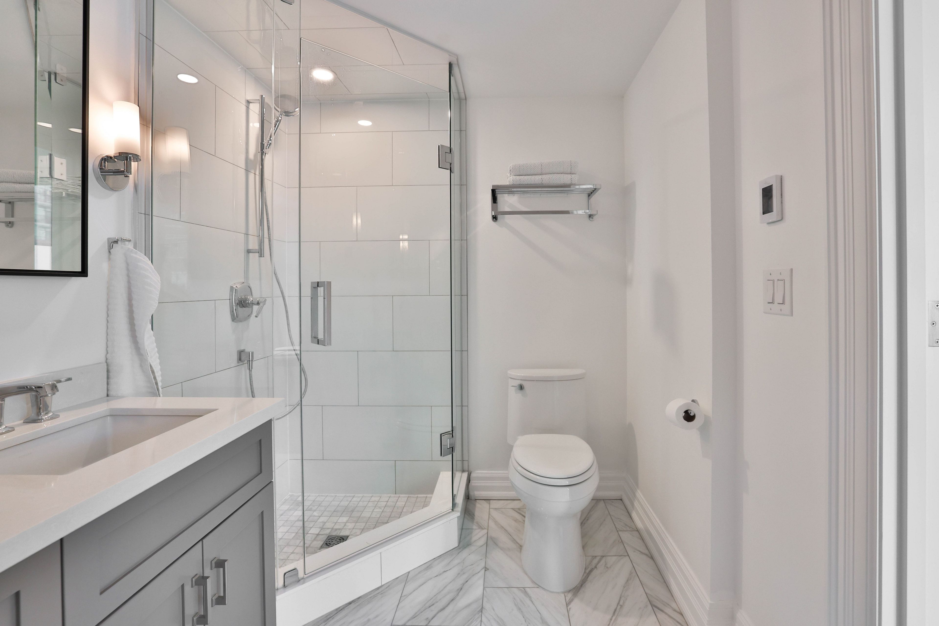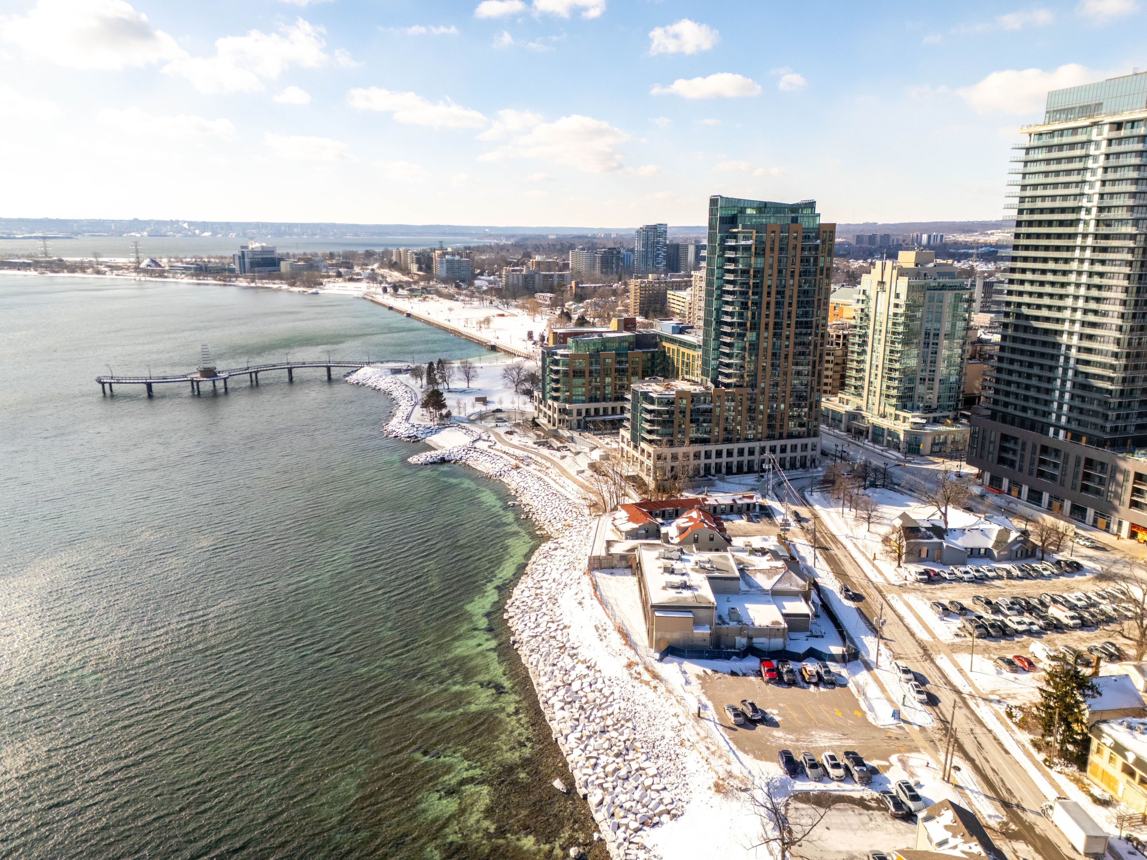 Luxurious living awaits at the prestigious bridgewater residences on lake ontario situated in the heart of burlington's vibrant downtown waterfront. This exceptional 2 bed,2 bath corner suite offers a blend of elegance, comfort and breathtaking surroundings with coveted north and east exposures and stunning lake ontario sunrise views. Bright and spacious, the suite features high ceilings, floor-to-ceiling windows and two walkouts that flood the home with natural light. Enjoy seamless indoor-outdoor living with two large private balconies equipped with natural gas and water hookups ideal for entertaining and relaxing by the lake. Refined finishes elevate every detail and include hardwood flooring, marble and porcelain tile, tray ceilings, crown moulding, pot lights, kohler fixtures, custom closet built-ins and high-end appliances. The open-concept living/dining area flows effortlessly into a gourmet kitchen showcasing barzotti cabinetry with valence lighting, integrated thermador appliances, a large island, quartz countertops and subway tile backsplash. The luxurious primary suite offers a walk-in closet with built-ins, a walkout to a spacious balcony and a spa-inspired 5-piece ensuite complete with heated floor, soaker tub, frameless glass shower and double vanity. The second bedroom features a heated floor, a walk-in closet with built-ins and expansive windows. A stylish 3-piece ensuite and laundry closet provide for additional functionality and convenience. Included are a preferred parking space and a large double-size locker. Residents enjoy world-class amenities including 8th-floor terrace with bbqs and panoramic lake views, two fitness centres, party room with billiards and piano, spa-like indoor pool, boutique-style lobby with 24-hour concierge, direct access to the pearle hotel, isabelle restaurant, pearle café and monthly social events-all redefining waterfront luxury living. This is the epitome of urban luxury-don't miss this exceptional opportunity.