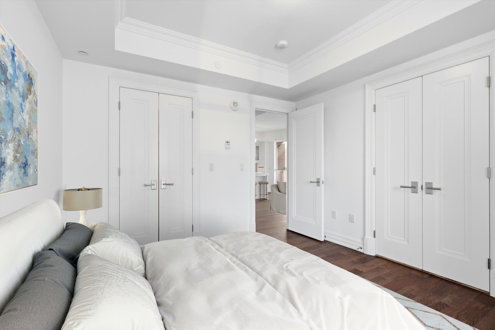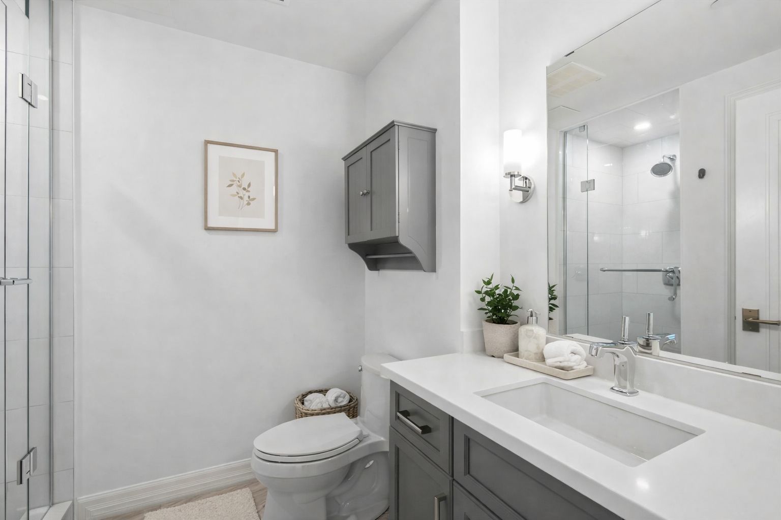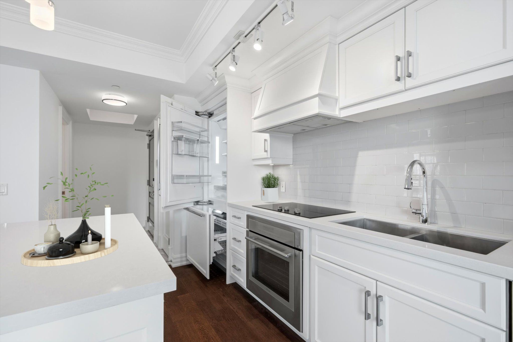 • Luxurious finishes include quartz countertops and engineered hardwood flooring.