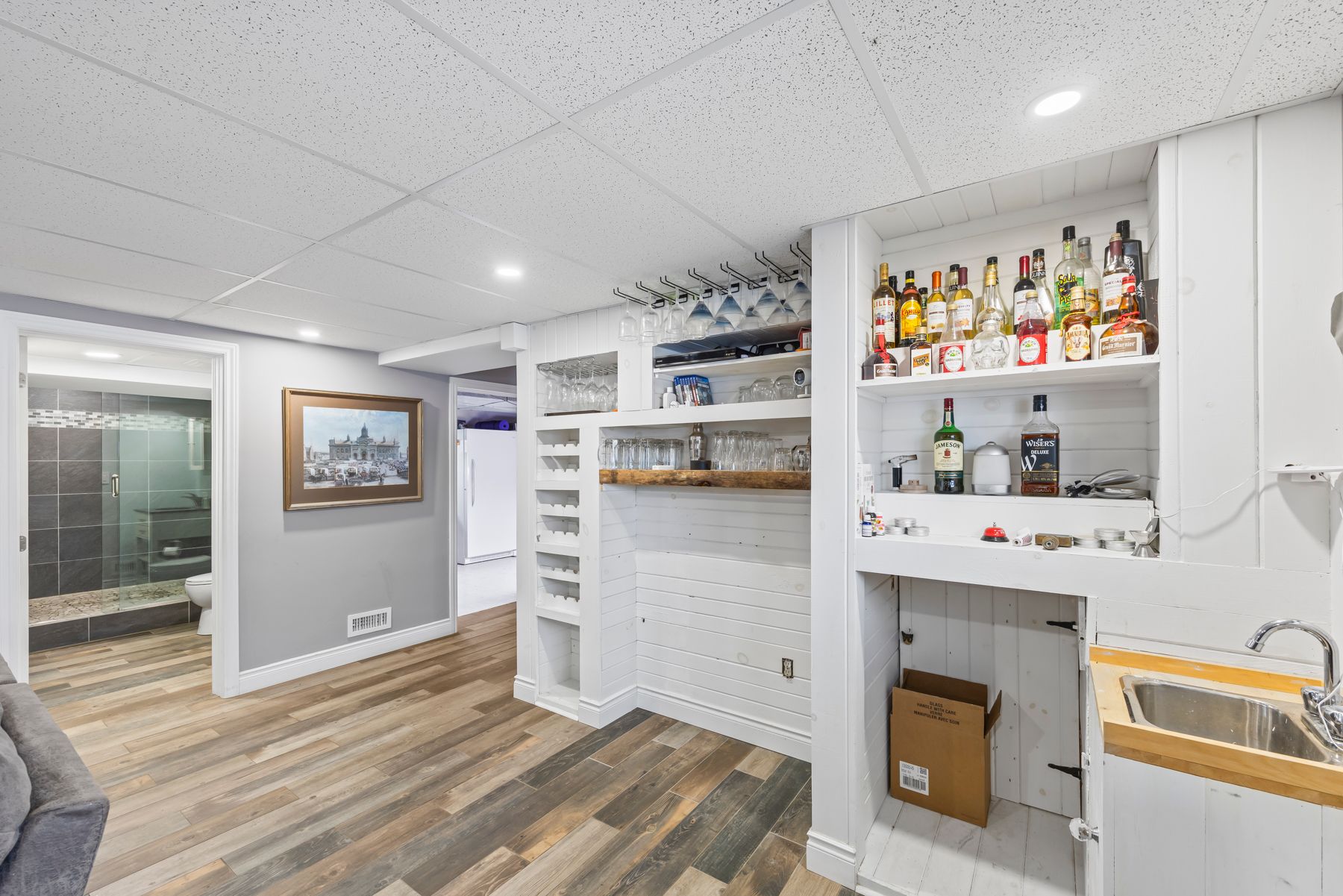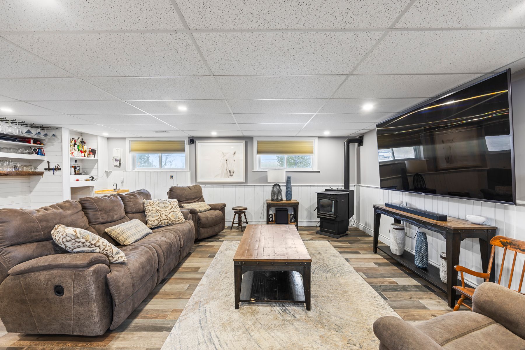 • Finished basement includes rec room, laundry, and versatile flex space.
