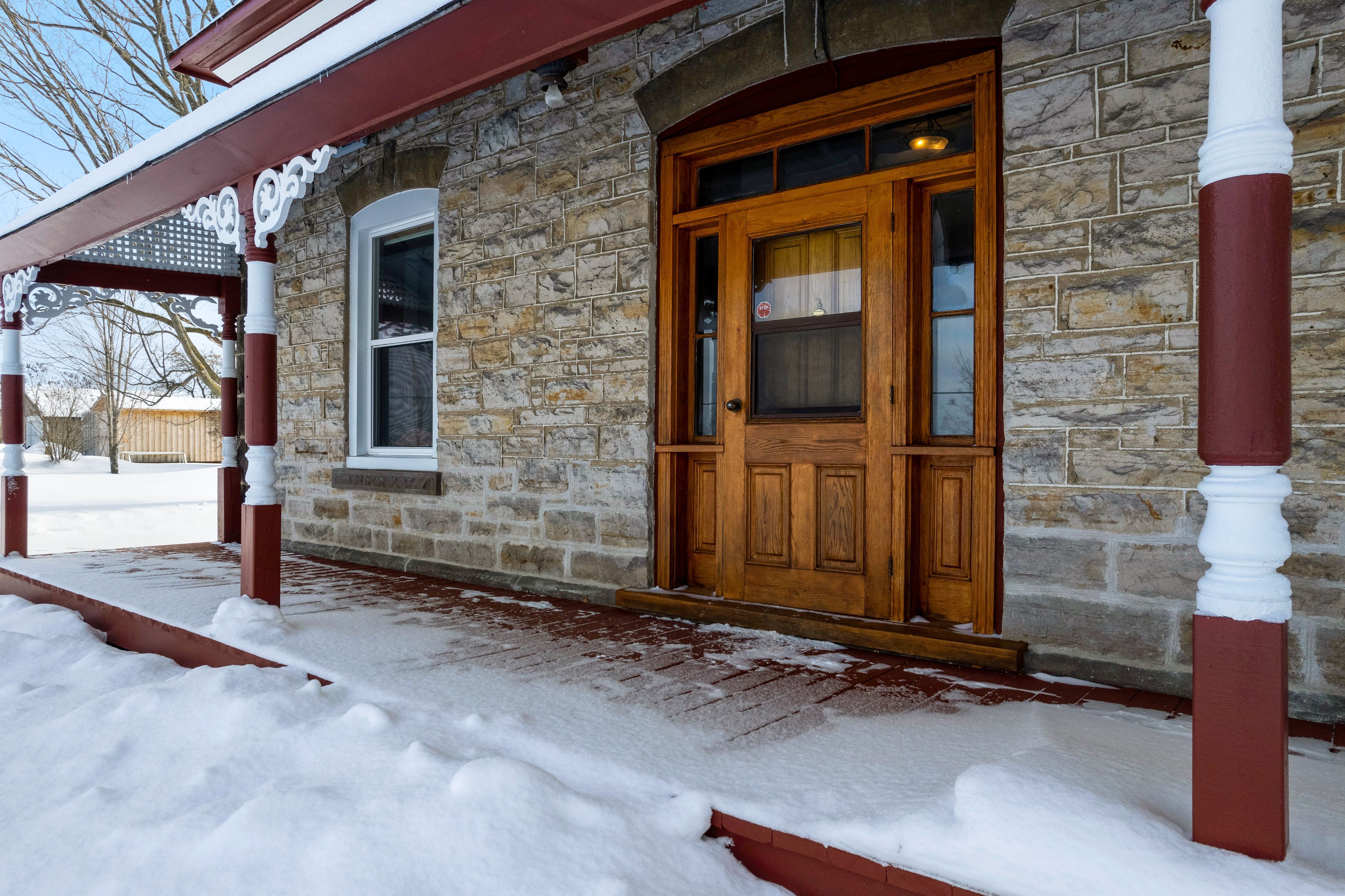 • Charming century stone home with attractive quoin corners and gingerbread trim.