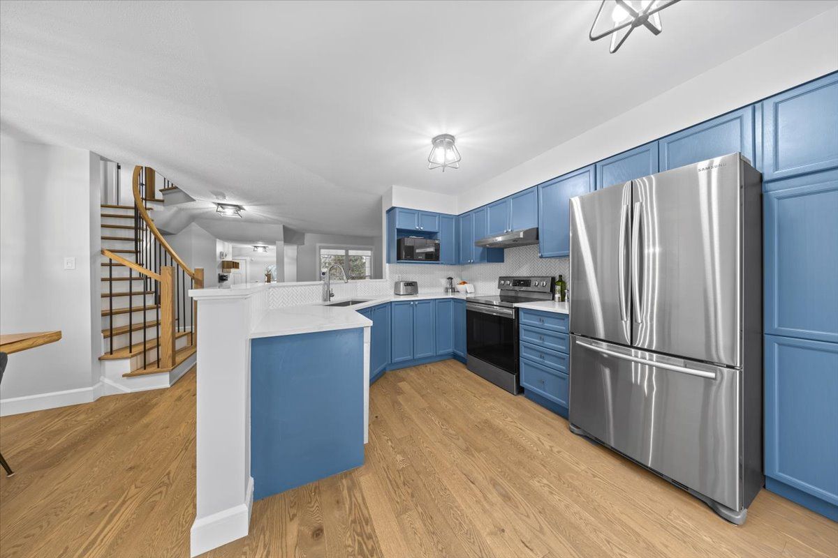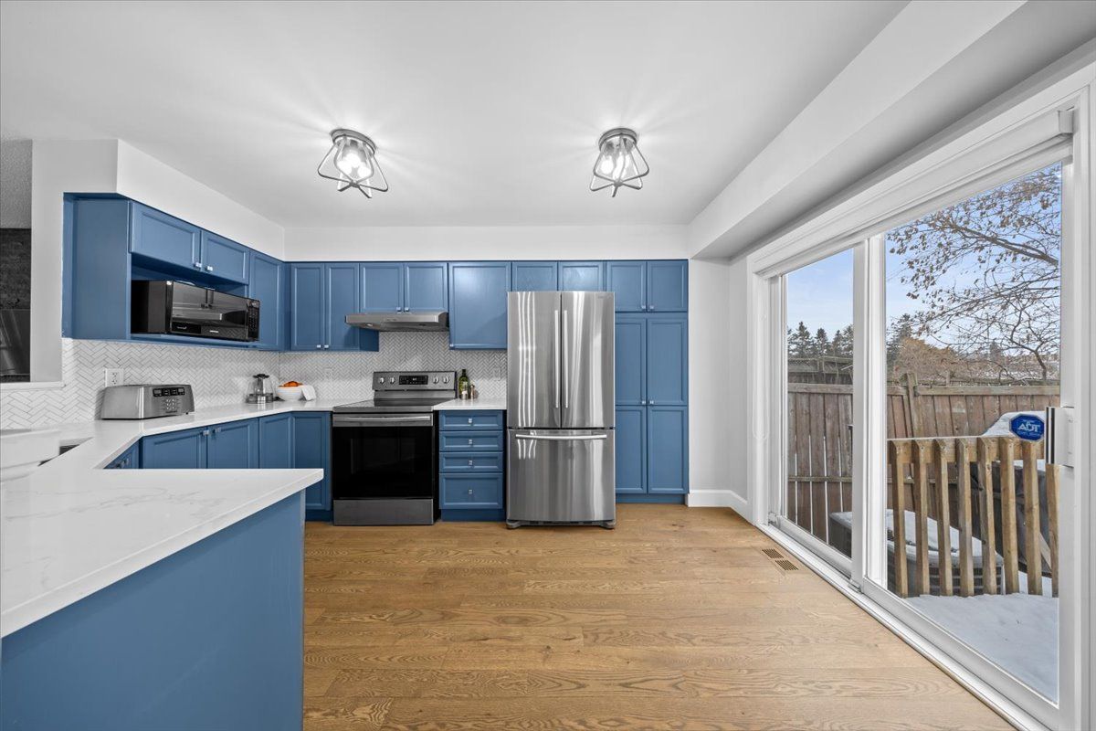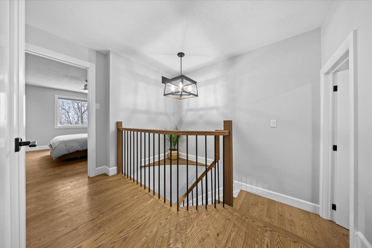 Beautifully renovated 3-bedroom home in breezewood - modern luxury throughoutwelcome to this stunning, fully renovated 3-bedroom home in the desirable breezewood community. Built in 2004 and upgraded with high-end finishes in 2020, this property offers the feel of a new-build home without the new-build price tag. The main level features a bright open-concept layout with 4" solid wide-plank red oak hardwood, custom trim work, solid core interior doors, updated lighting, and a modern curved staircase with wrought-iron spindles. The living room showcases a custom fireplace with a natural quartz stone surround, a cultured stone backdrop, and a white oak mantel with floating shelves. The chef-inspired kitchen includes quartz countertops, soft-close cabinetry, stainless steel appliances (2020), tile backsplash, and a deep stainless steel undermount sink. Patio doors open to a fully fenced backyard with no rear neighbours, a large deck, and a peaceful, treed setting. Upstairs, you'll find three generous bedrooms, including a spacious primary suite with a walk-in closet, a feature wall, and a luxurious ensuite complete with heated floors, dual sinks, porcelain tile, a walnut vanity with quartz top, and a custom walk-in shower. The updated 4-piece main bathroom also features modern porcelain tile. The third bedroom offers beautiful vaulted ceilings. The finished lower level includes engineered white oak hardwood, a custom bar nook, a laundry room, and a rough-in for a future bathroom. Major updates include: roof (2019), furnace (2018), hot water tank (2021), appliances (2020), attic insulation r60 (2023), and new interlock (2025). Located close to schools, parks, recreation, grocery stores, restaurants, and public transit. A beautifully crafted home in an outstanding community-move in and enjoy.