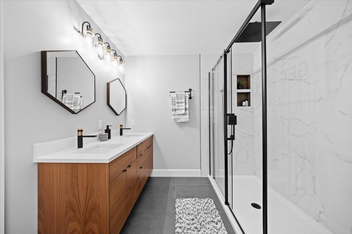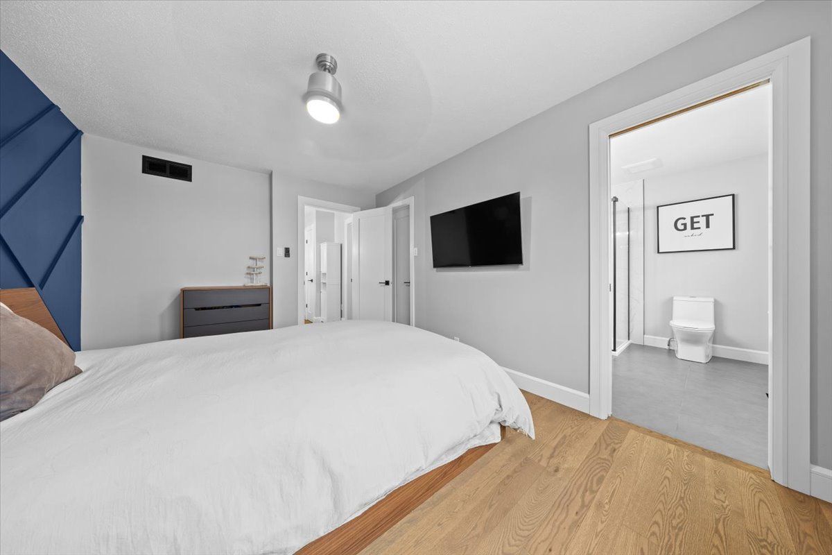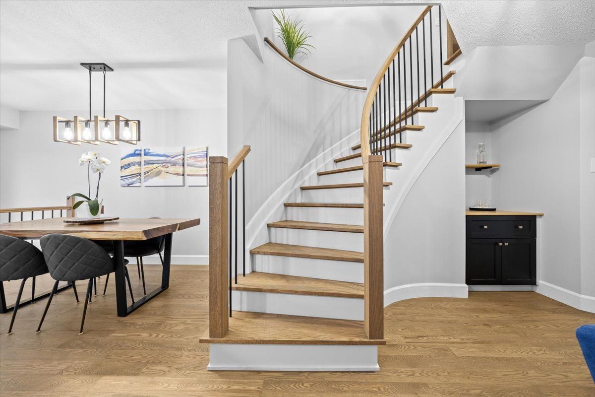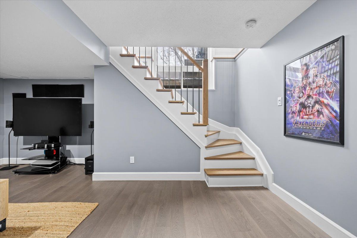 Beautifully renovated 3-bedroom home in breezewood - modern luxury throughoutwelcome to this stunning, fully renovated 3-bedroom home in the desirable breezewood community. Built in 2004 and upgraded with high-end finishes in 2020, this property offers the feel of a new-build home without the new-build price tag. The main level features a bright open-concept layout with 4" solid wide-plank red oak hardwood, custom trim work, solid core interior doors, updated lighting, and a modern curved staircase with wrought-iron spindles. The living room showcases a custom fireplace with a natural quartz stone surround, a cultured stone backdrop, and a white oak mantel with floating shelves. The chef-inspired kitchen includes quartz countertops, soft-close cabinetry, stainless steel appliances (2020), tile backsplash, and a deep stainless steel undermount sink. Patio doors open to a fully fenced backyard with no rear neighbours, a large deck, and a peaceful, treed setting. Upstairs, you'll find three generous bedrooms, including a spacious primary suite with a walk-in closet, a feature wall, and a luxurious ensuite complete with heated floors, dual sinks, porcelain tile, a walnut vanity with quartz top, and a custom walk-in shower. The updated 4-piece main bathroom also features modern porcelain tile. The third bedroom offers beautiful vaulted ceilings. The finished lower level includes engineered white oak hardwood, a custom bar nook, a laundry room, and a rough-in for a future bathroom. Major updates include: roof (2019), furnace (2018), hot water tank (2021), appliances (2020), attic insulation r60 (2023), and new interlock (2025). Located close to schools, parks, recreation, grocery stores, restaurants, and public transit. A beautifully crafted home in an outstanding community-move in and enjoy.