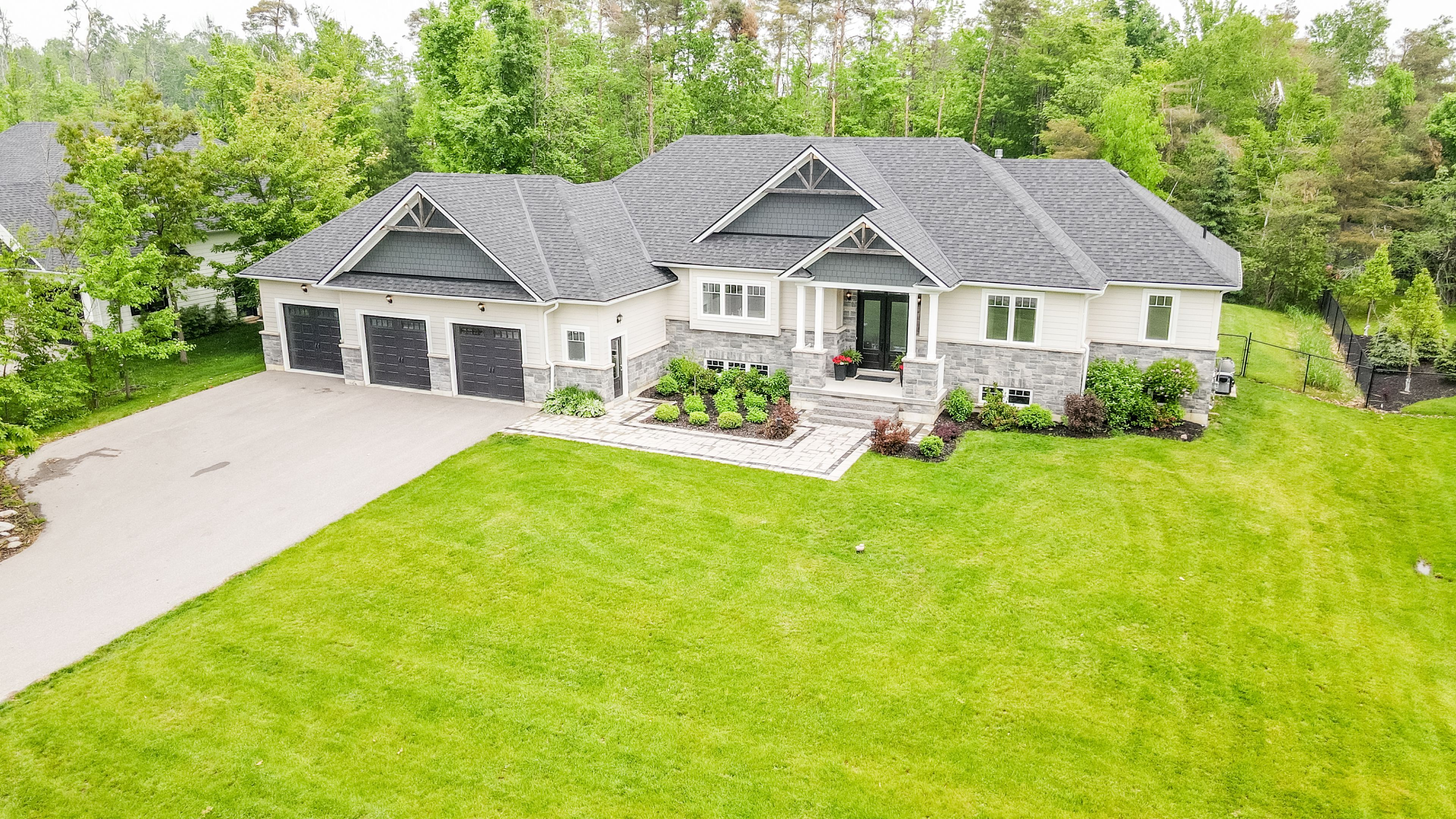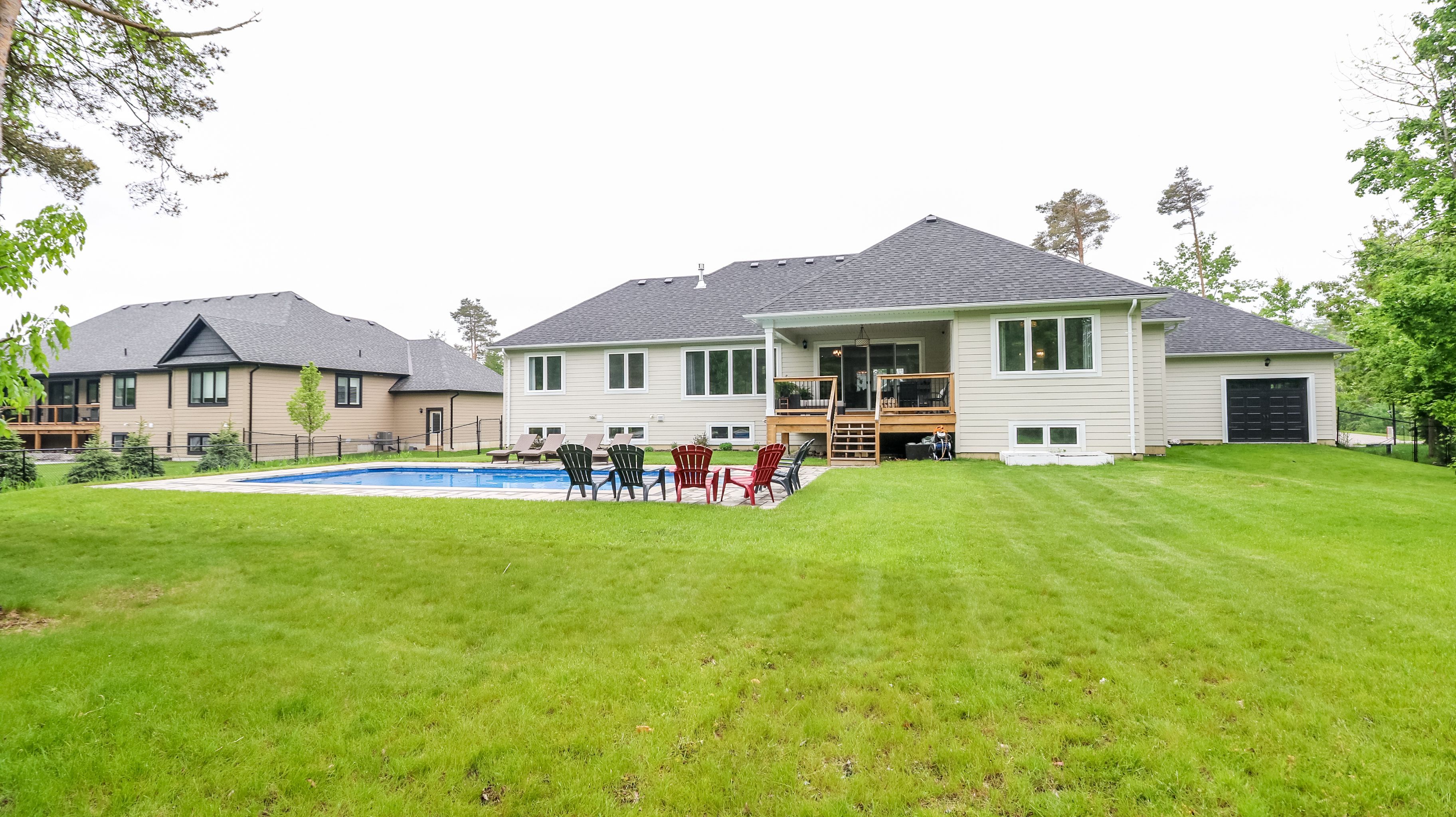 Welcome to this spotless 4 bedroom raised bungalow in an exclusive family friendly neighbourhood just minutes outside of orillia! Close to all amenities and shopping in westridge, easy access to hwy 11 and close to lots of nature including bass lake provincial park! With stunning curb appeal this custom built home boasts with pride. The grand entrance filled with light, welcomes you to your open concept living room with gas fireplace, dining room and beautiful kitchen with an extra large island.... Perfect for entertaining! The patio doors lead out to your covered deck and out to your fully fenced backyard with your 16x32 inground salt water pool! The main floor continues with your primary suite with walk-in closet, spa-like bathroom with glass shower and freestanding bathtub.... Plus your own private door to the deck! The 3 other nice sized bedrooms are located separately with their own shared bathroom! The main floor is completed with a large pantry, powder room and laundry room... Plus inside entry to your huge 3 car garage... 1240 sq ft with a garage door that leads to your backyard plus separate entrance stairs to your basement!! The basement is all framed in awaiting your finishing touches! Show with confidence as this home has everything you will need!