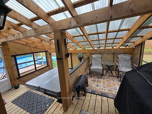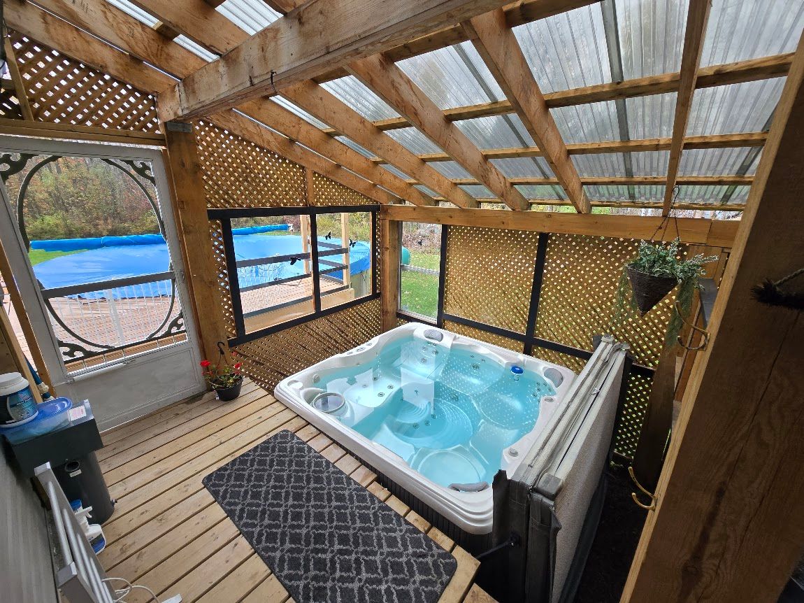 • Enclosed porch featuring a hot tub for year-round relaxation.