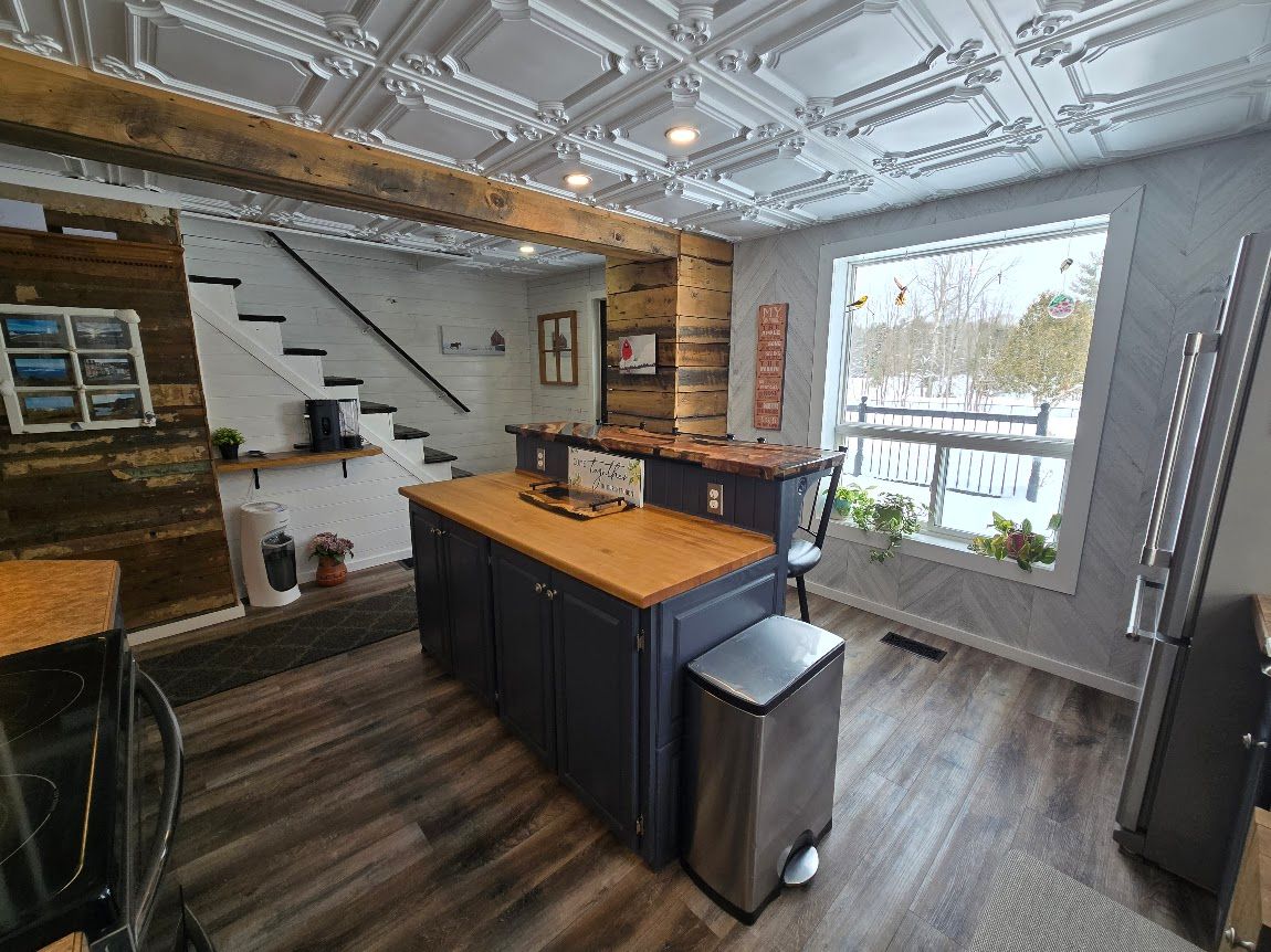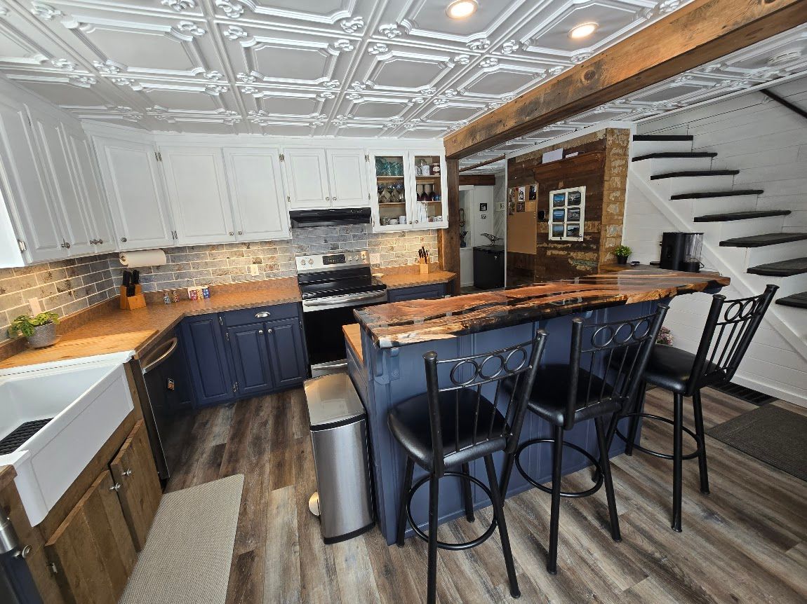 • Updated kitchen with unique epoxy island countertop for cooking enthusiasts.