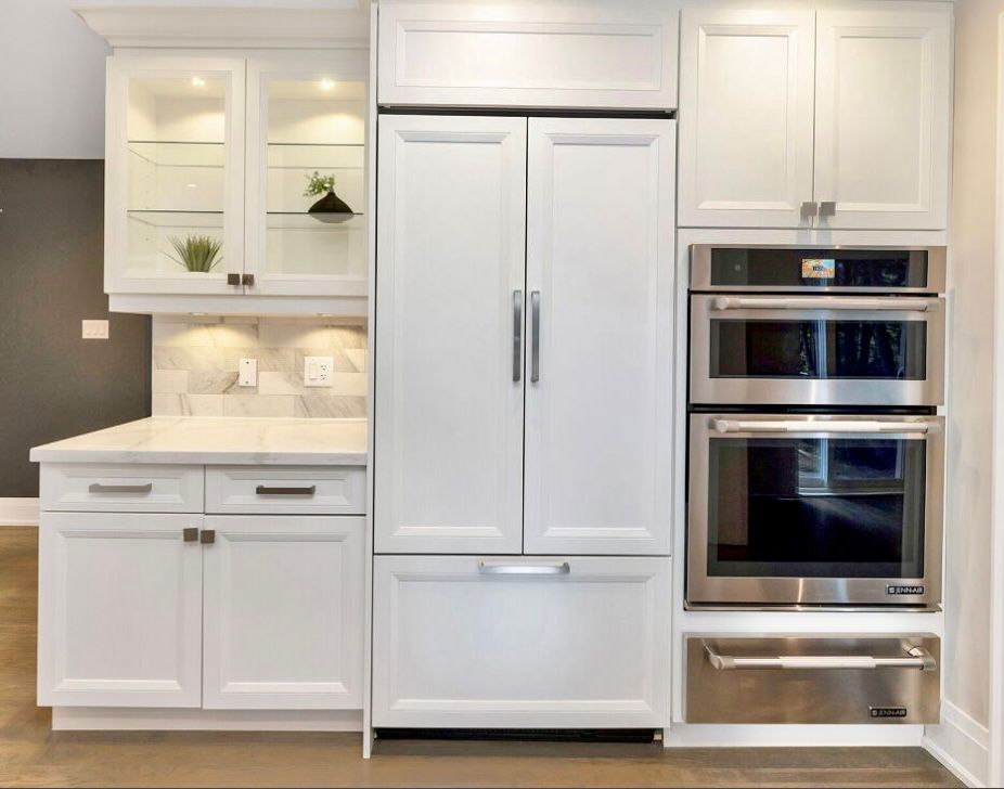 • Custom chef's kitchen with quartz countertops and premium JennAir appliances.