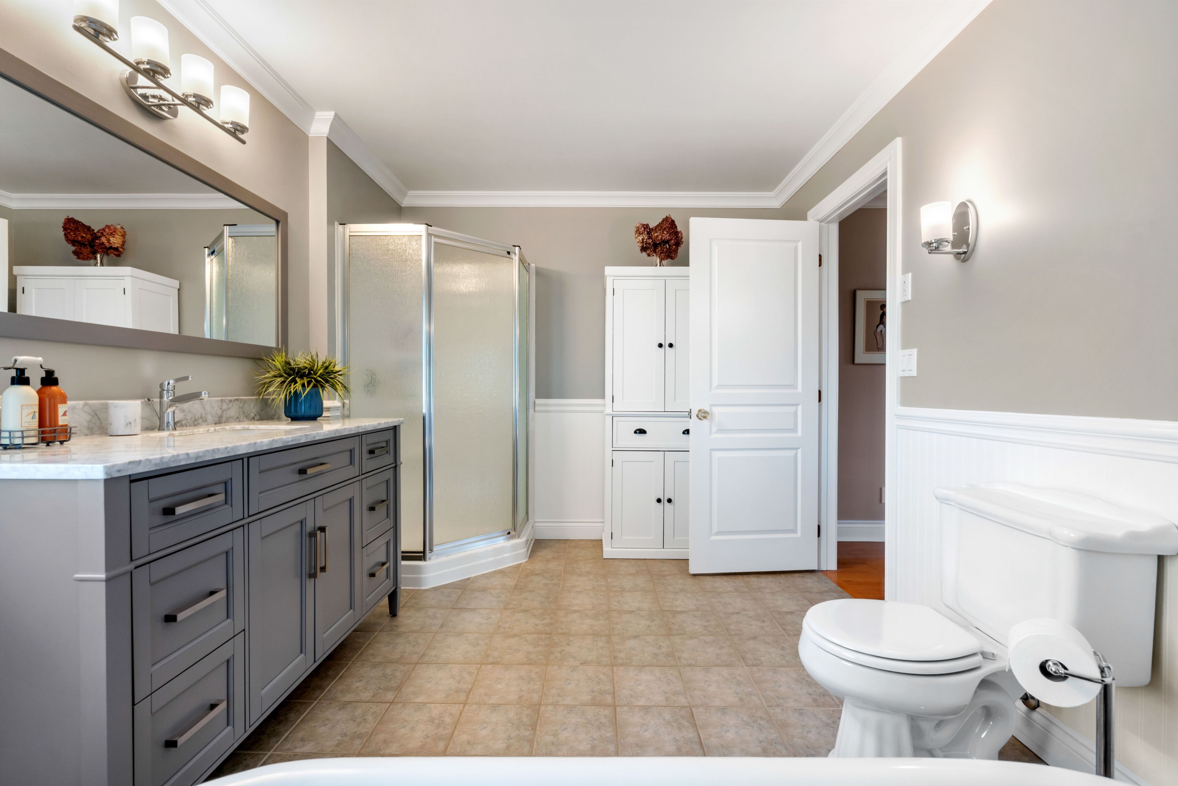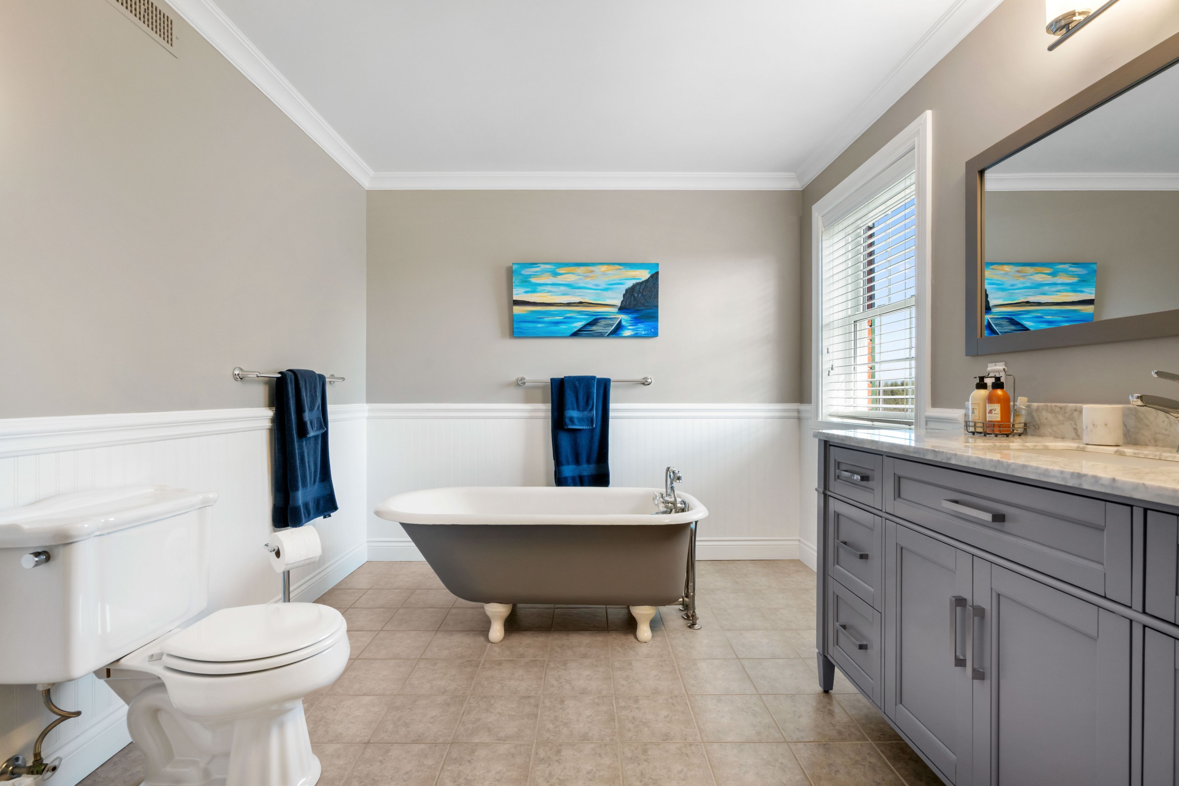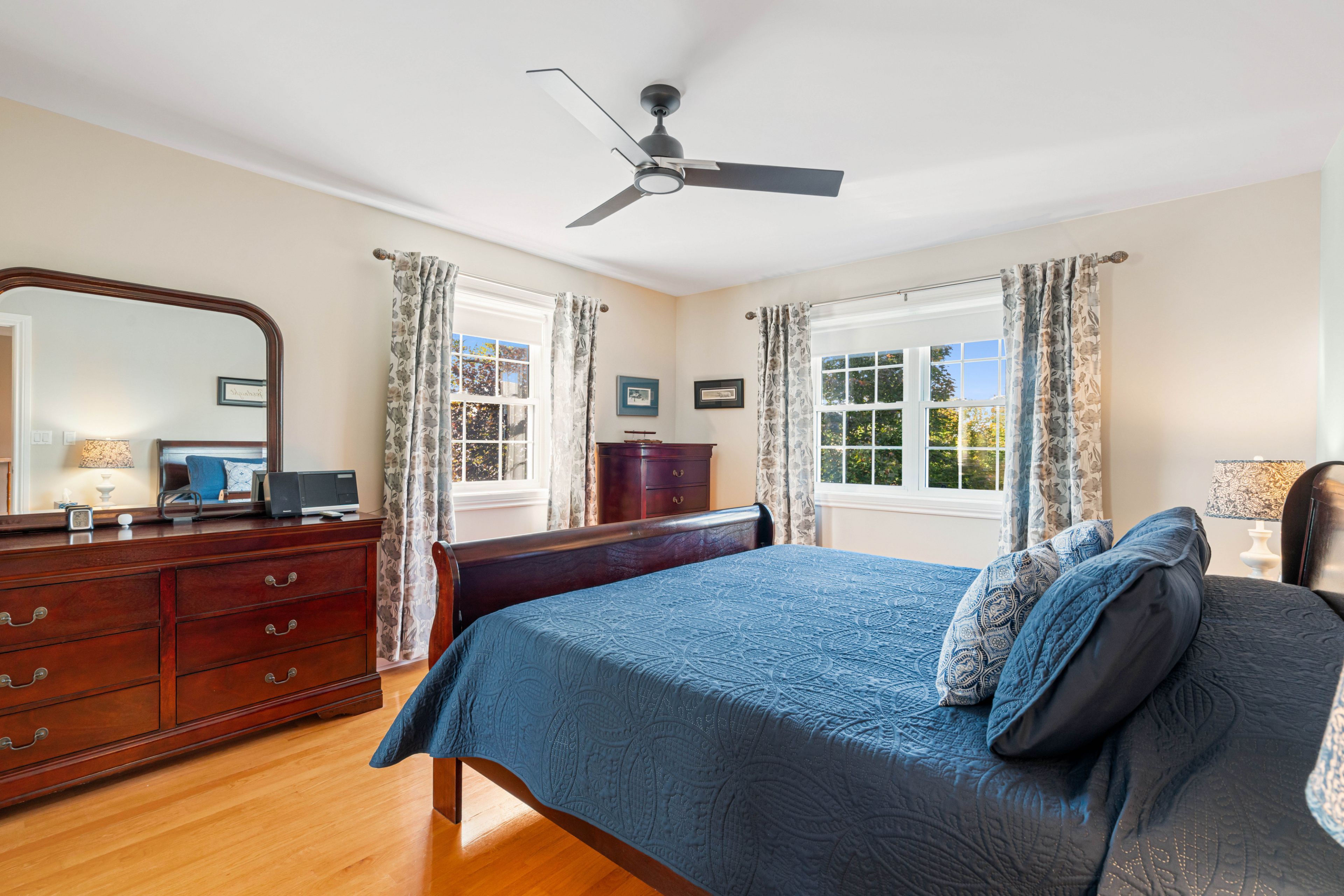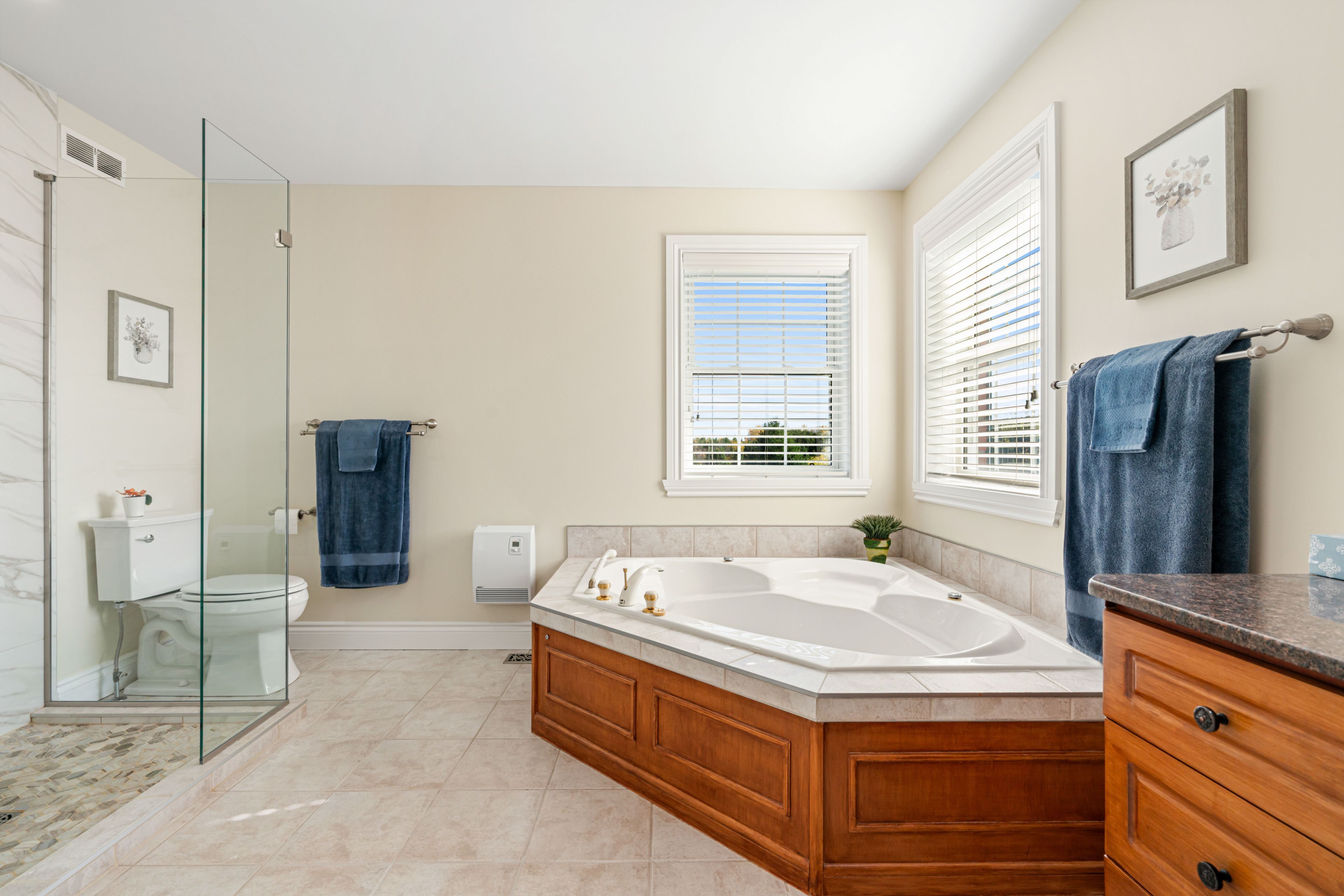 • Three spacious bedrooms with walk-in closets and two full bathrooms.