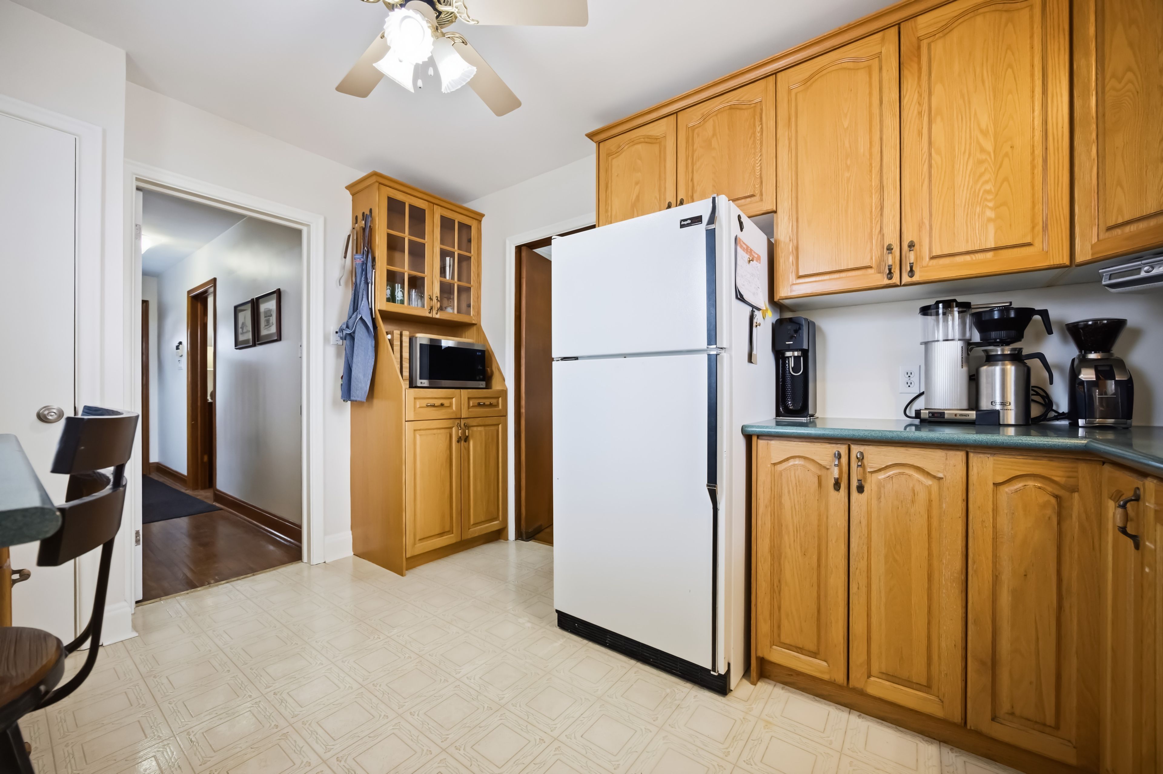 • Cook's kitchen features dual fuel stove and convenient extra receptacles.