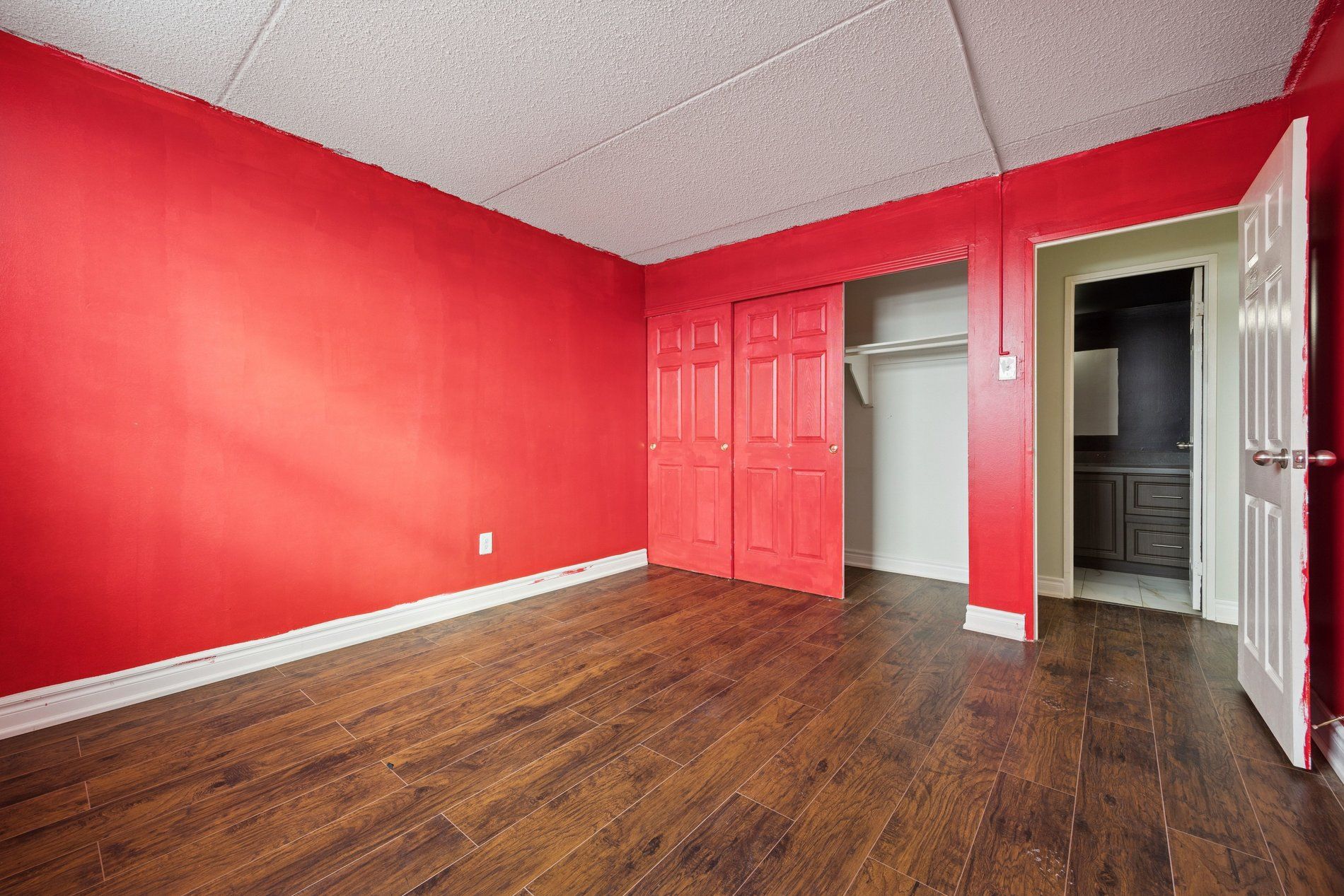 • Laminate flooring and quartz countertops enhance the stylish interiors.