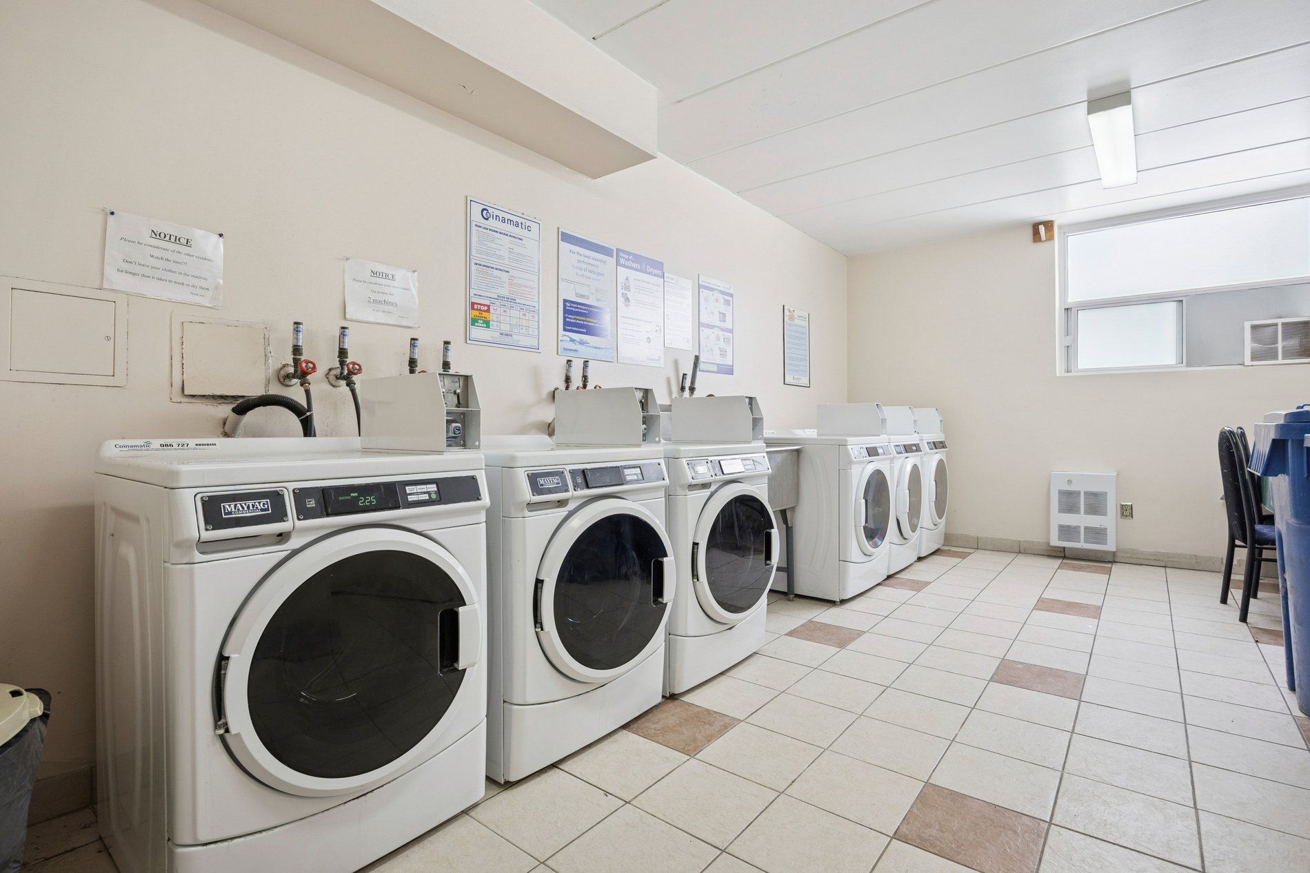 • Building includes ground-level laundry for convenience.