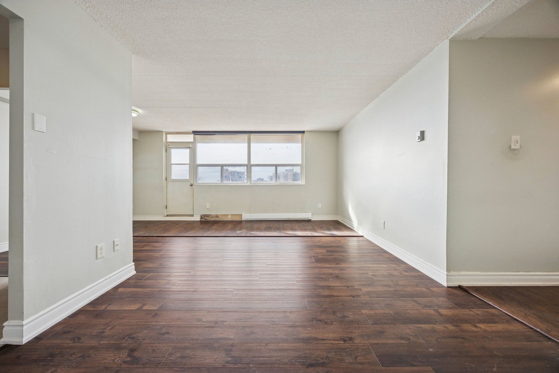 • Open-concept living and dining areas lead to a large private balcony.