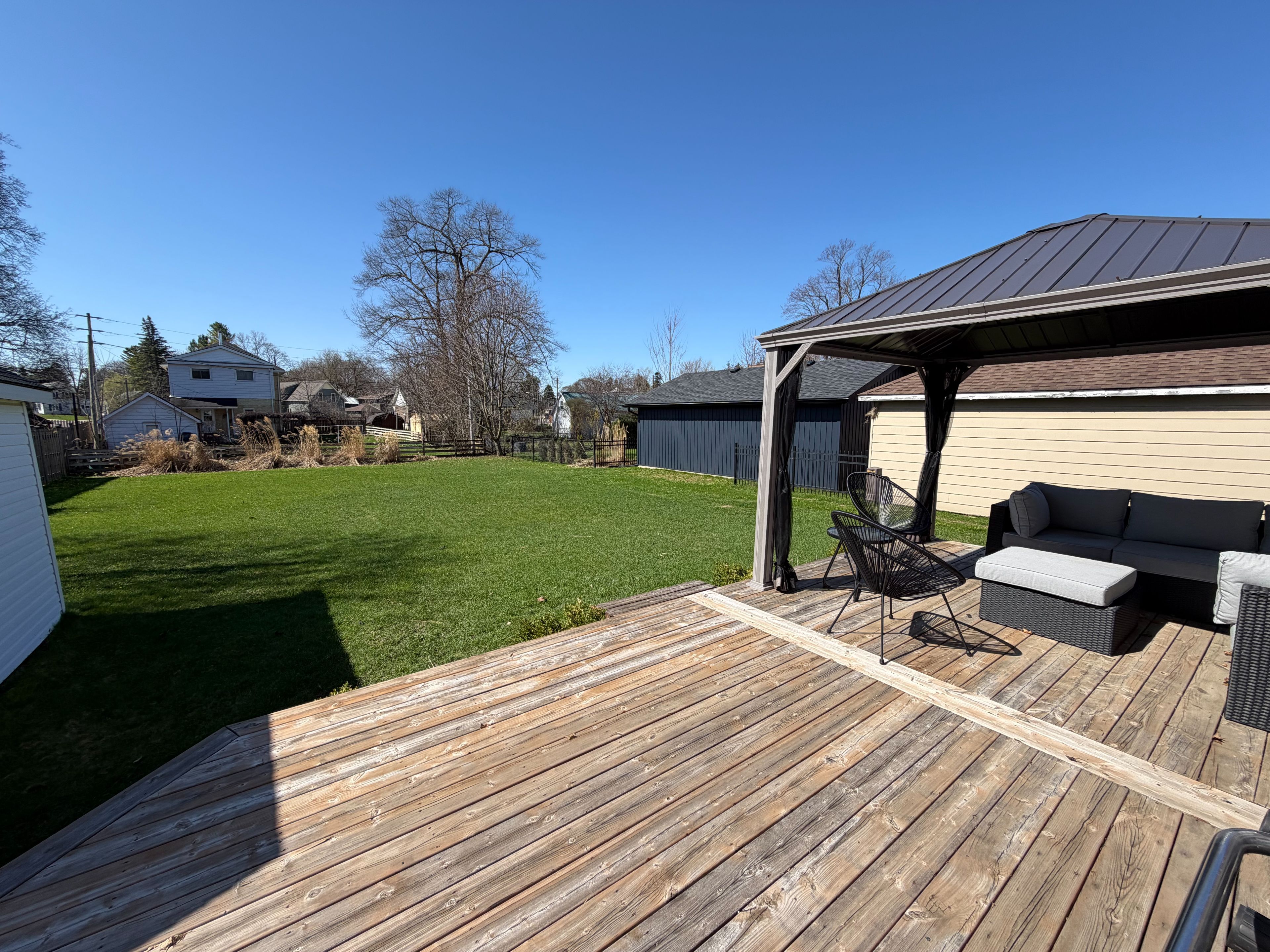 • Spacious yard with a newer deck and gazebo for outdoor fun.