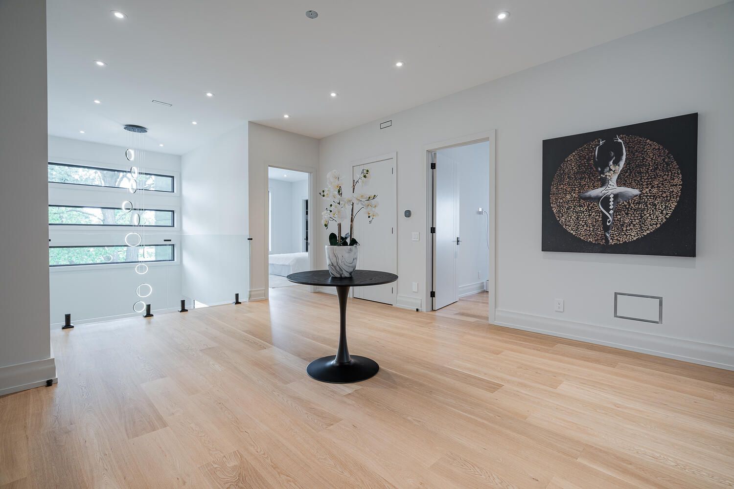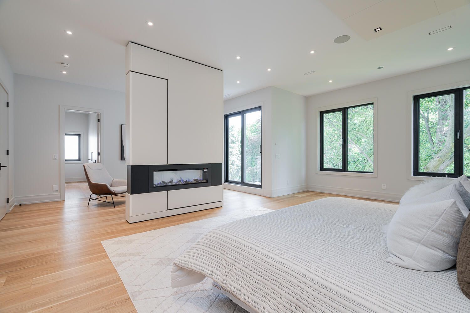 A brand new house that redefines luxury living in newtonbrook east. Prepare to be swept off your feet by this showstopping, designer finished residence in one of the most coveted neighbourhoods with spanning over 6500 sqft of flawless floorplans (bsmnt area included). This contemporary architectural gem blends sophistication, comfort and functionality. This home offers privacy and serene, uninterrupted views from the moment you arrive-greeted by its striking modern facade and elegant flagstone steps. Inside you will find an expansive, light-filled layout w/soaring ~11' ceilings on main plus 10' ceilings upstairs and ~9' in basement, offering a grand, airy feel. Natural hardwood floors on main & 2nd & designer finishes and elegance to every space. The chef-inspired kitchen features natural c/t, outfitted with miele appliances, custom cabinetry, oversized island &huge eat-in area and open-concepted family area, anchored by a gas fireplace, is flooded with natural light from enormous window & glass door that overlook the lush backyard oasis creating a perfect setting for everyday living & entertaining. Versatile main floor office provides a quiet, sophisticated workshop ideal for all kinds of professionals. The serene, oversized primary bedroom is a peaceful retreat, featuring abundant light, 10' ceilings, luxurious 5 pcs ensuite & generous w/i closet and lovely lounge with electrical fireplace. There are 3 ensuite bedrooms with lavish baths and laundry room in 2nd floor that is powered by a separate heating and cooling system. Heated floor basement with a huge wet bar and steam fireplace, heated w/o to backyard. A high-quality elevator ensures smooth and convenient access between the floors of this building. This home is a statement of style, quality & international design. Property taxes have not been assessed yet as it a brand-new property.