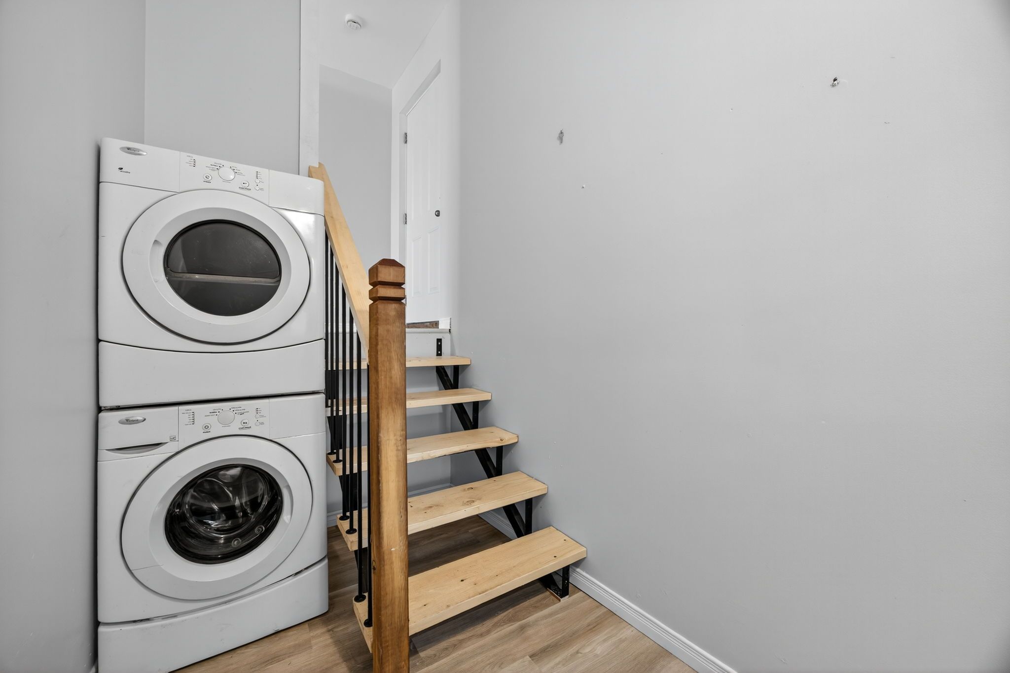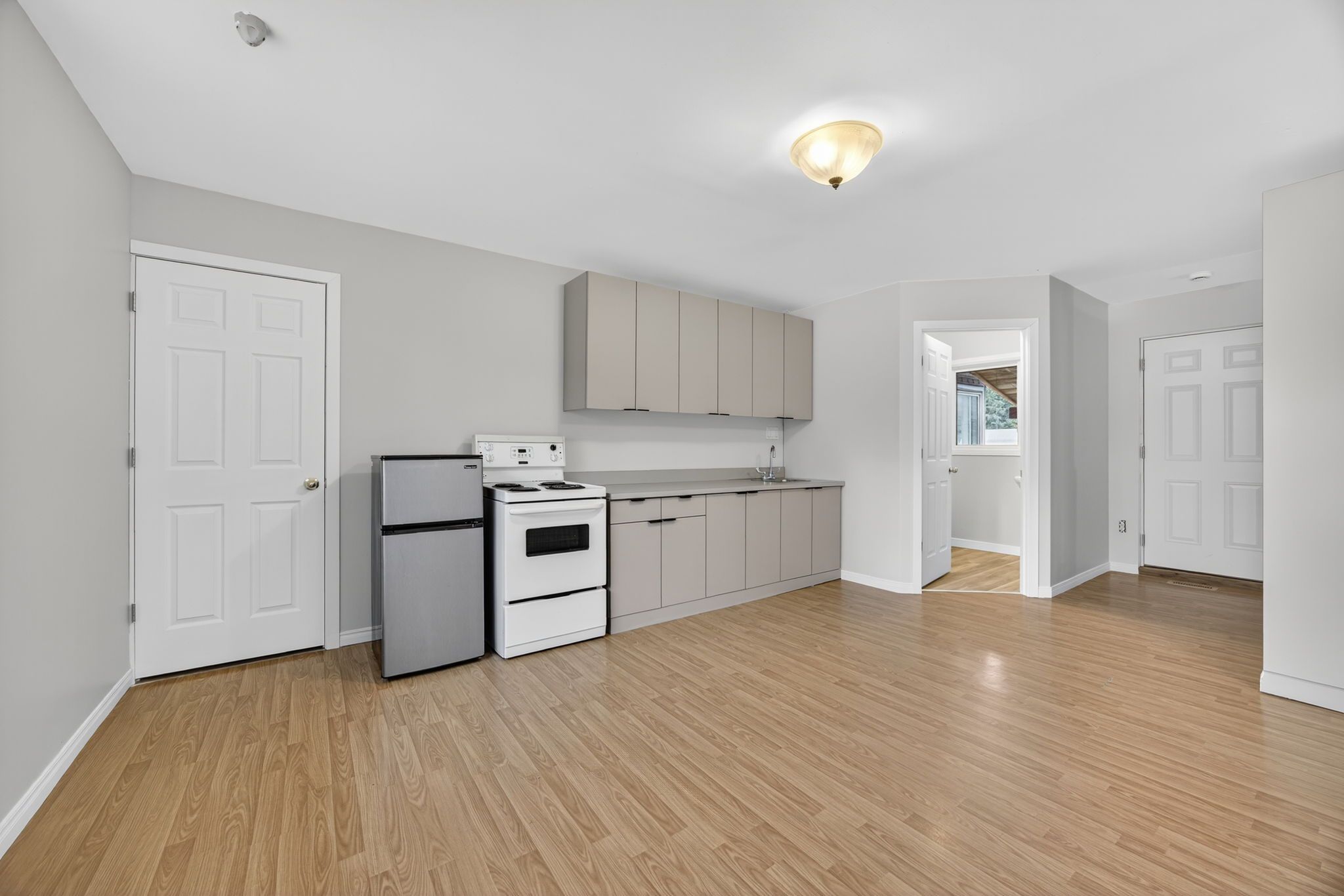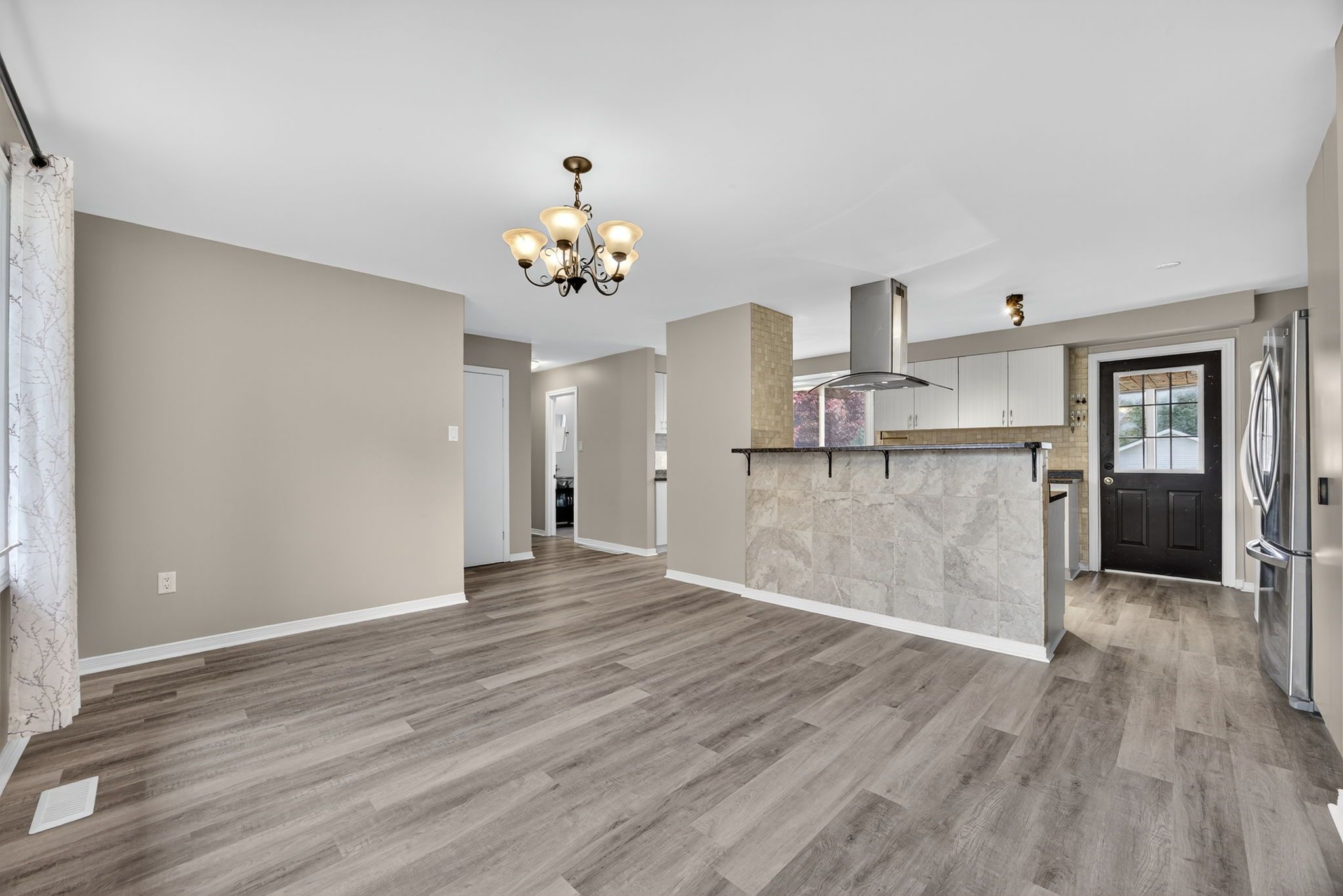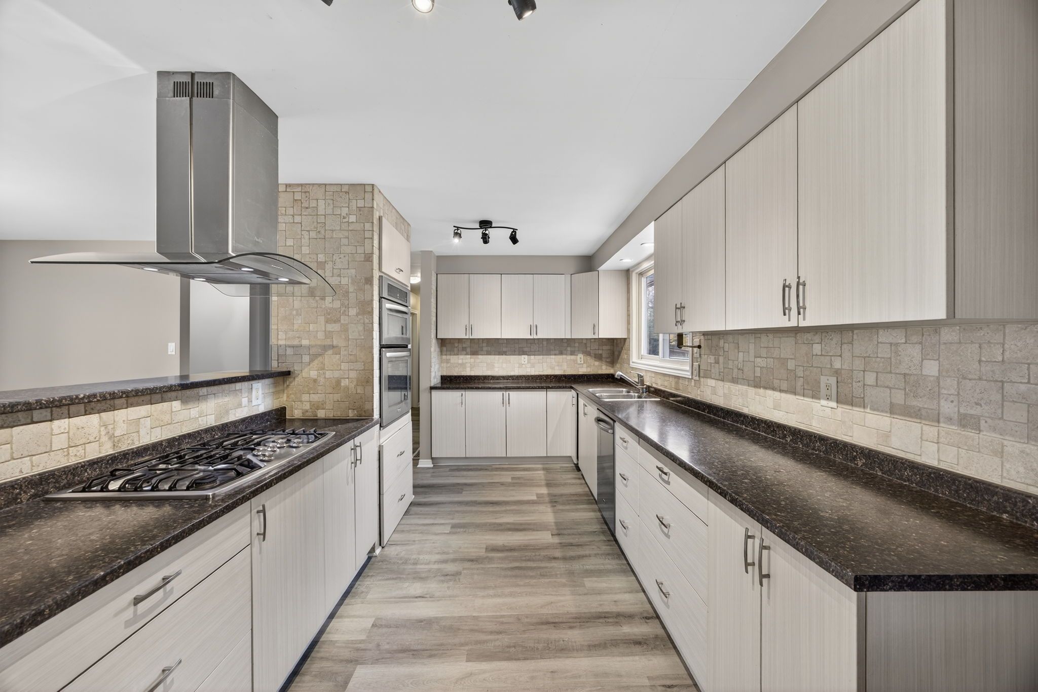 • Updated kitchen equipped with modern appliances and breakfast bar.