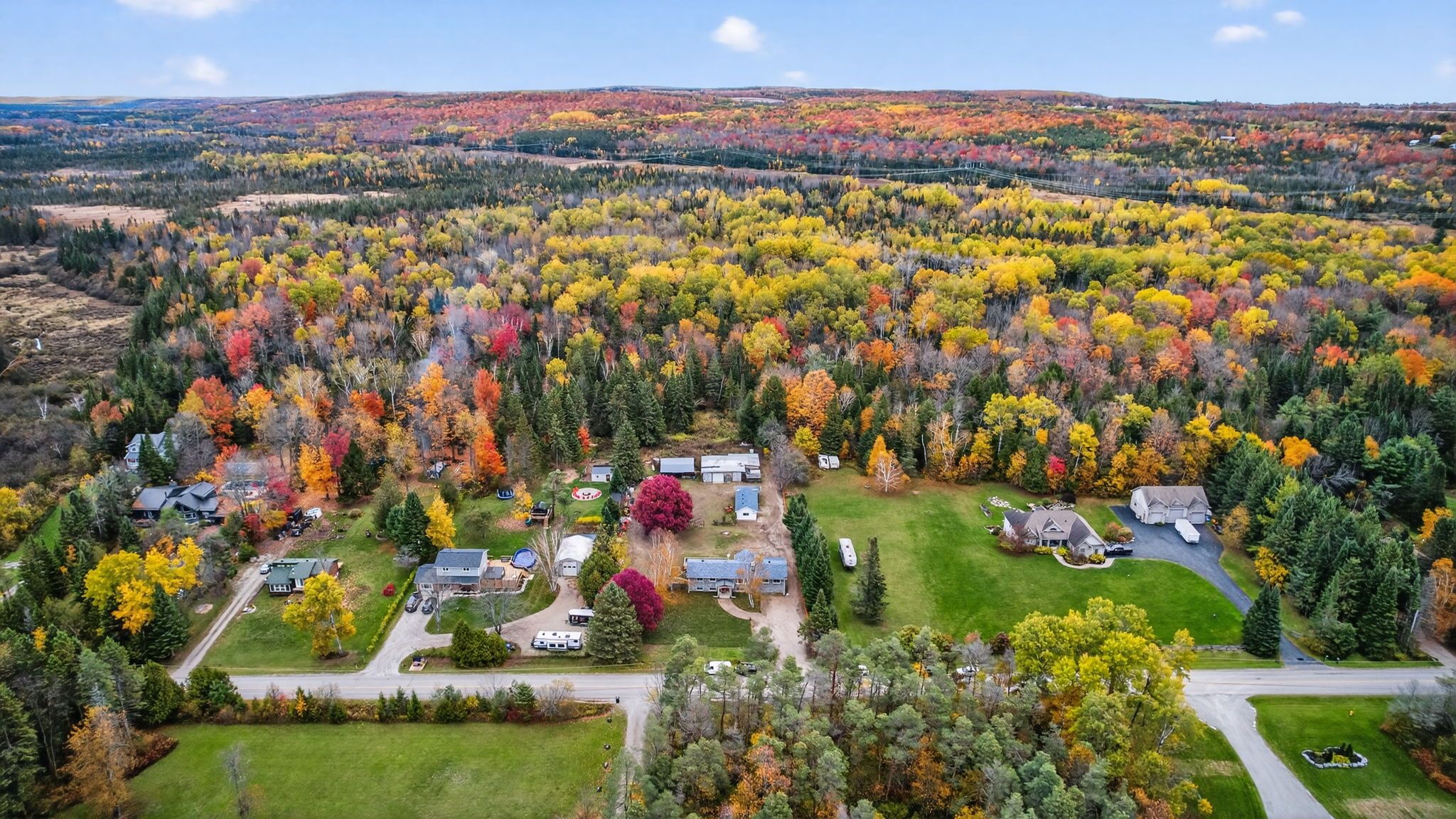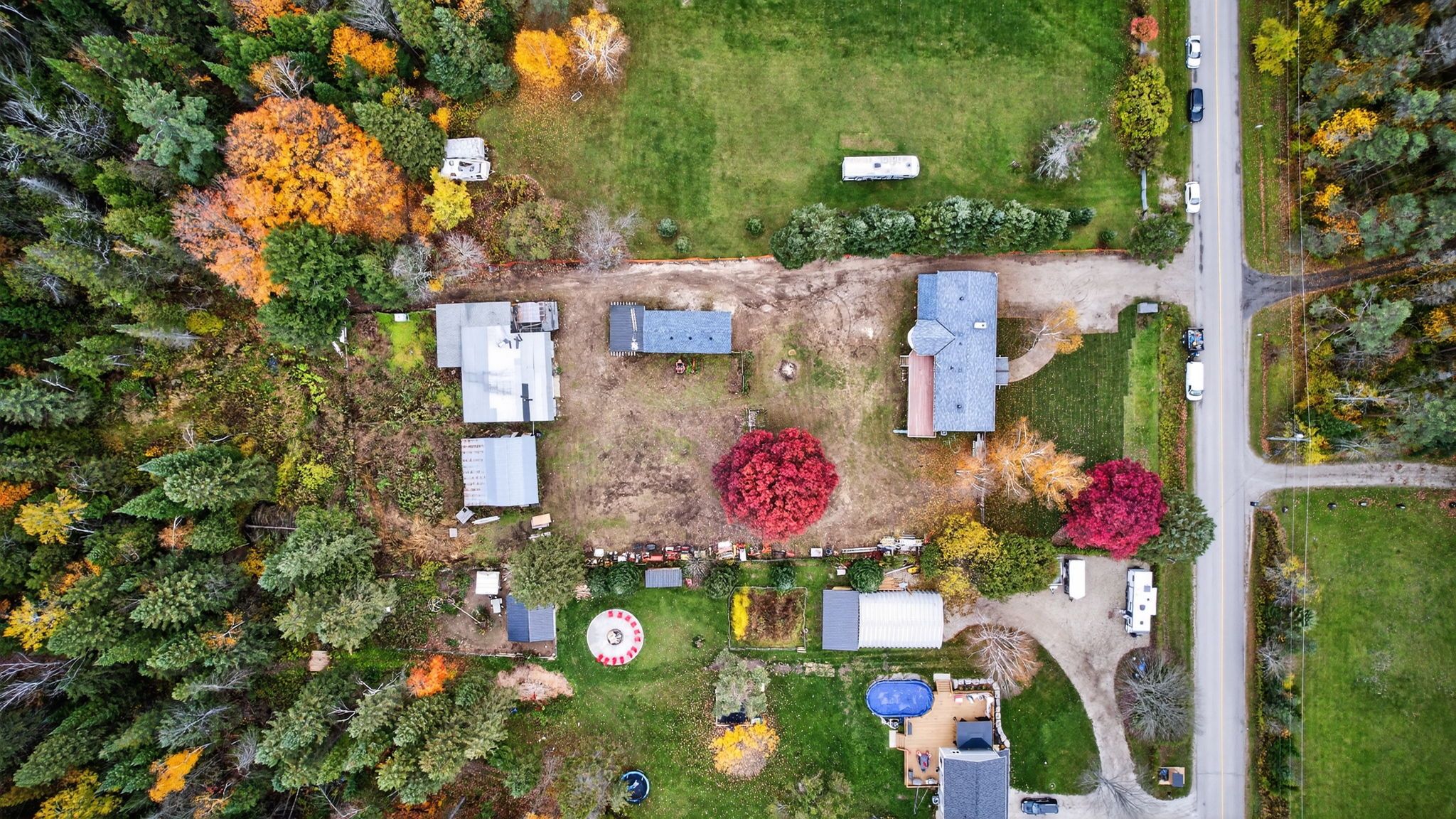 • Multiple outbuildings including a barn, workshop, and chicken coop.