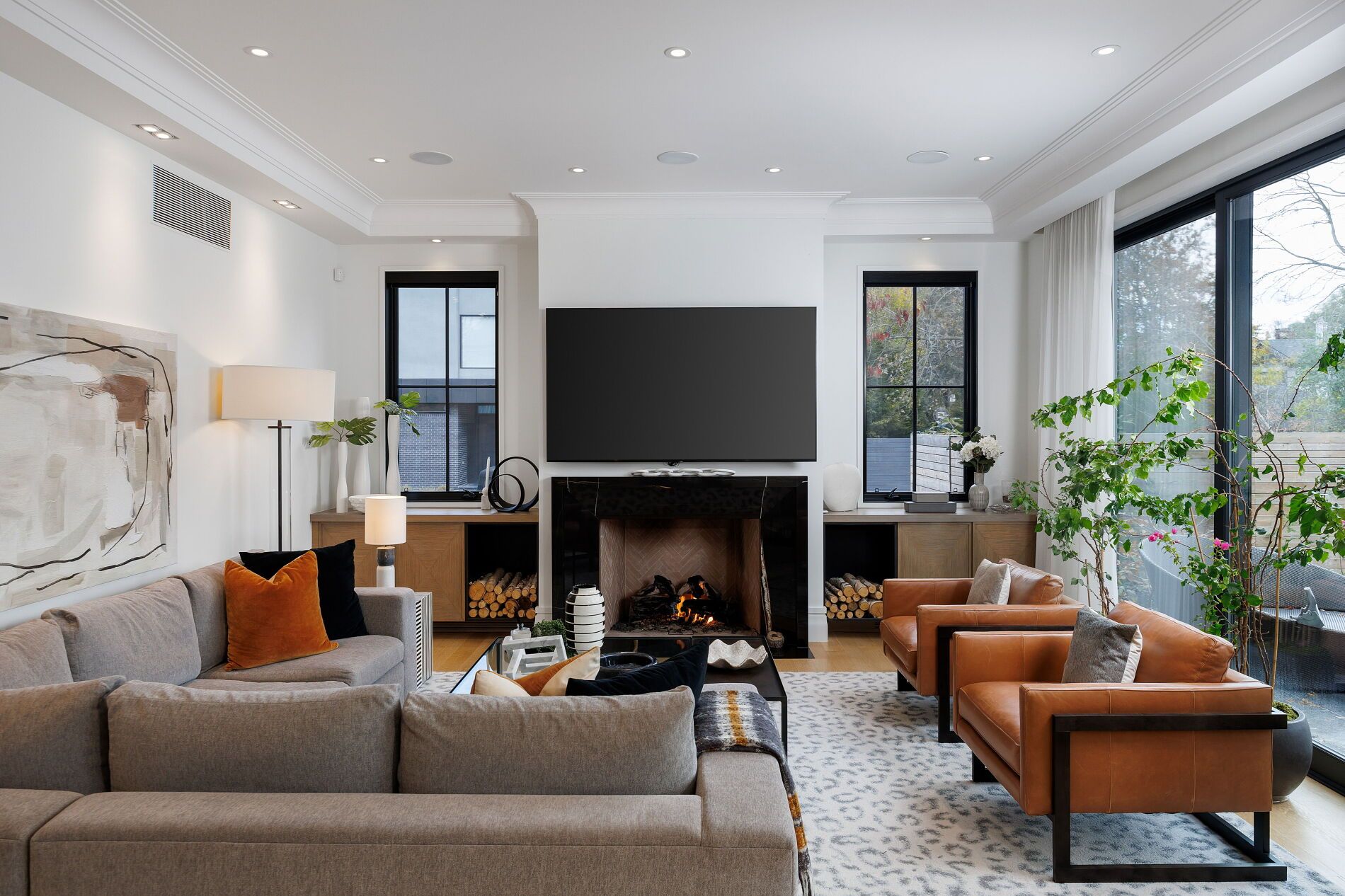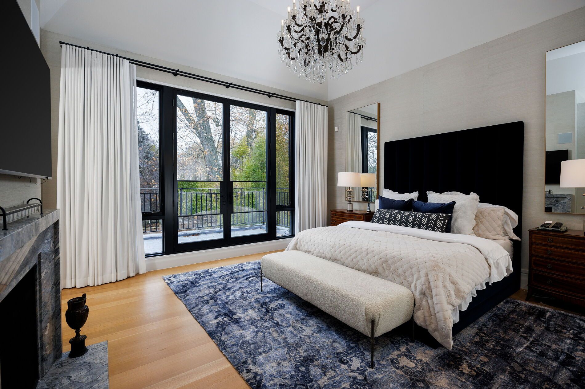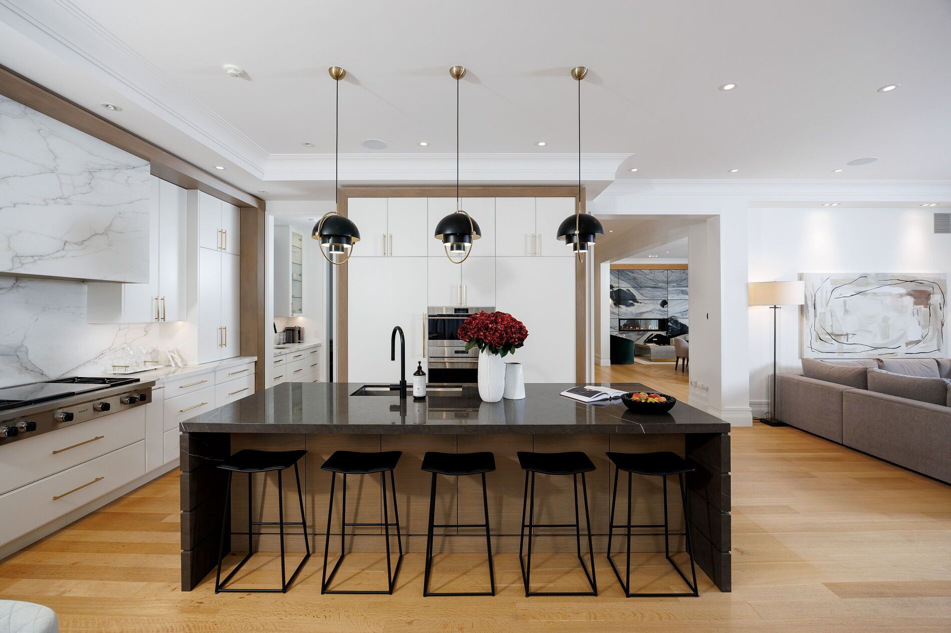 Nestled on a quiet, tree-lined street in lytton park, 207 strathallan blvd is a bespoke 5+ bedroom residence offering over 6,500 sq. Ft. Of elegantly crafted total living space. Built in 2019 by teddington homes & realized with uncompromising craftsmanship & a refined palette of luxury materials, the home was conceived under the architectural direction of limor benmor-mizrahi (formerly of peter higgins architect) & finished with interiors by debra salmoni, embodying a balance of modern sophistication & enduring comfort. A monumental front door opens into a refined foyer with a custom marble-inlay floor. A powder room is conveniently located off the foyer, across from the executive office. White oak & heated stone flooring, soaring ceilings & abundant natural light create an atmosphere of calm refinement. At the front, the executive office is anchored by a sleek see-through gas fireplace that also serves the open-concept formal living & dining areas, where french doors walk out to a flagstone terrace. The centre hall leads into the sun-filled family room with floor-to-ceiling windows & oversized sliders extending the space to the backyard. The south-facing breakfast area enjoys another walk-out. The kitchen, both a design statement & a culinary workspace, features integrated pro-grade appliances, custom bellini cabinetry, marble countertops & backsplash, an oversized limestone island with seating, extended-height cabinetry & a fully outfitted butler's pantry with access to the mudroom & garage. Upstairs, the primary suite is a private retreat with a gas fireplace, balcony, soaring ceiling & spa-inspired 5pc ensuite. Three additional bedrooms each offer a private ensuite & custom walk-in closet. The 3rd level provides a flexible 5th bedroom suite with a 3pc ensuite & balcony. The lower level features a large entertainment room with kitchenette & walkup, a glass-enclosed fitness studio, a 6th bedroom with 3pc ensuite, the main laundry room, a 2pc bath & a cold room.