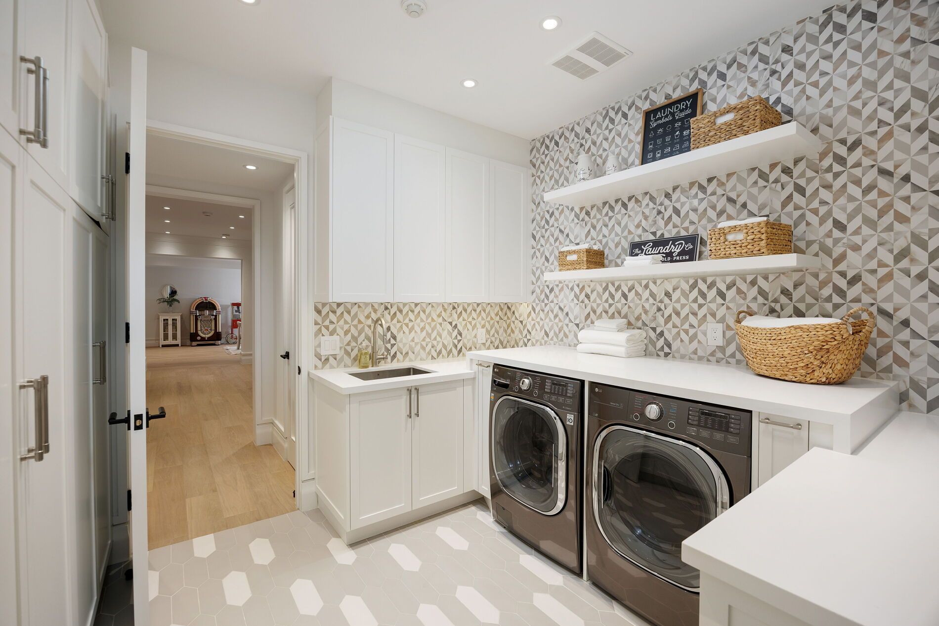 • Spacious family room with floor-to-ceiling windows and backyard access.