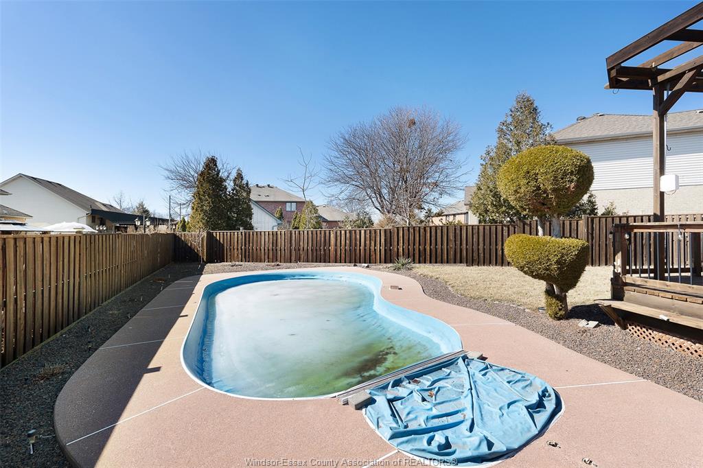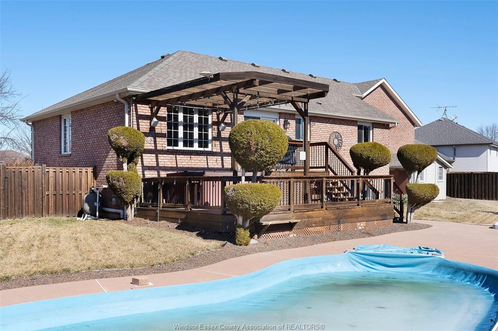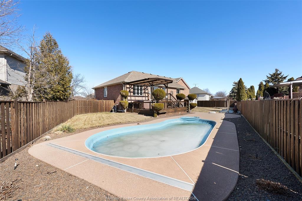 • Resort-style backyard with a fenced yard, deck, and inground pool.