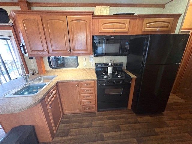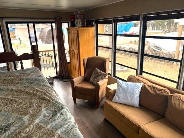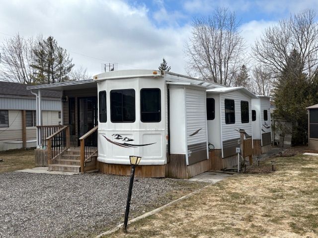 Welcome to maple leaf acres park located next to belwood lake and and close to fergus. This recreational property sits on a large 70 by 40 foot lot and offers a fully equipped trailer with golf cart, a nice sized kitchen, built in microwave, gas oven range, gas stove, refrigerator, dining area, bedroom, 3 pc bathroom, living room and features a gorgeous side addition currently used for 2 beds and a family room. This property has a covered back deck that leads to a patio and a newer 10 by 10 insulated storage shed with hydro. (monthly lot rate is $247. 47).