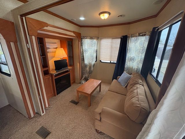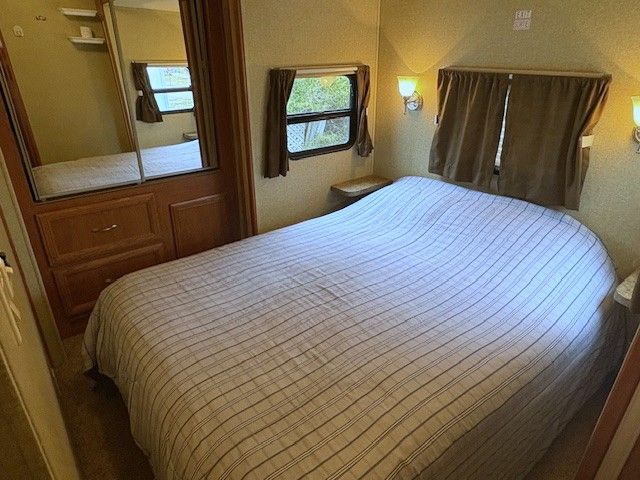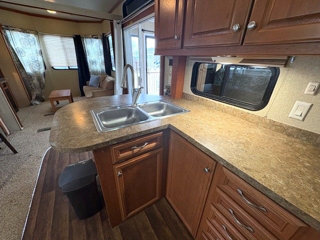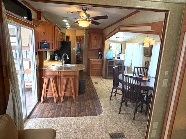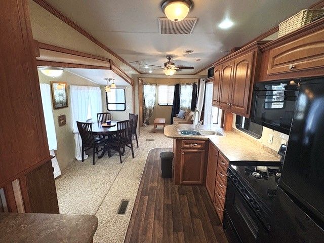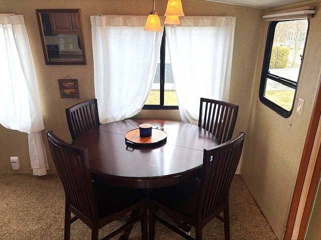 • Fully equipped trailer with kitchen, dining area, and cozy living spaces.
