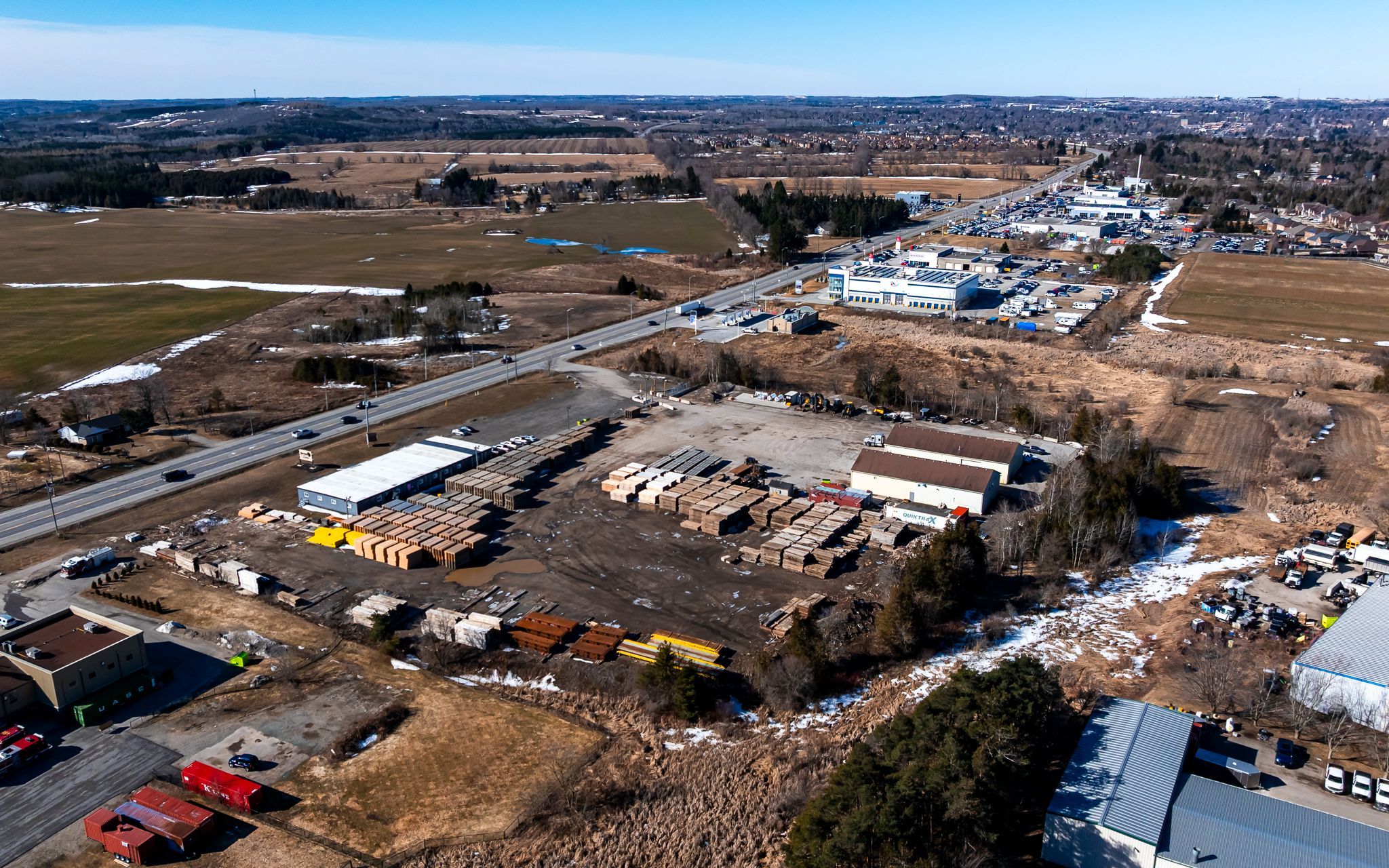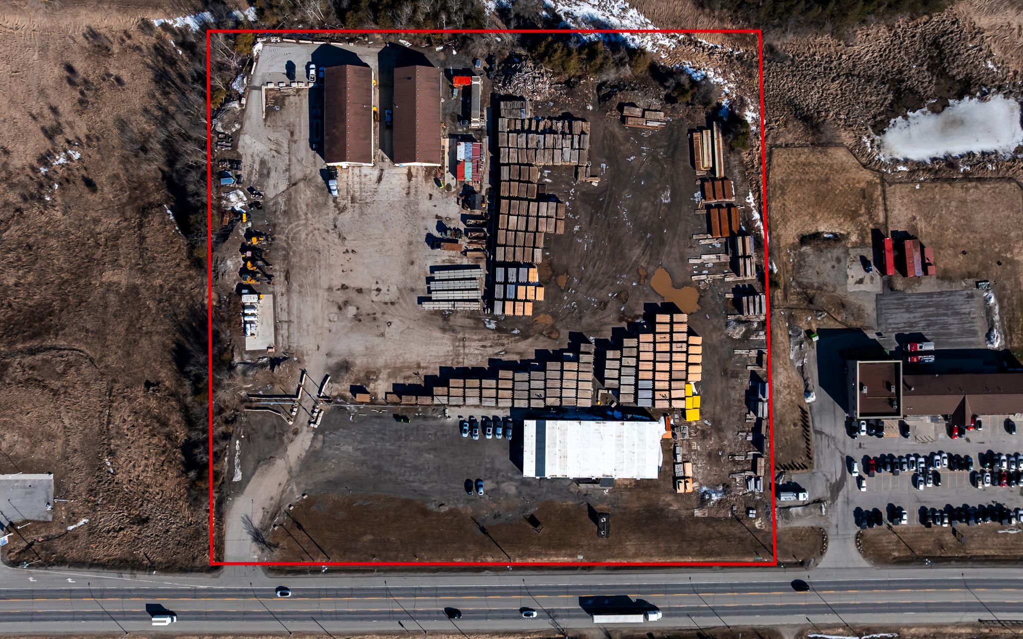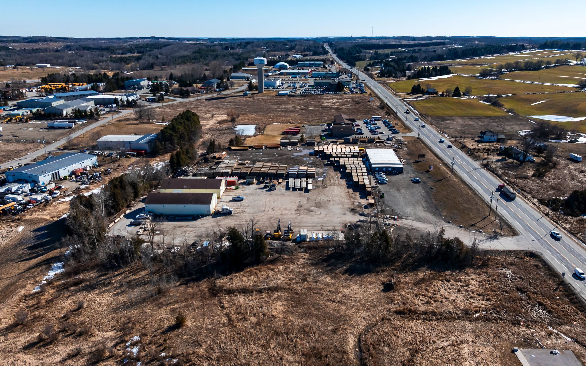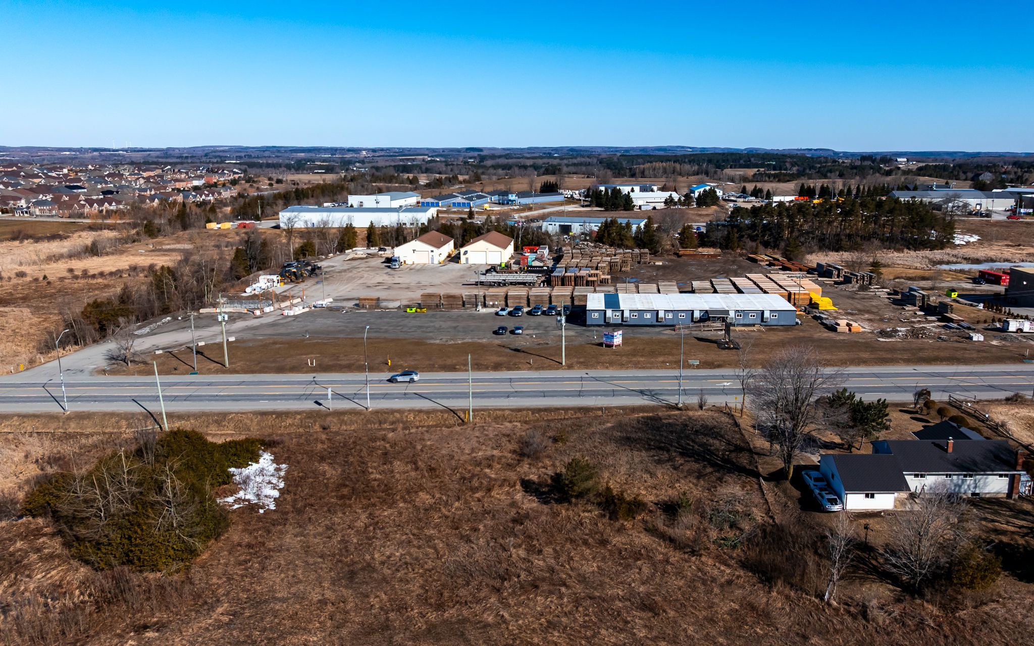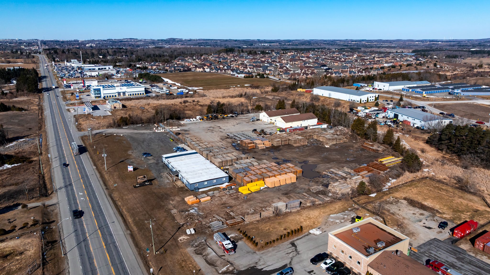 Highly functional property with prime highway 9 exposure. Features two 5,000 sf. Shops with over-sized drive-in doors and 8,000 sf. Of office space. Well located, less than 30 minutes to the top end of highway 410. Versatile site suited for a variety of uses including outdoor storage, automotive dealership, commercial garage, gas station, and building supply yard, among others. Part of the yard is paved. Phase 1 enviromental available. Currently leased to a aaa tenant unitl june 2027 with no right to renew, providing immediate income with strong long-term upside.