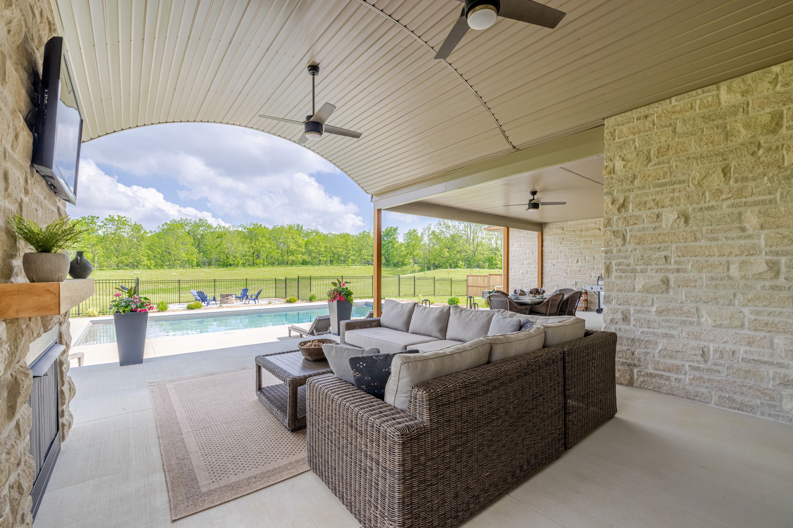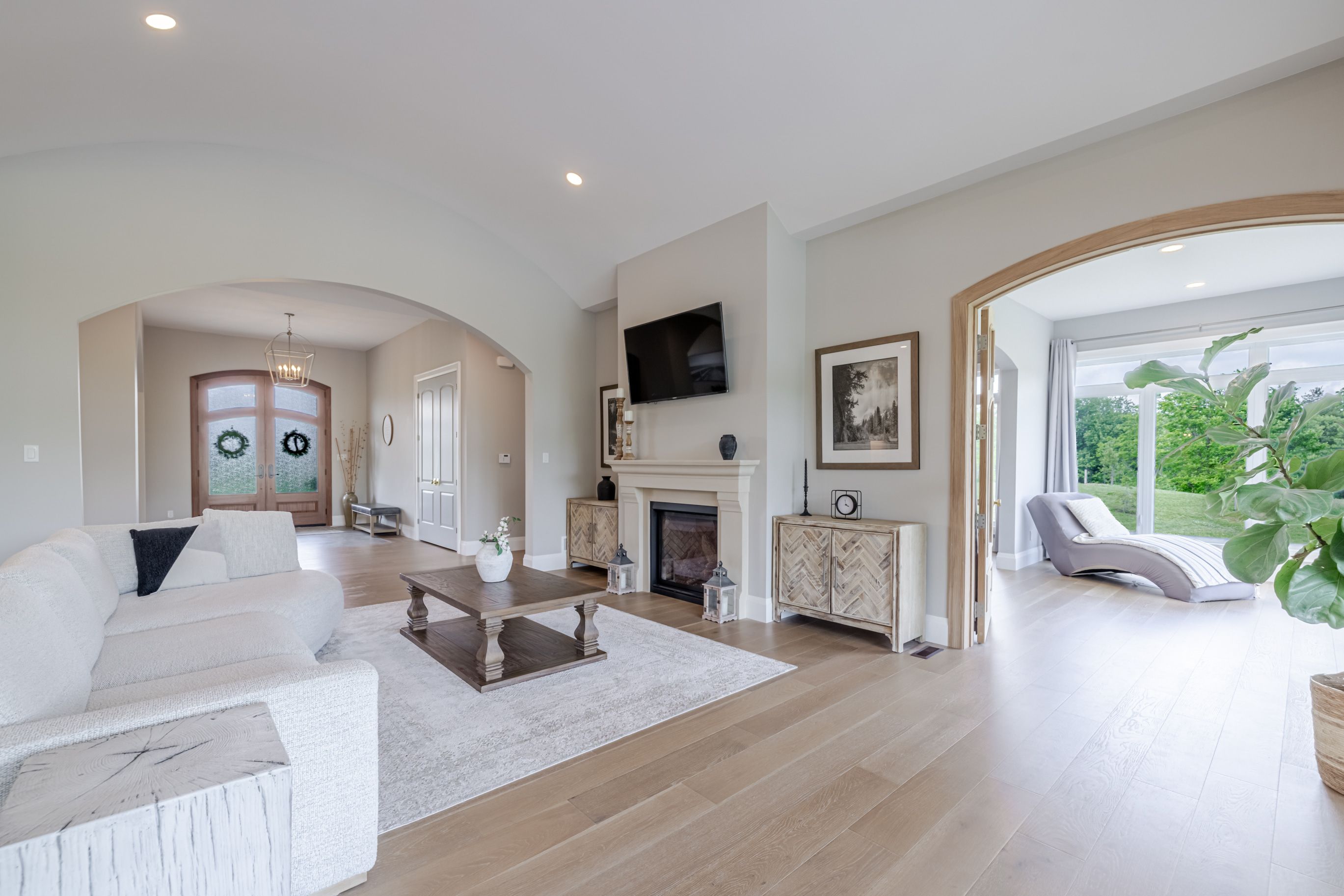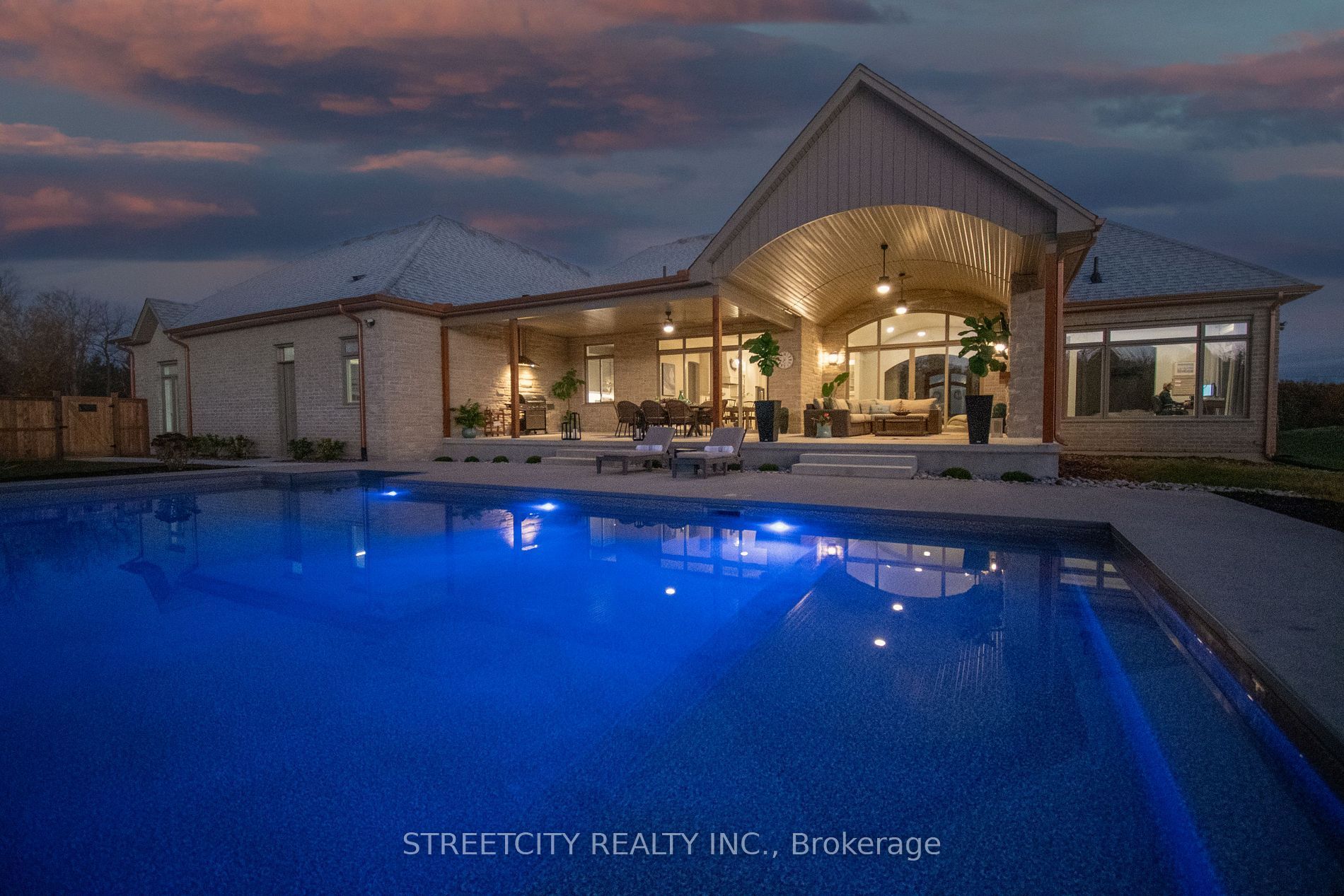 Endless possibilities await in this unique custom built estate. Countryside living on 6. 9 acres while being in the city, minutes from hyde park shopping centre and western university. This architectural masterpiece blends old-world charm with modern amenities and includes a private guest house- perfect for visiting family and friends or rental. The main residence offers excellent potential for multi-generational living, featuring a recreation room, bar/kitchen, two additional bedrooms, a full bath, and laundry facilities. The inviting entrance leads to an open-concept layout, featuring 10-foot ceilings and combined with in-floor heating on both levels, enhances unparalleled luxury. The elongated dining room is perfect for gatherings, and a cozy gas firplace with a stone mantle adds warmth throughout. A barrel ceiling extends from the great room to the covered rear porch, blending indoor and outdoor living. The chef inspired kitchen is anchored by a custom stone-cast range hood and 48-inch professional gas stove offering 8 burners and 2 ovens. Patio doors from the dinette and a pass through window from the pantry, complete with full refrigerator and sink, leads to the back porch dining area. Secondary bedrooms feature custom closets and private ensuites for comfort and privacy. This home offers over 6573 sq ft of finished living space. The outdoor space is ideal for entertaining with stone gas fireplace and covered porch overlooking the 18x40 in ground pool with sun ledge. This home offers luxury, comfort and endless possibilities for family living.