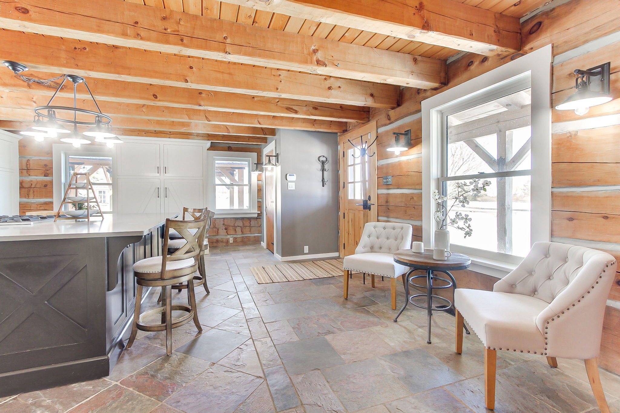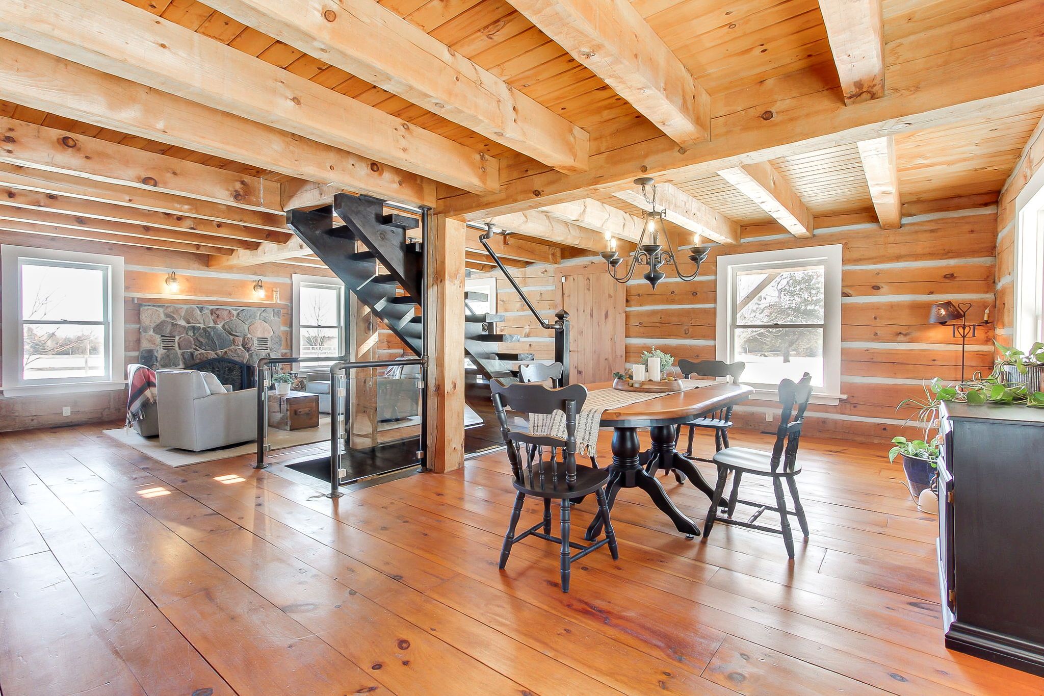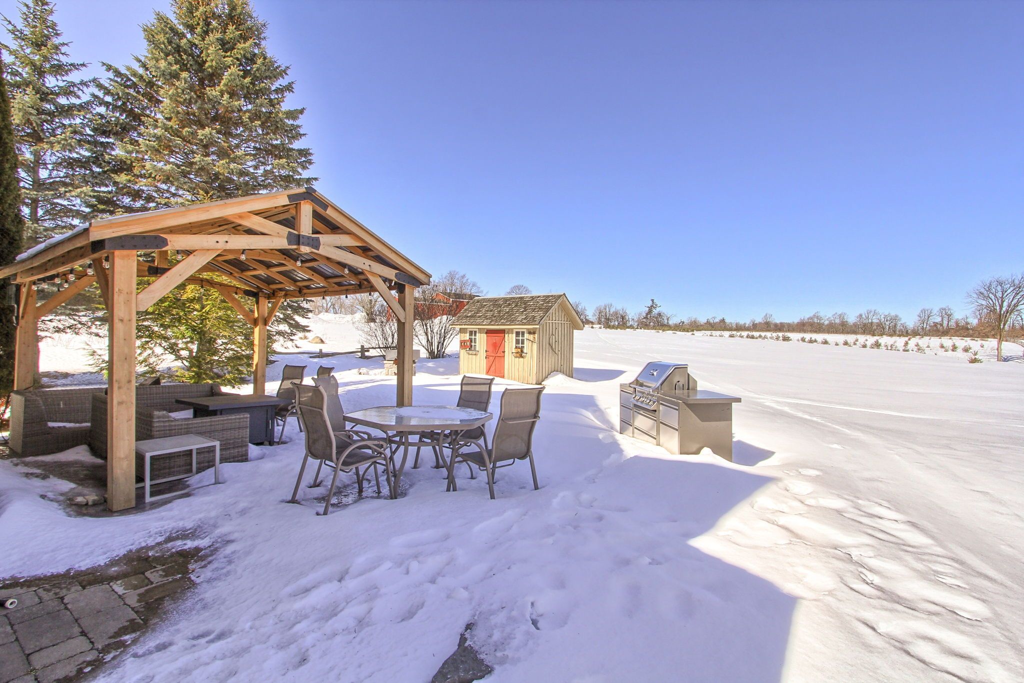 Charming one of a kind, log home on half an acre - desired quiet country living just minutes from town! Discover the warmth and character of this beautifully maintained 3+1 bedroom log home, proudly offered for the first time. Nestled on a private 125 ft x 200 ft (0. 57 acre) lot surrounded by mature trees and perennial gardens, this property offers peaceful views including glimpses of lake simcoe. Offering over 2,400 sq ft above grade plus a finished basement, this home perfectly blends rustic charm with modern comfort. The spacious country kitchen features stone tile flooring, quartz island with seating, propane 36" gas range, wall convection oven, built-in wall microwave, double commercial grade electrolux fridge, farmhouse apron sink, large pantry, and convenient side entrance to beautiful covered porch. The open-concept living and dining area boasts large windows and a wood-burning fireplace, creating a bright and inviting space for family living and entertaining. The upper level offers three generous bedrooms, a handy office nook, and a beautiful 5-piece bathroom with clawfoot tub, spacious walk-in shower, and double vanity. The finished basement adds additional living space with engineered hardwood flooring, wood insert fireplace, 4th bedroom, den/bonus room, 3-piece bath, laundry, and utility room. Enjoy the covered front and side porches, garden shed, and gazebo area perfect for family bbq's and entertaining friends. Mechanical updates include windows (2+/- yrs), generator (5+/- yrs, owned), on-demand hot water heater (5+/- yrs, pressure tank (5+/- yrs, water softener (5+/- yrs), and propane furnace (7+/- yrs, owned). Private well and septic. Ample parking with garage pad already in place. Just minutes to bradford, hwy 400, and all amenities. A perfect blend of comfort, charm, and country living!