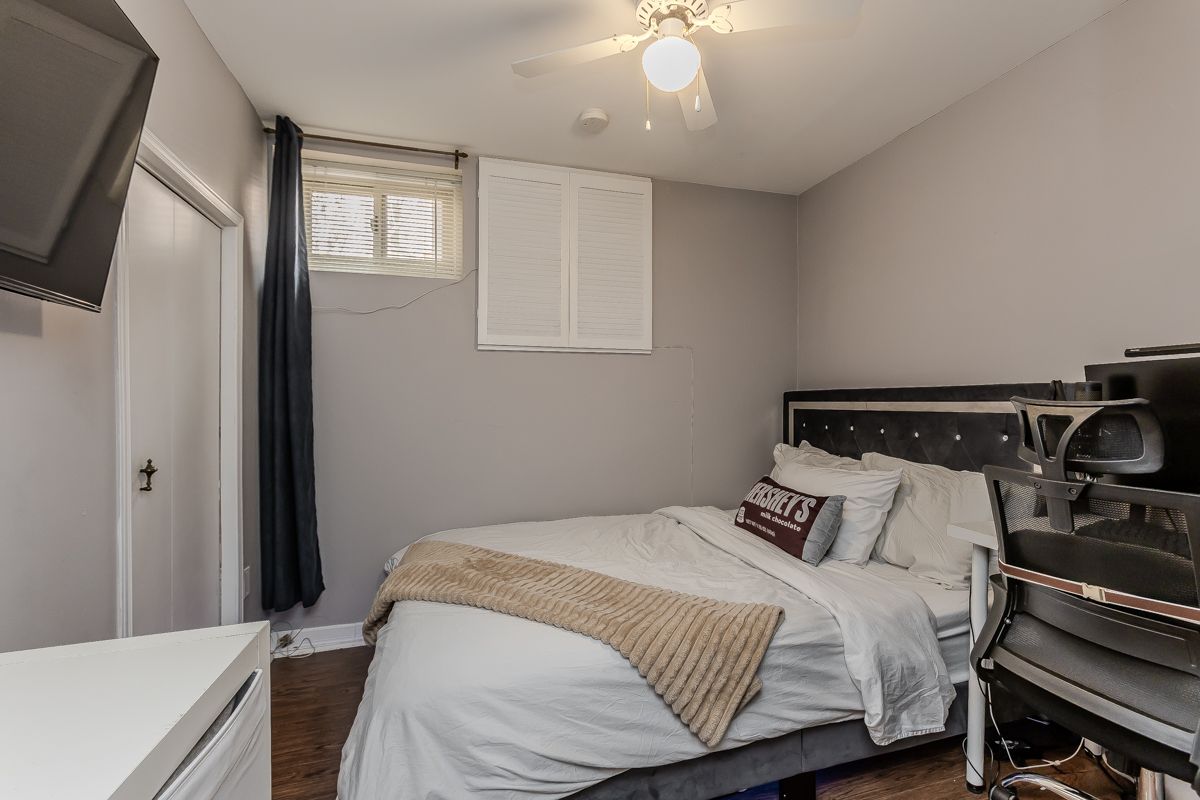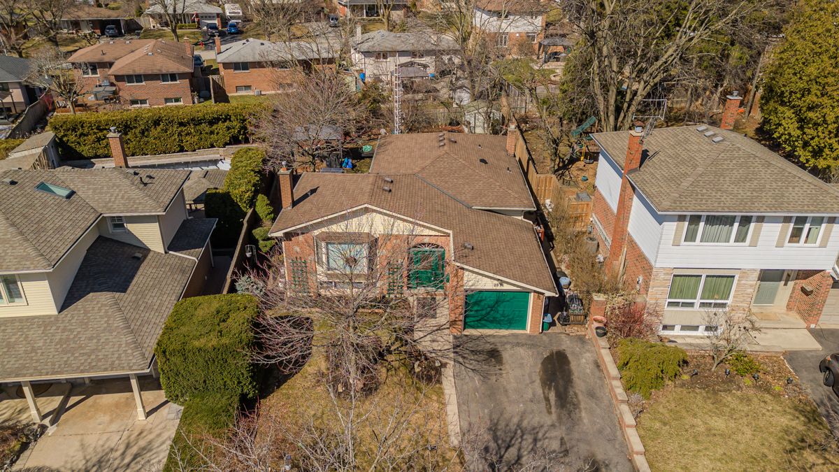 Solid all-brick detached home on one of brant hills' most charming tree-lined streets, offering exceptional value and flexible living space on both levels. The main floor features three bedrooms plus a versatile fourth room that works as a den, bedroom, or mudroom with its own door to the backyard. The primary bedroom includes a 2-piece ensuite and double closet. A 4-piece main bath, kitchen with gas stove, and dining room with sliding doors walking out onto a rear deck round out the main level. A spacious living room with an oversized bay window fills the front of the home with natural light. The finished lower level adds serious livability with a rec room featuring a gas fireplace and bar, two additional bedrooms, a 3-piece bath, and a kitchenette, ideal for extended family, guests, or rental income. Outside, a huge covered gazebo anchors the backyard alongside a storage shed and large deck with natural gas bbq line. The double asphalt driveway fits four cars with access to a single-car garage. Steps from excellent schools, parks, and everyday conveniences including fortinos, lcbo, and neighbourhood favourites like nostalgia games cafe. Highways 403 and 407 are minutes away. Amazing value for a detached home in one of burlington's most sought-after neighbourhoods.