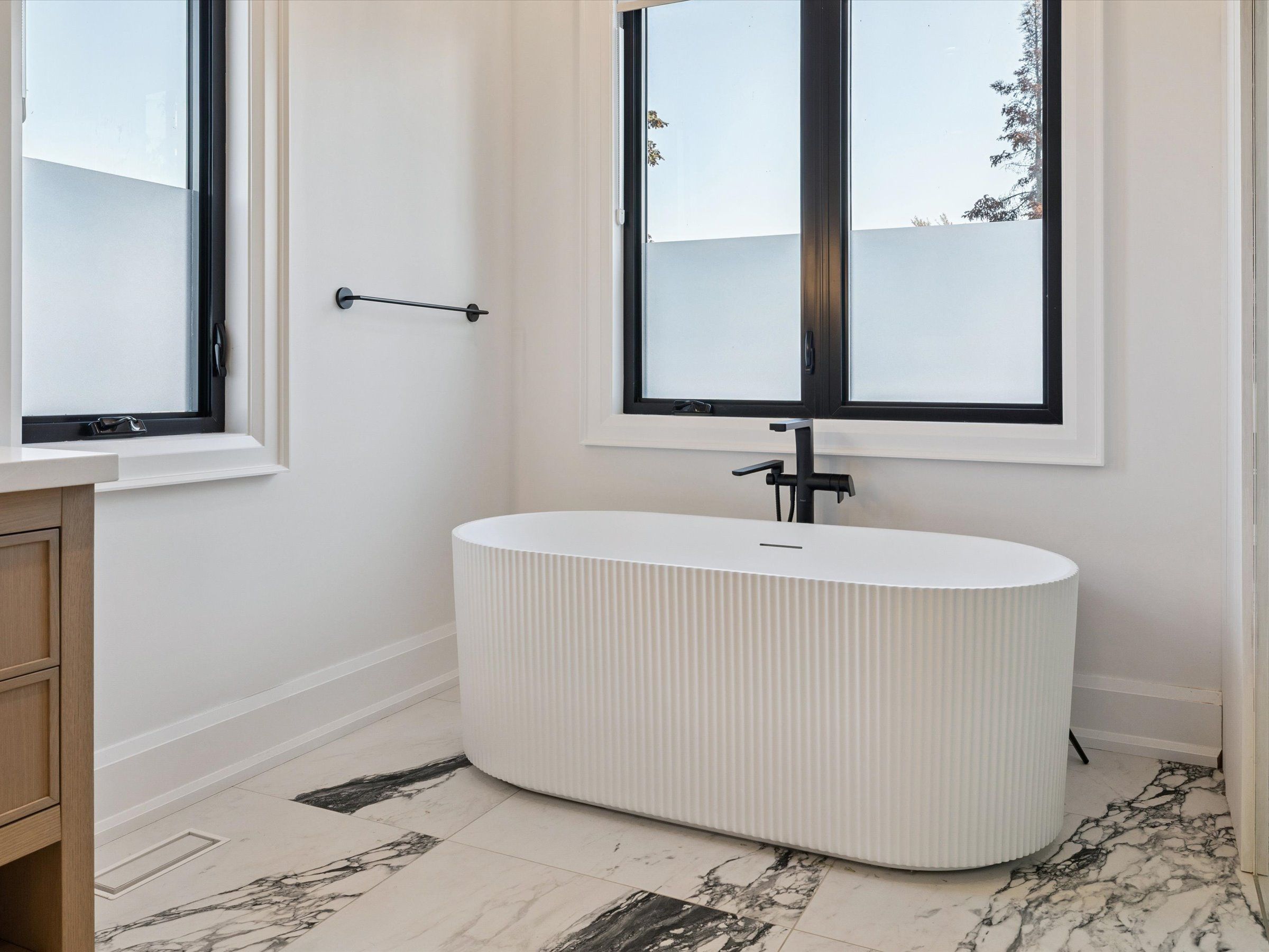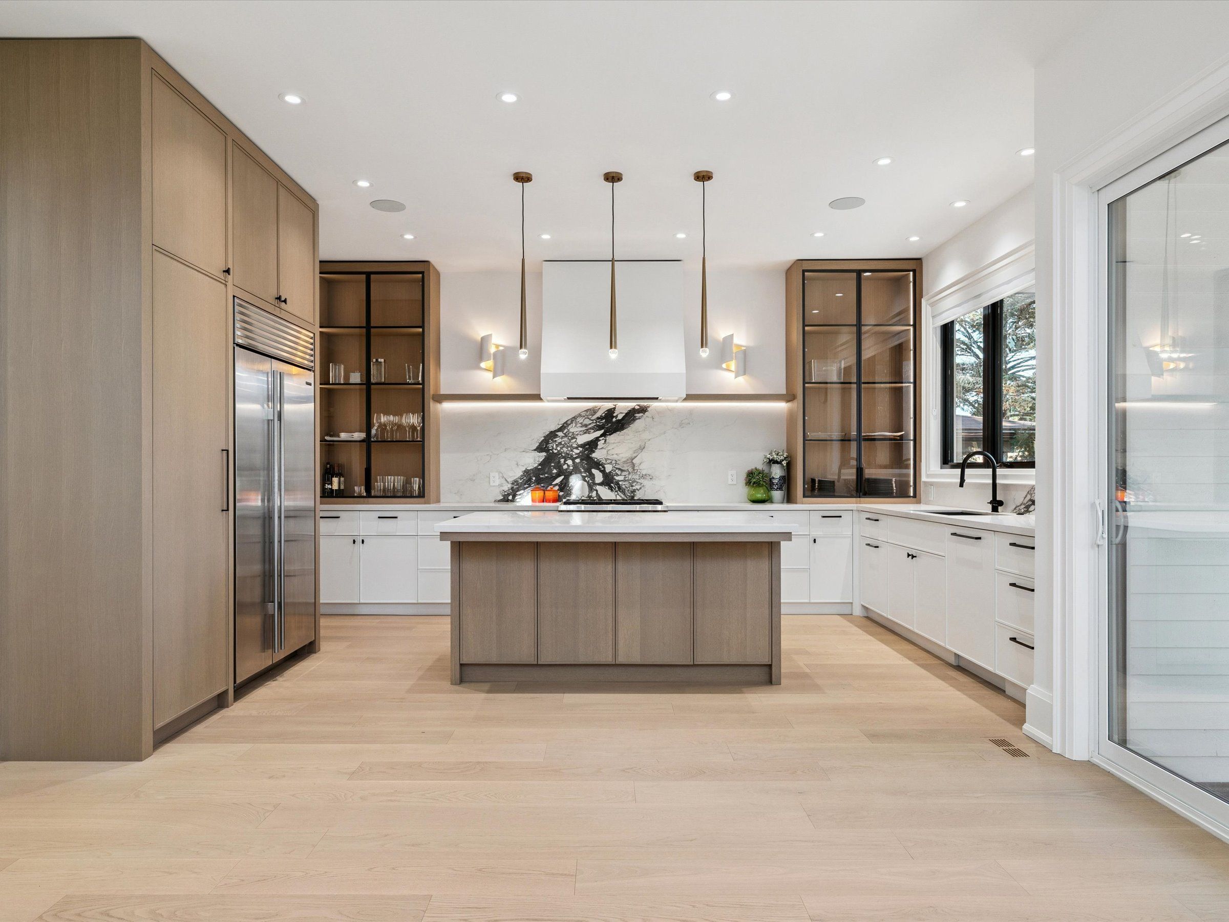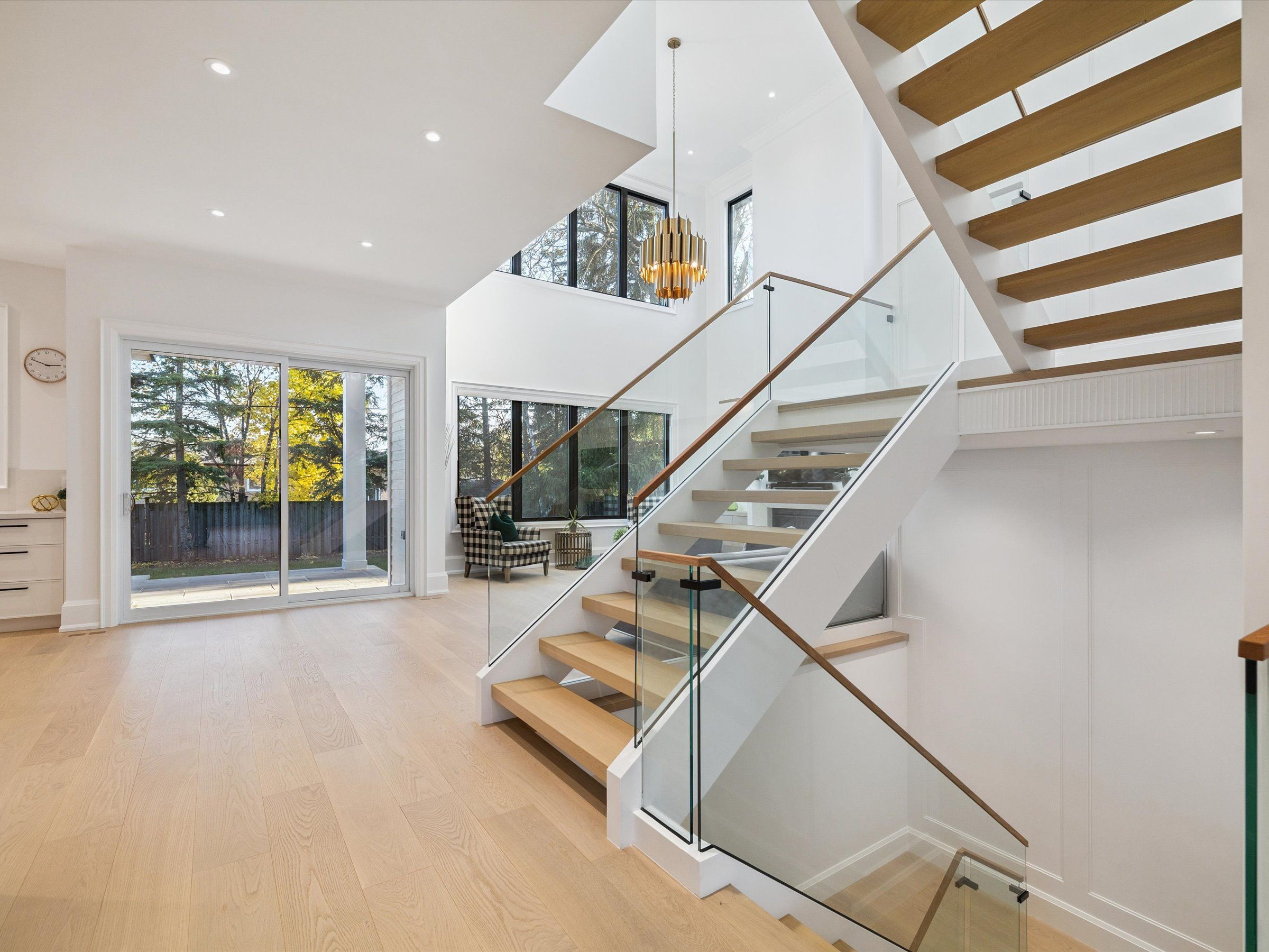 Experience the perfect blend of modern sophistication and timeless craftsmanship in this new keeren design modern farmhouse, situated on an oversized 60' x 141' mature lot fronting onto a quiet park in desirable southwest oakville. Built to the highest standards with meticulous attention to detail, this home features a double-height open to above great room and the oversize windows and a central skylight fills the home with natural light, 7" wide select hardwood flooring, 9" baseboards, oversized 5" casings, and solid wood trendy trim work throughout. Expansive windows flood the interior with natural light, complemented by pot lights, built-in speakers, high-end riobel fixtures, restoration hardwares. The stunning misani custom design kitchen showcases full quartz slab countertops and backsplash, wolf gas range, sub-zero refrigerator, miele dishwasher and microwave, and prep pantry kitchen-ideal for family living and entertaining. A sleek micro-concrete modern fireplace enhances the main floor's contemporary aesthetic. Upstairs, the primary suite features 10ft tray ceilings, artistic ceiling details, a spa-like ensuite with dual steam shower, freestanding tub, and heated smart toilet. Each bedroom offers private access to ensuites with curb-less frameless-glass italian porcelain showers. The finished lower level includes wide-plank hardwood flooring, a recreation room, bedroom with office nook, and a custom saunacore cedar sauna with frameless glass. Exterior features include fraser cedar siding, custom cedar garage doors, covered porch with gas line, and a multi-zone irrigation system. The oversized garage accommodates a 20' vehicle or boat with ultra-quiet jack-lift openers. An architectural masterpiece combining elegance, functionality, and location-just minutes from appleby college and other top-rated schools, coronation park, the lake and go stations and highways.