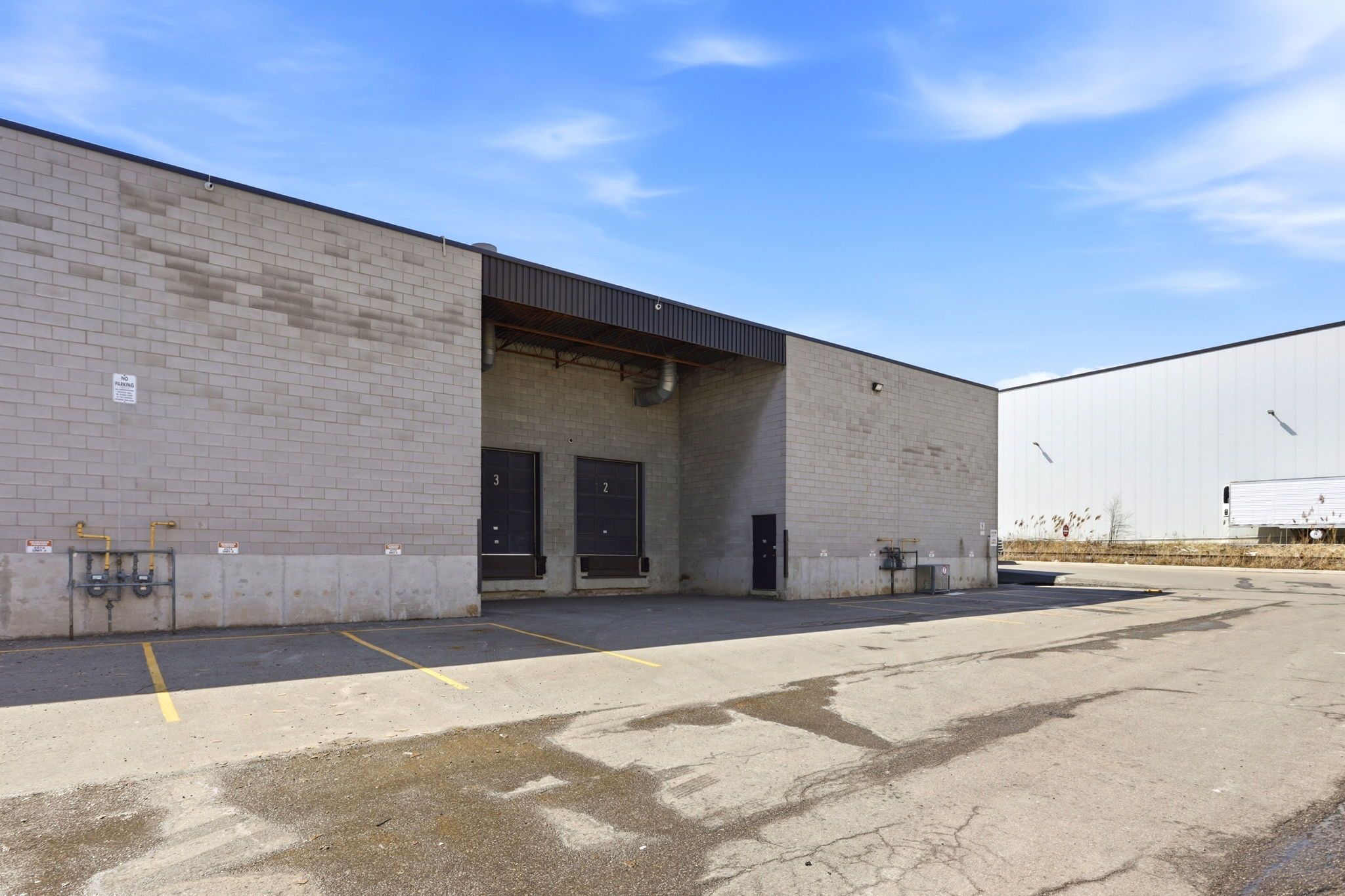 • Two dock level loading doors for easy access with 53' trailers.